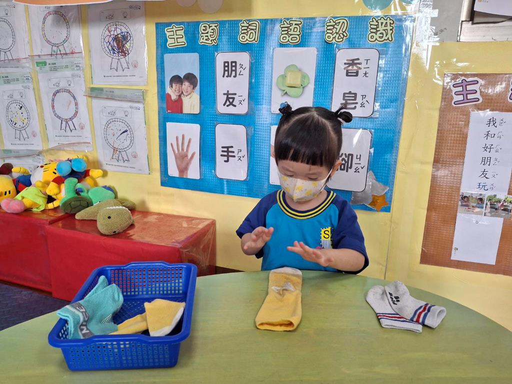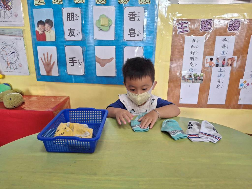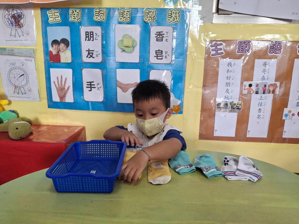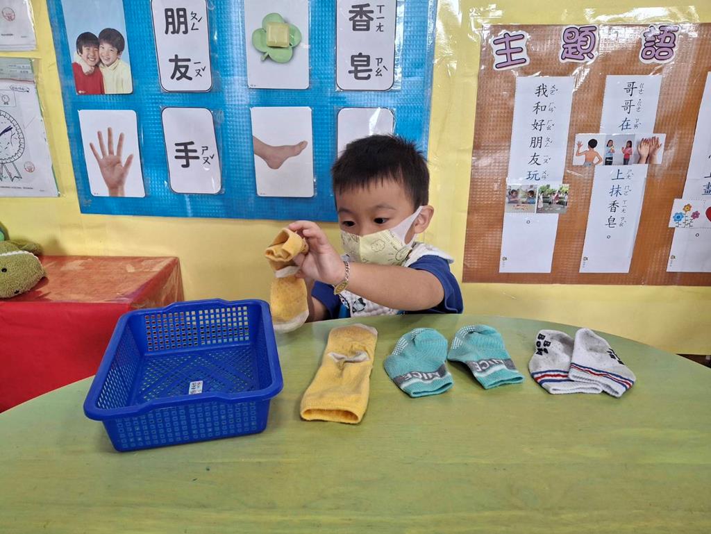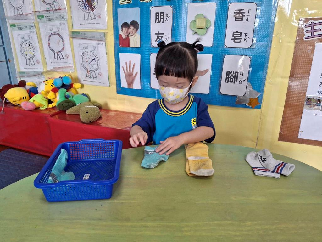相簿名稱: 草莓班-蒙特梭利教學【感官教育-襪子配對(彩色)】