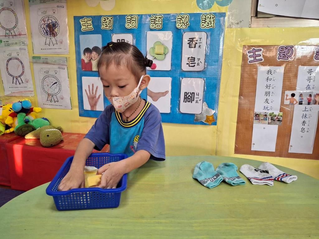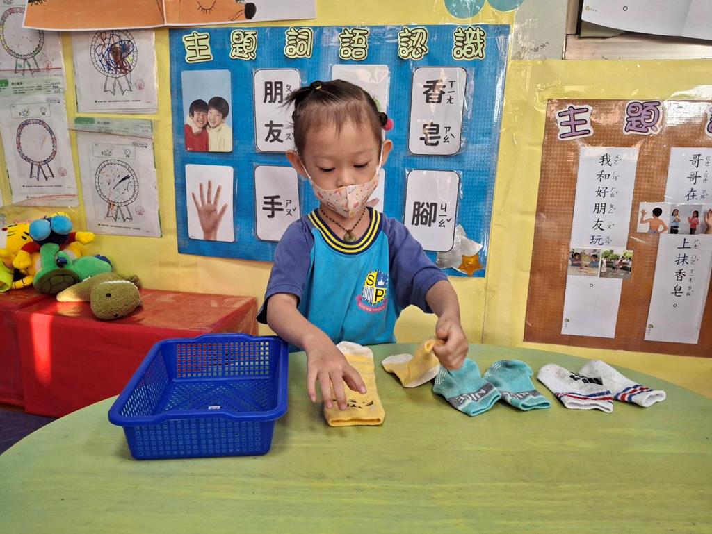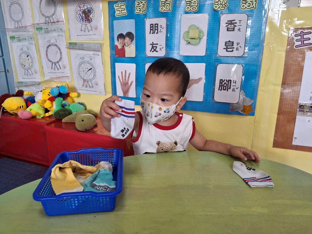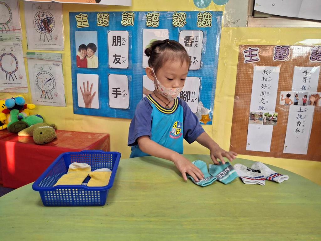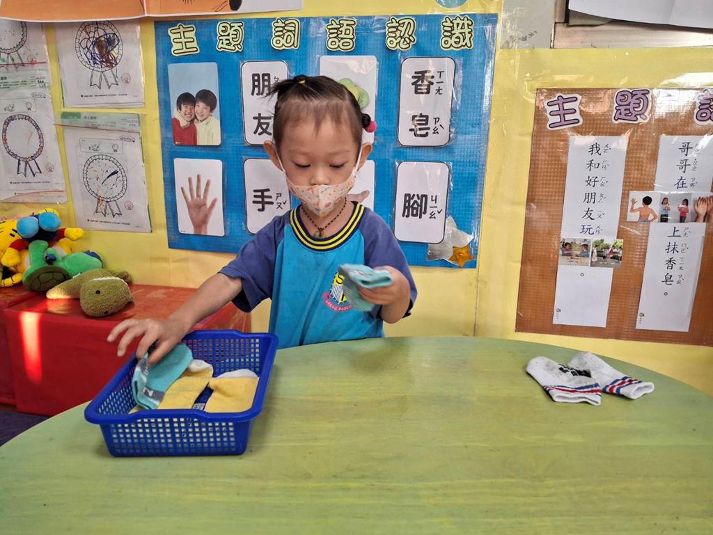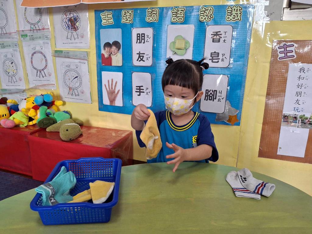 相簿名稱: 草莓班-蒙特梭利教學【感官教育-襪子配對(彩色)】