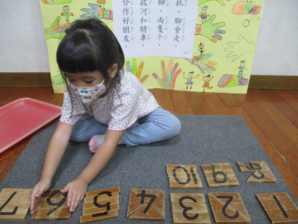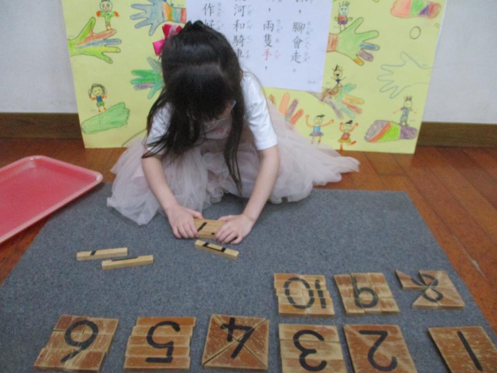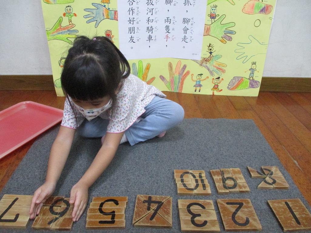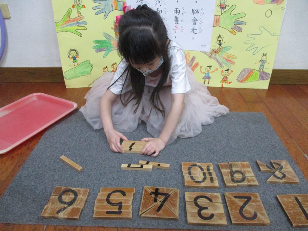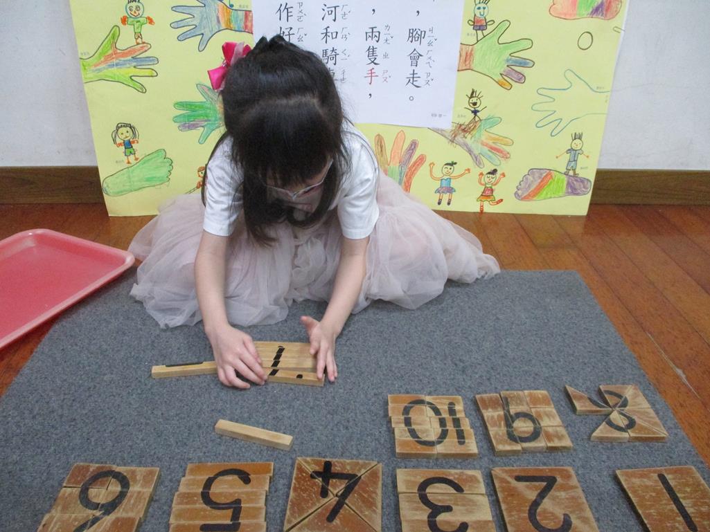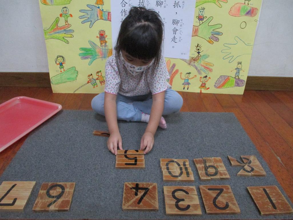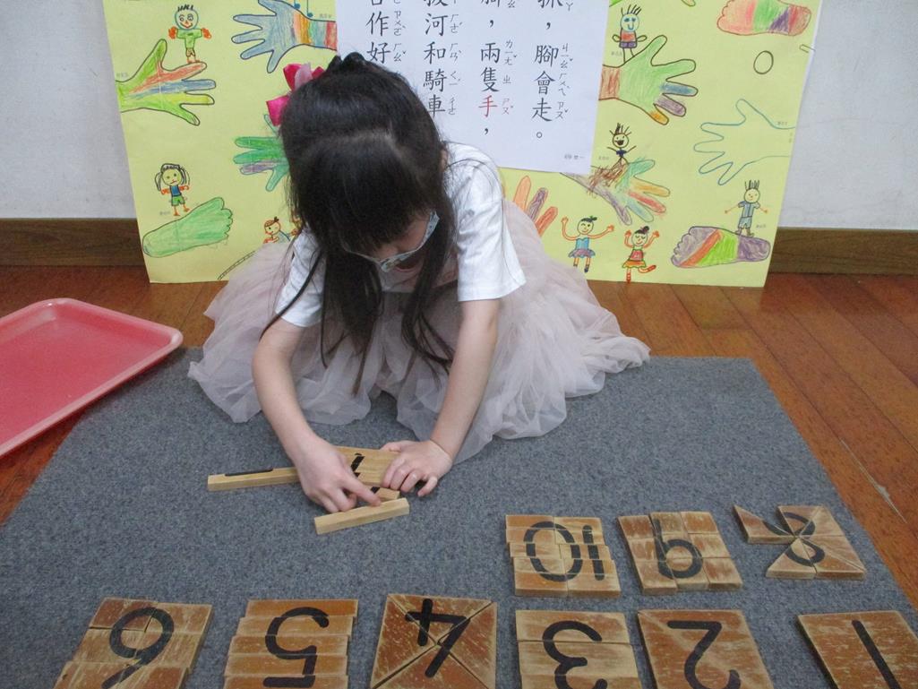 相簿名稱: 茉莉班-蒙特梭利教學(數學教育-數字切割板1~10)