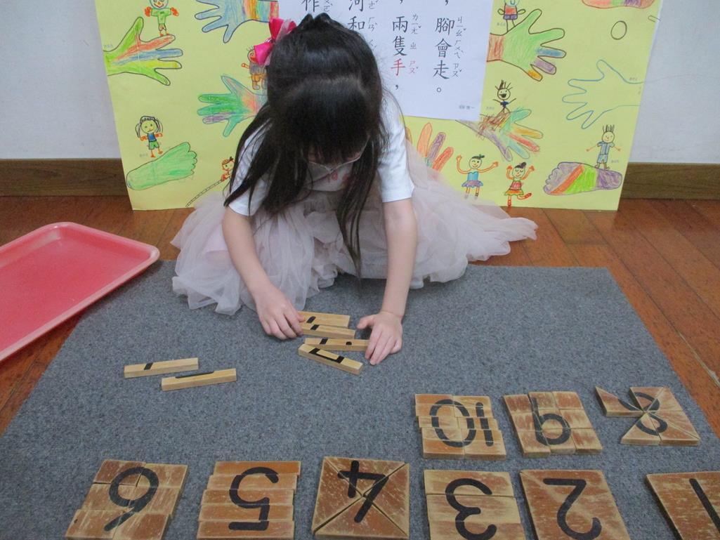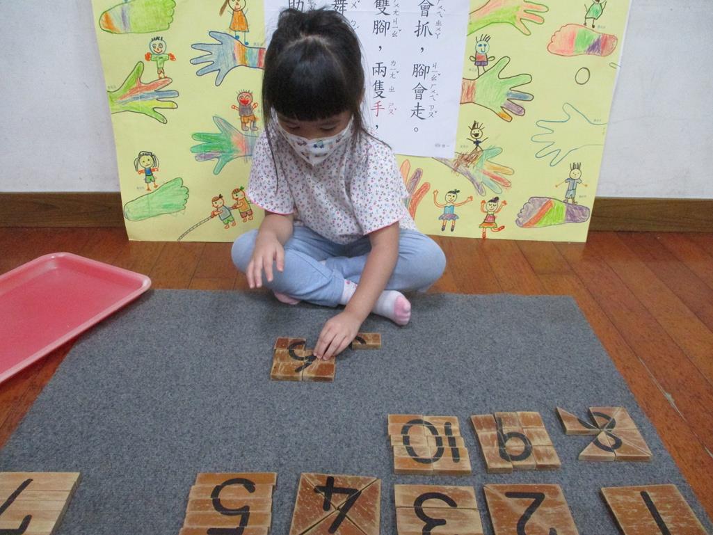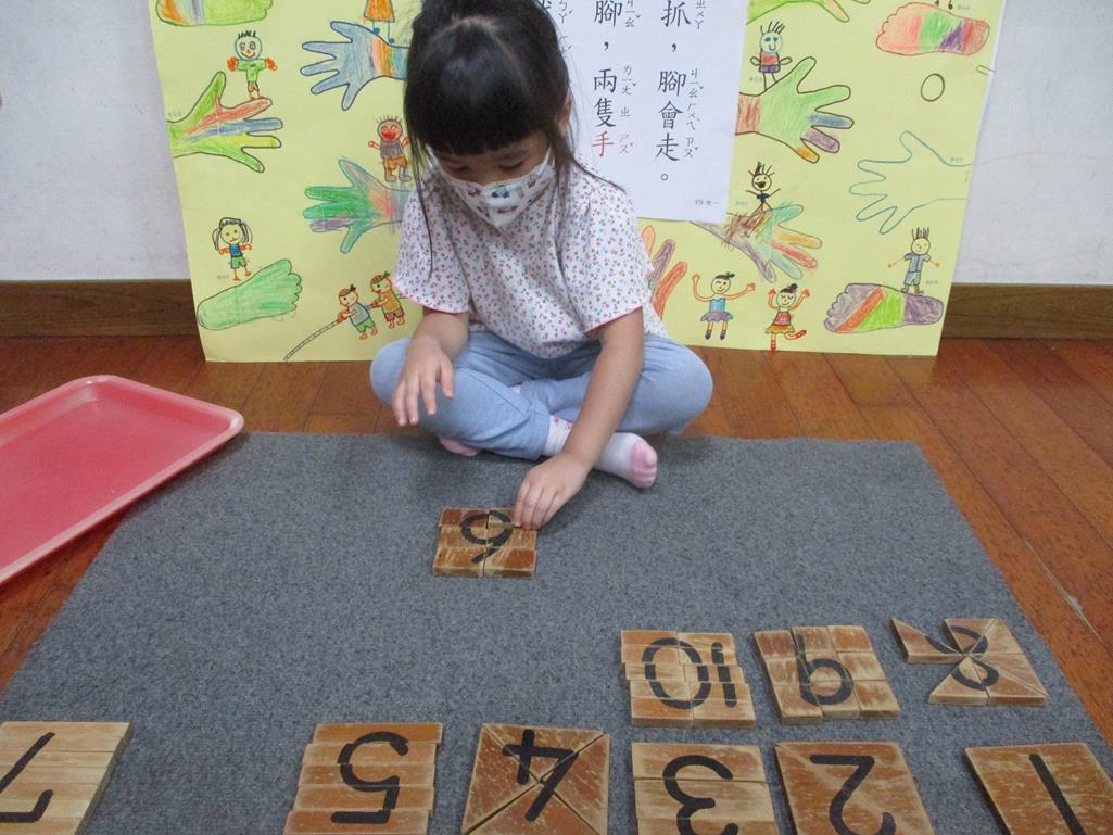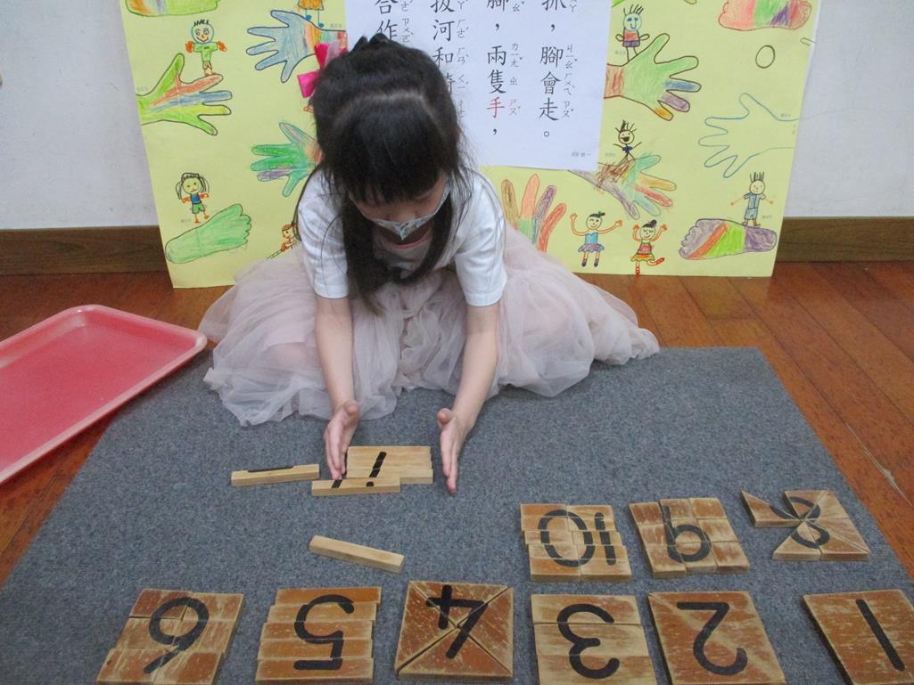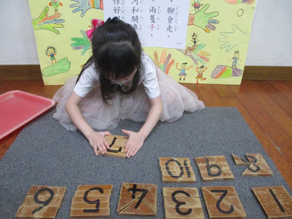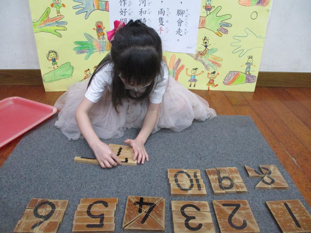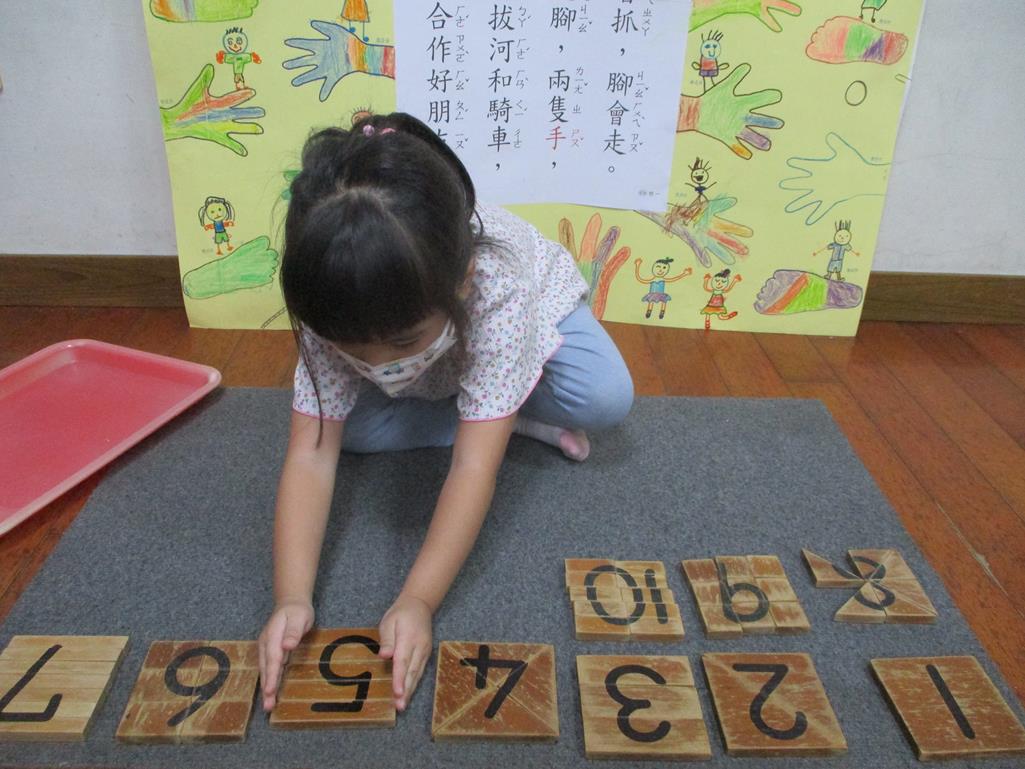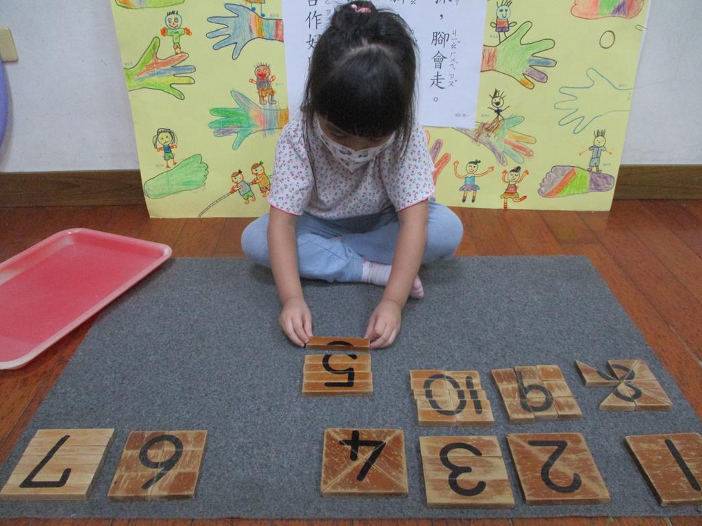 相簿名稱: 茉莉班-蒙特梭利教學(數學教育-數字切割板1~10)