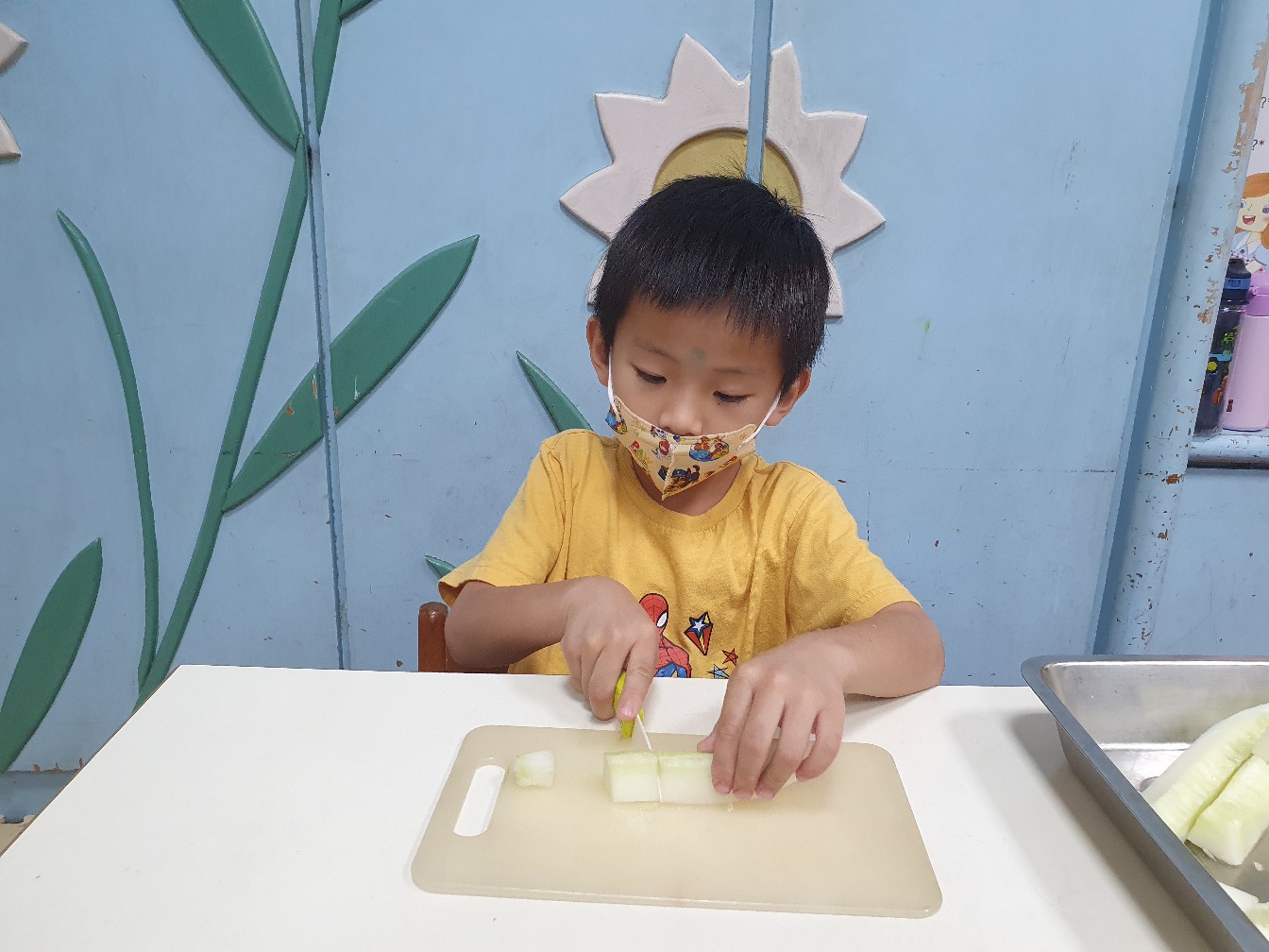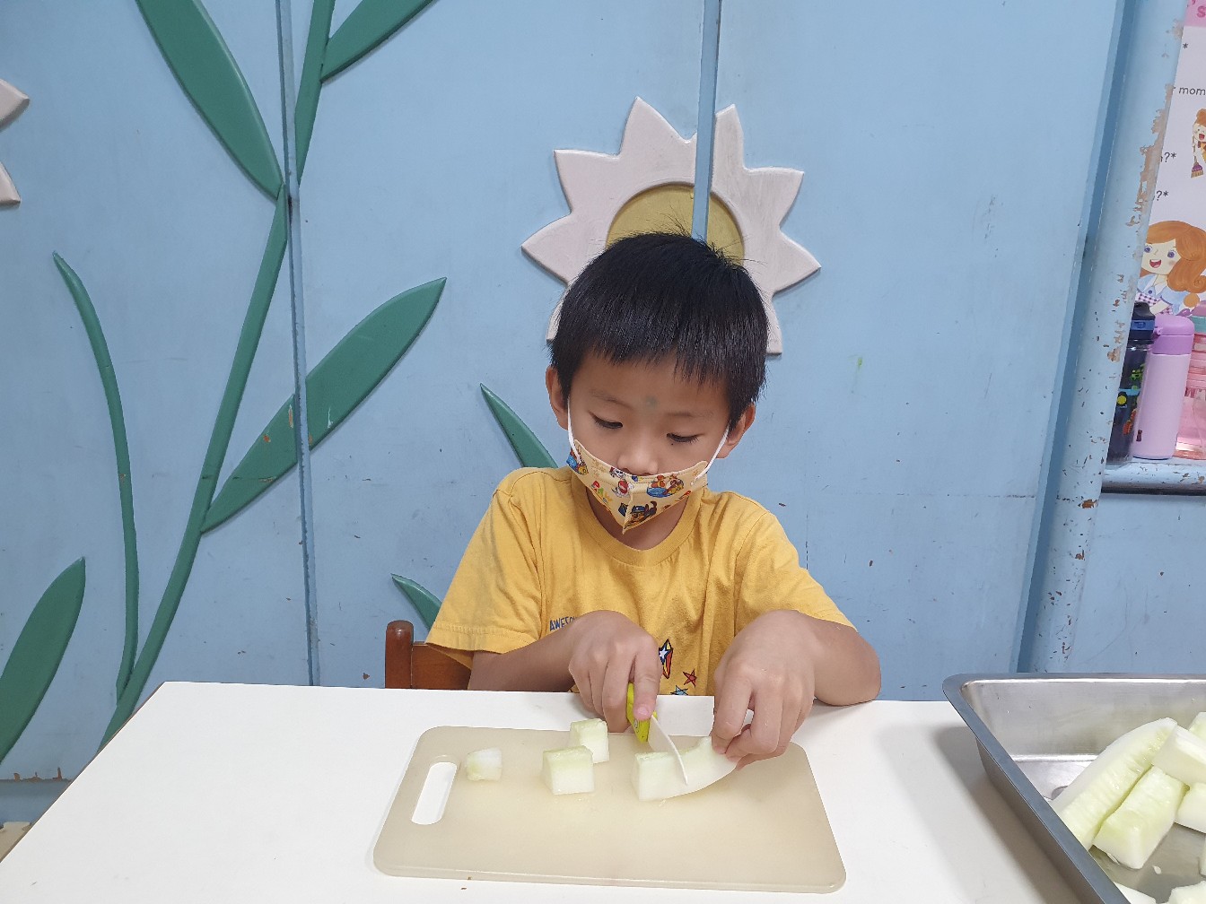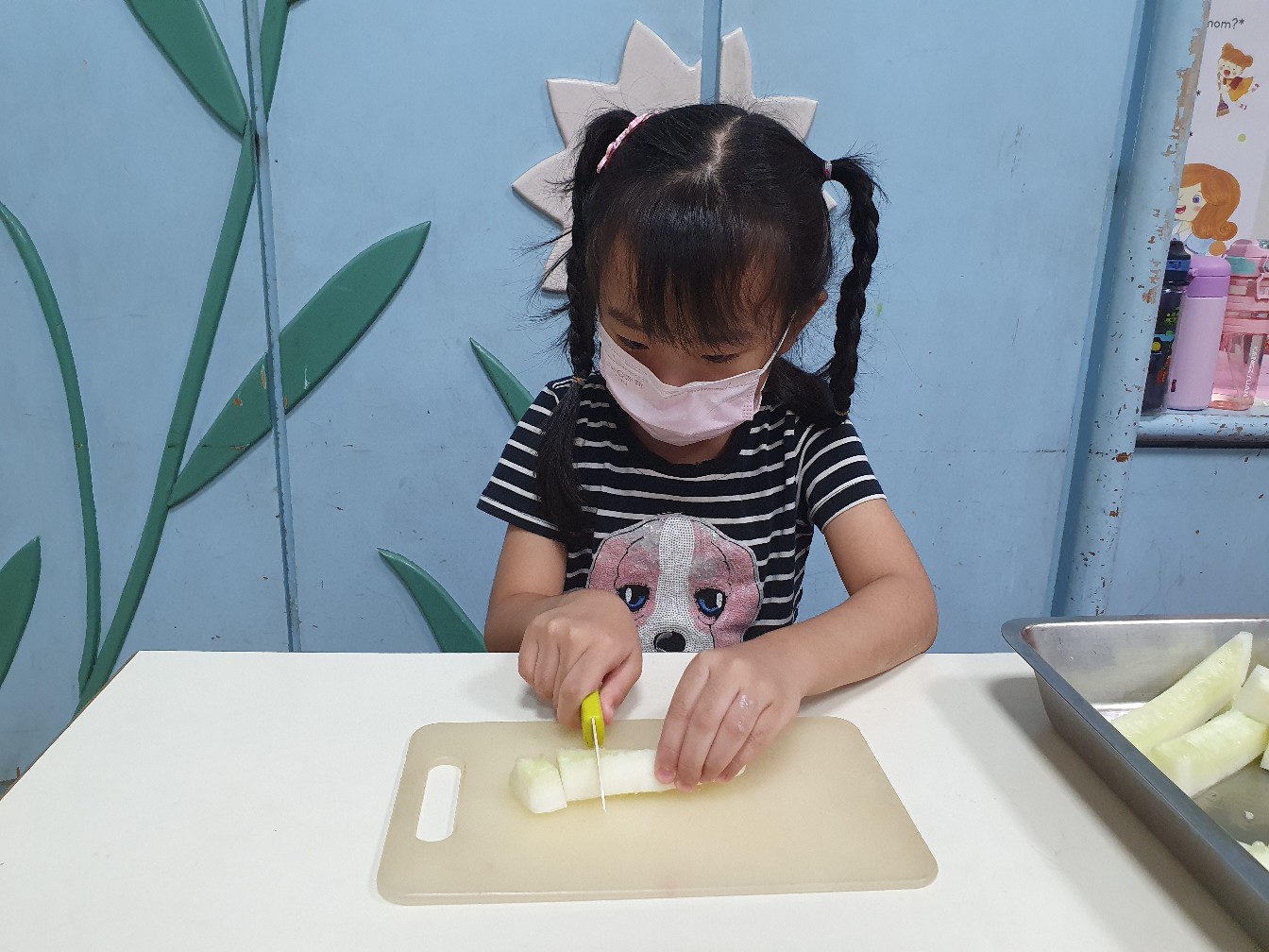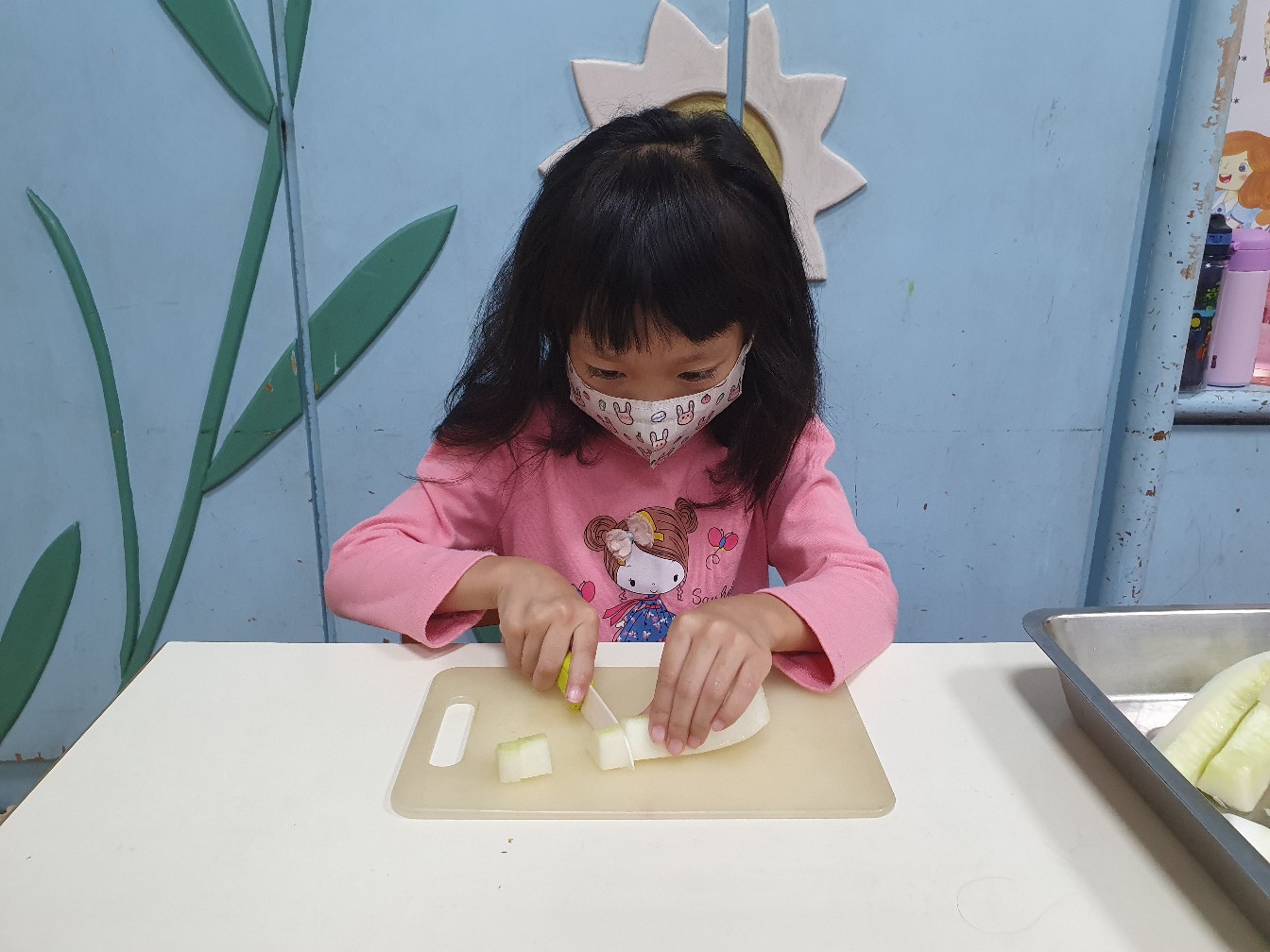 相簿名稱: 向日葵班-蒙特梭利教學(日常生活教育-切大黃瓜)