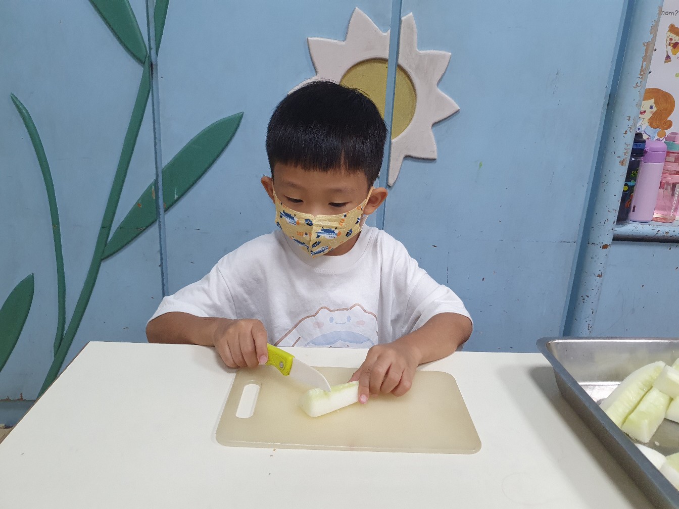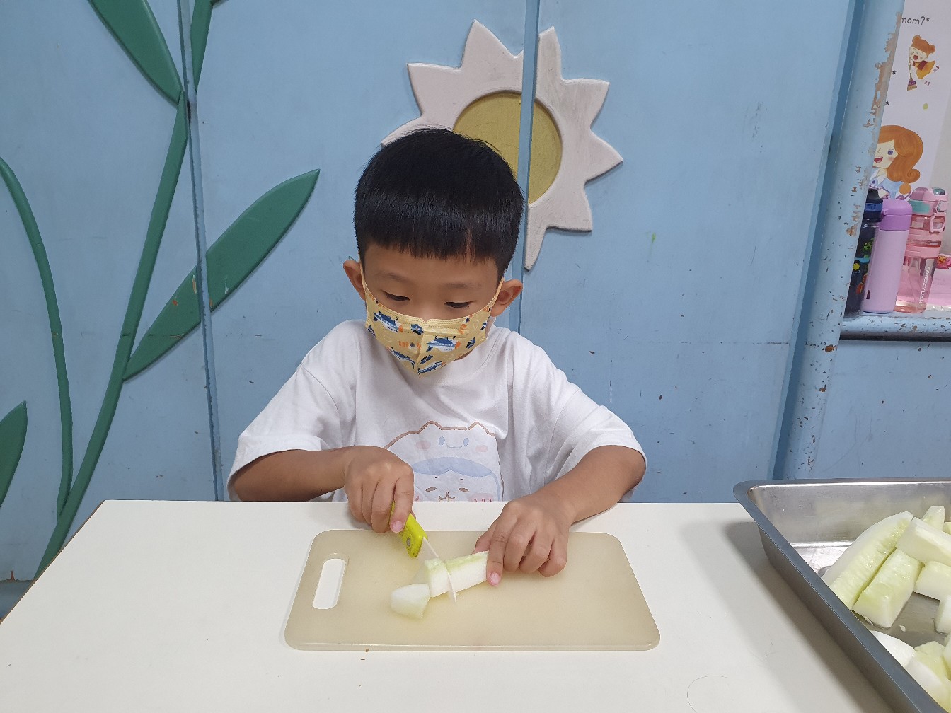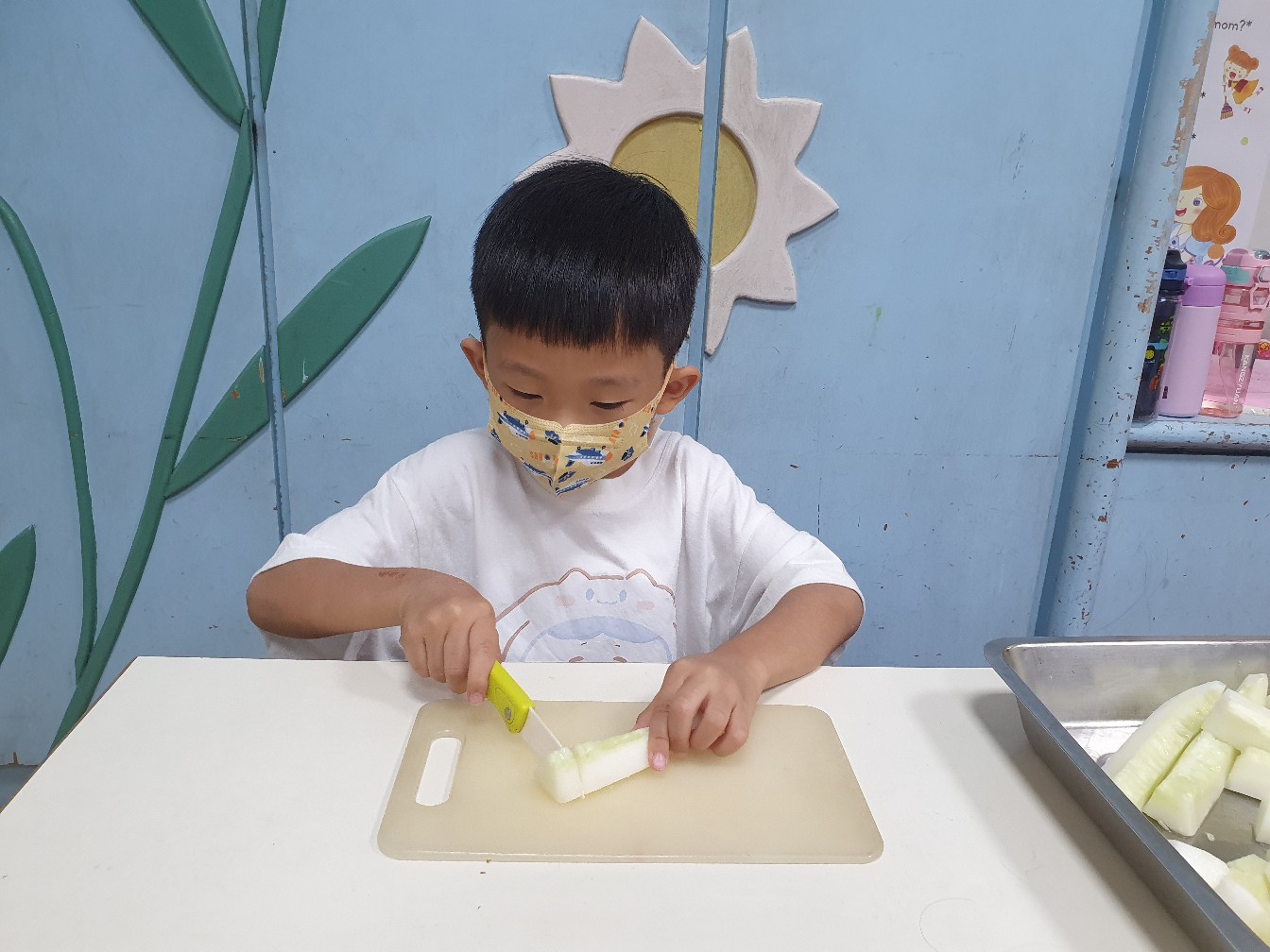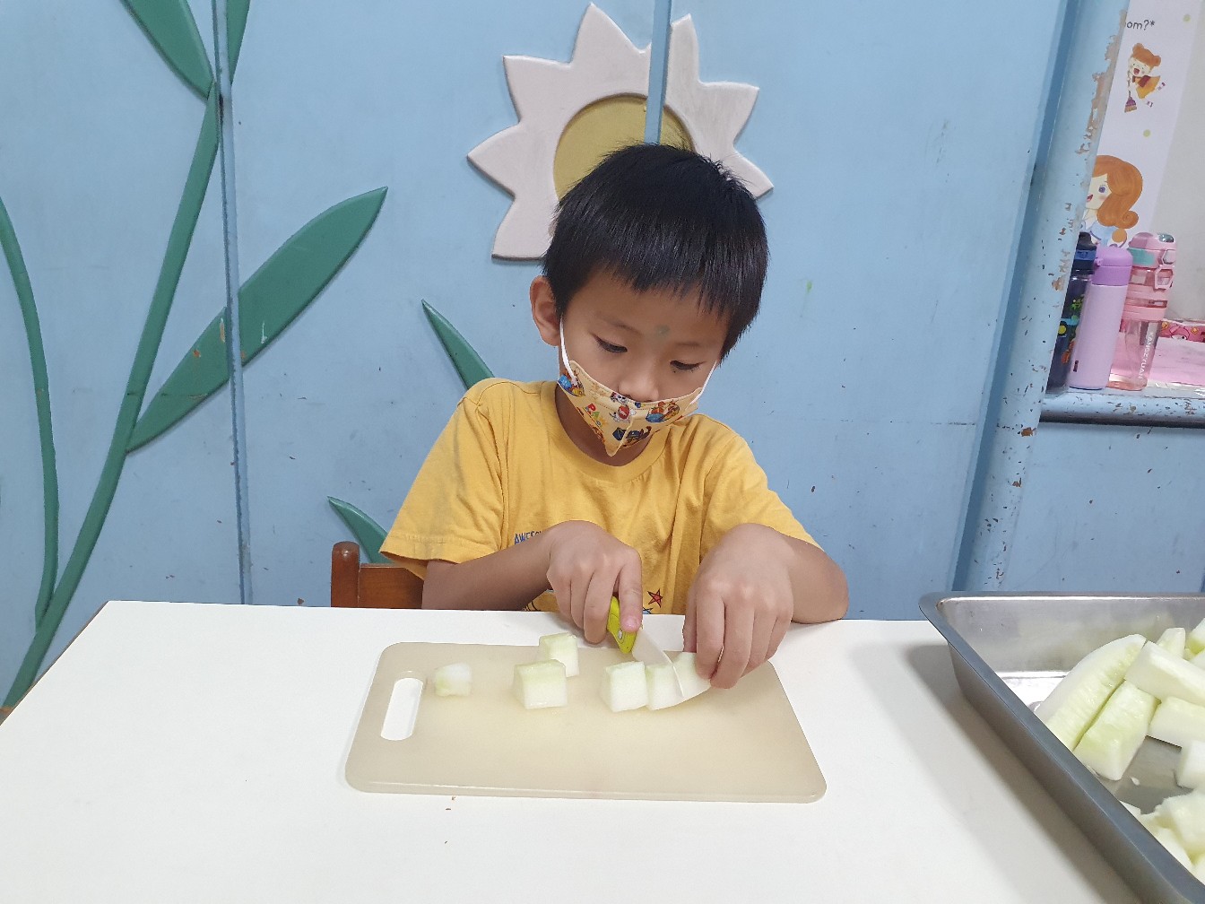 相簿名稱: 向日葵班-蒙特梭利教學(日常生活教育-切大黃瓜)