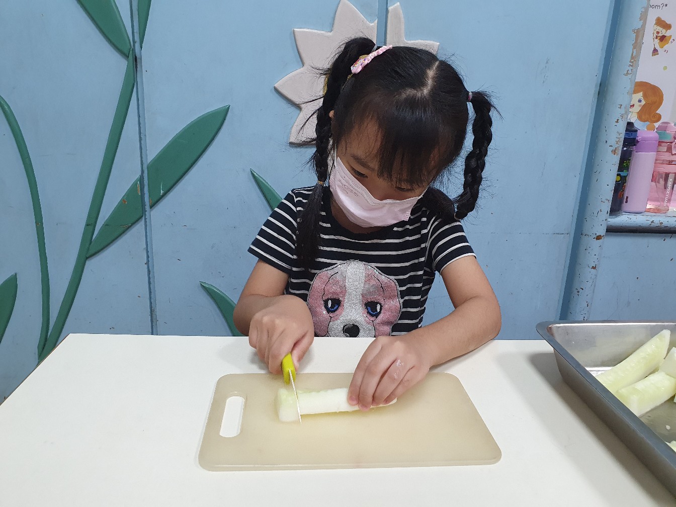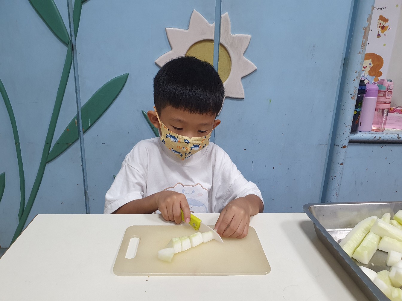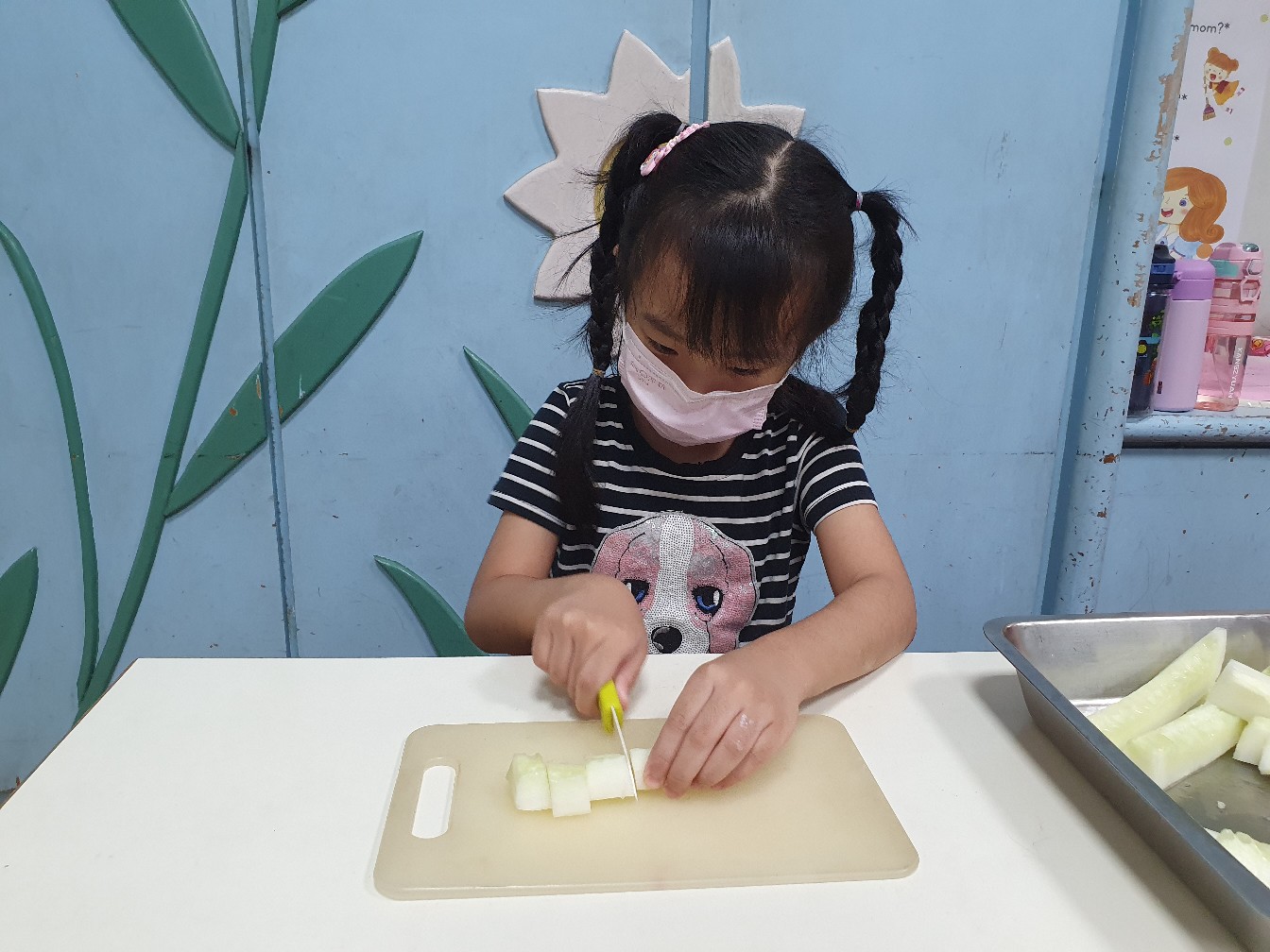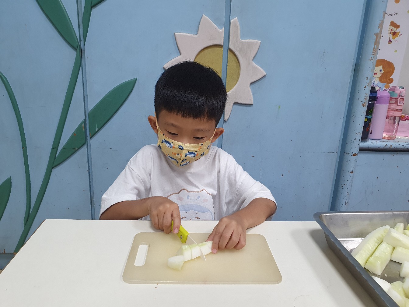 相簿名稱: 向日葵班-蒙特梭利教學(日常生活教育-切大黃瓜)