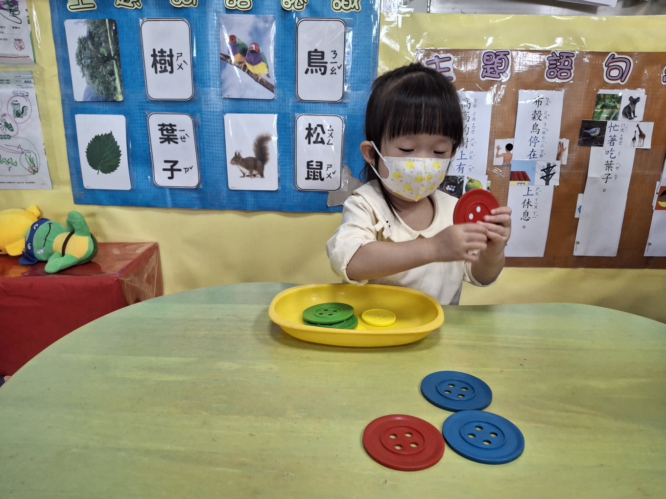 相簿名稱: 草莓班-蒙特梭利教育【感官教育(彩色鈕釦配對)】