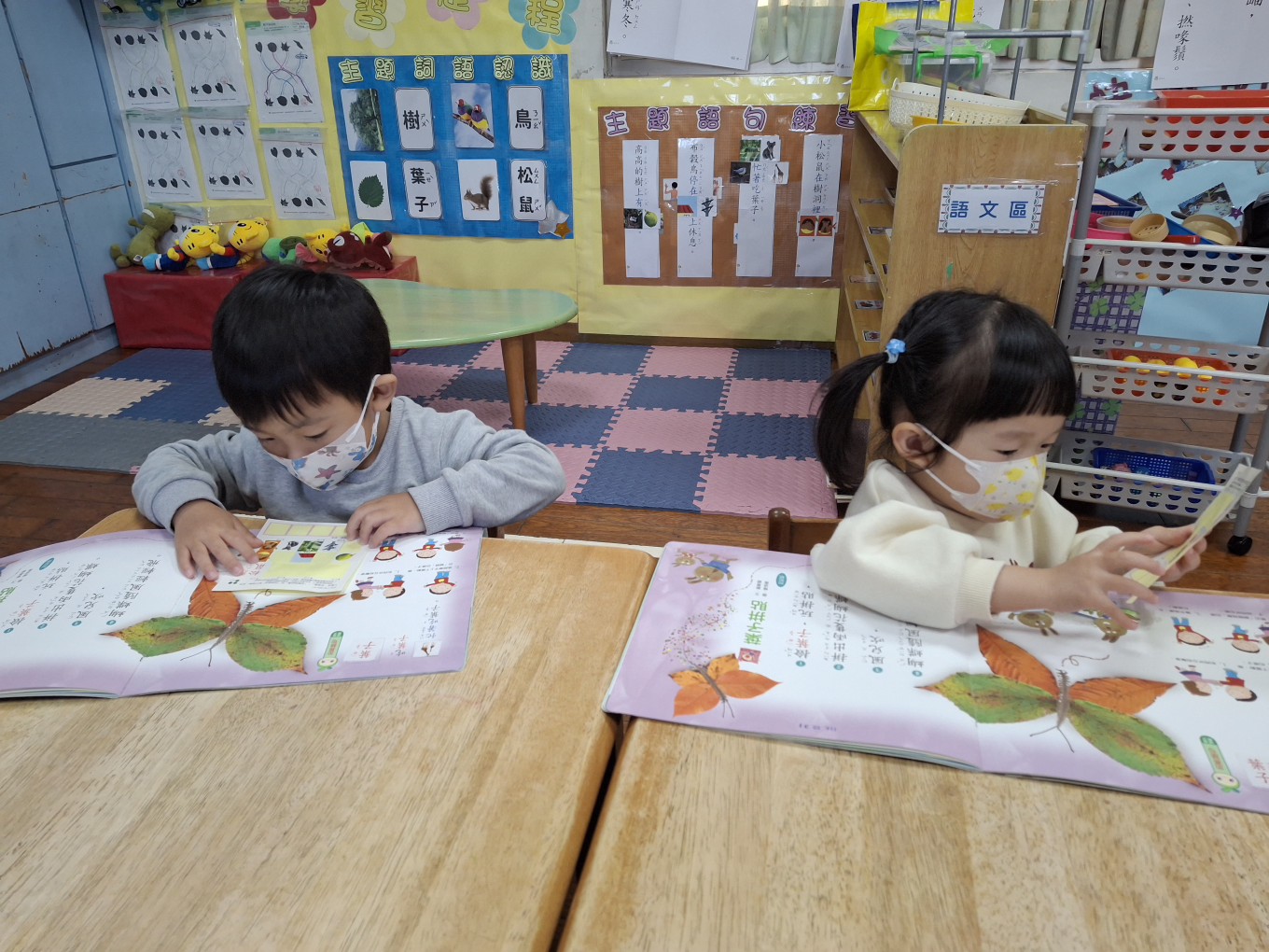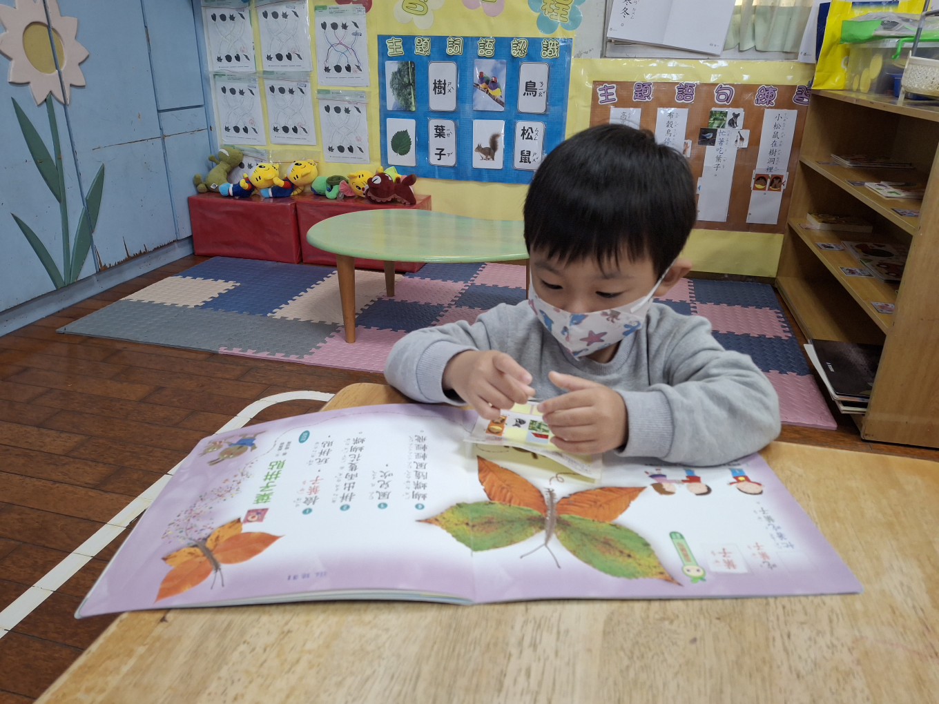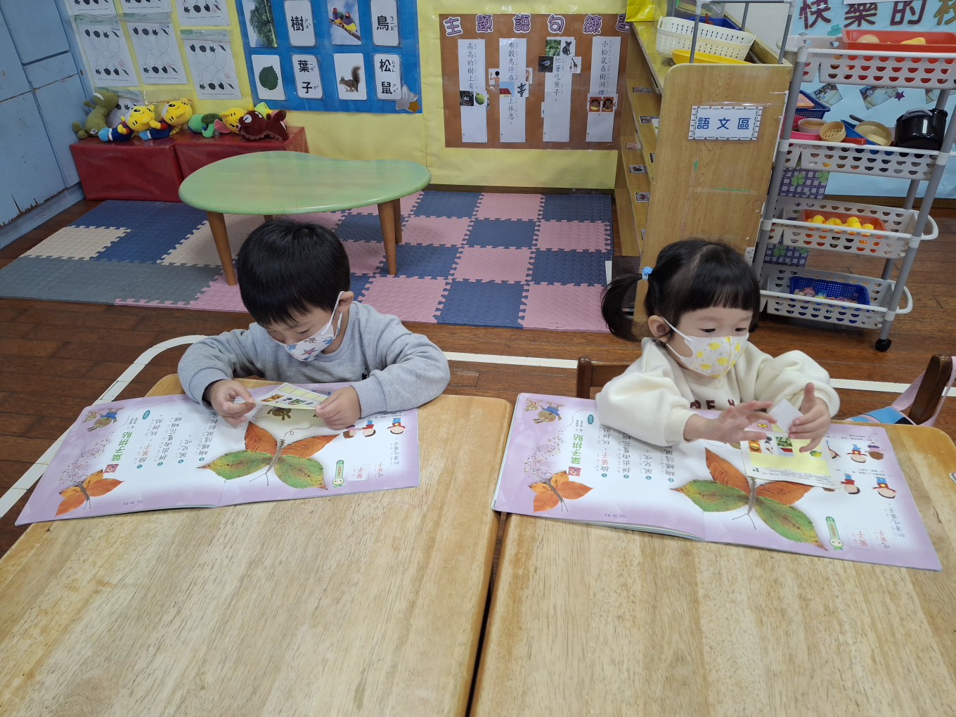 相簿名稱: 草莓班-主題探索【兒歌(葉子拼貼)認字圖文貼貼樂】