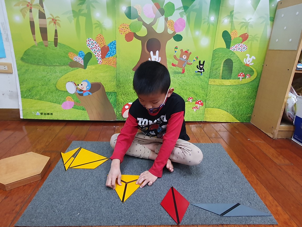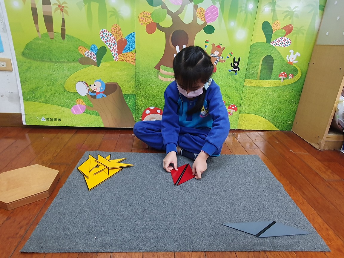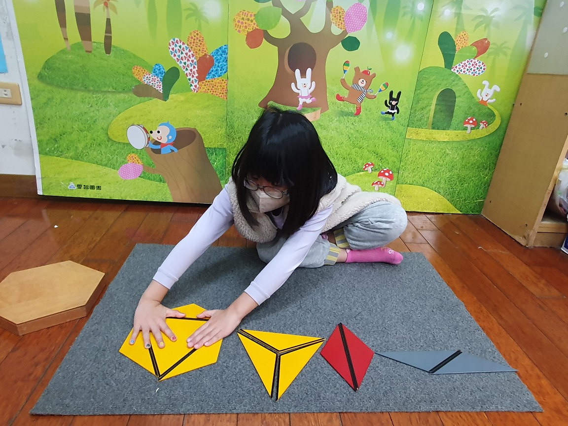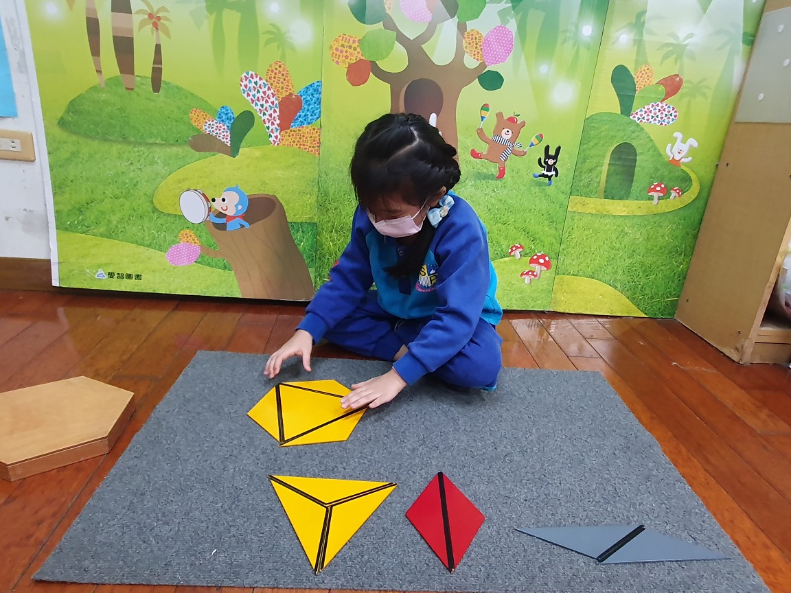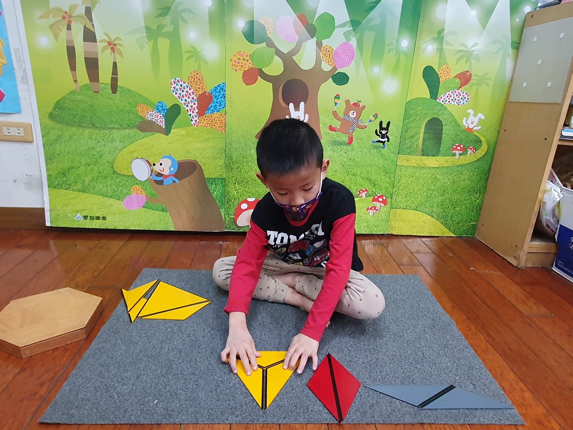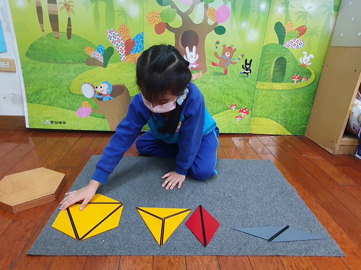 相簿名稱: 向日葵班-蒙特梭利教學(感官教育-構成三角形(大六邊形))