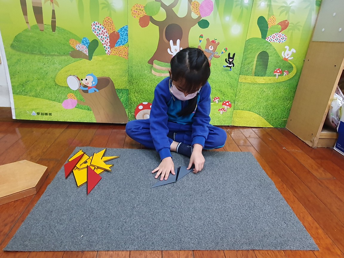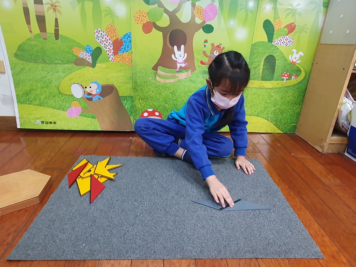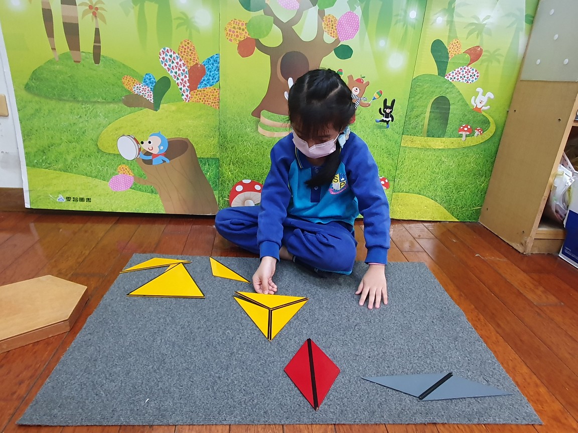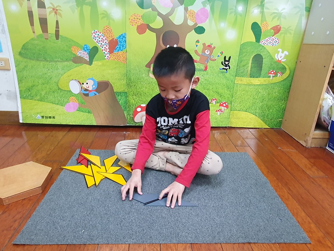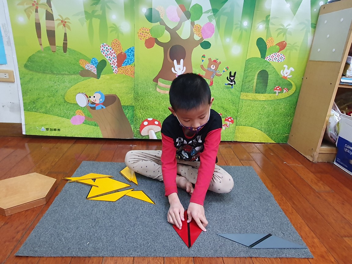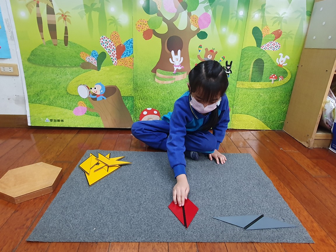 相簿名稱: 向日葵班-蒙特梭利教學(感官教育-構成三角形(大六邊形))
