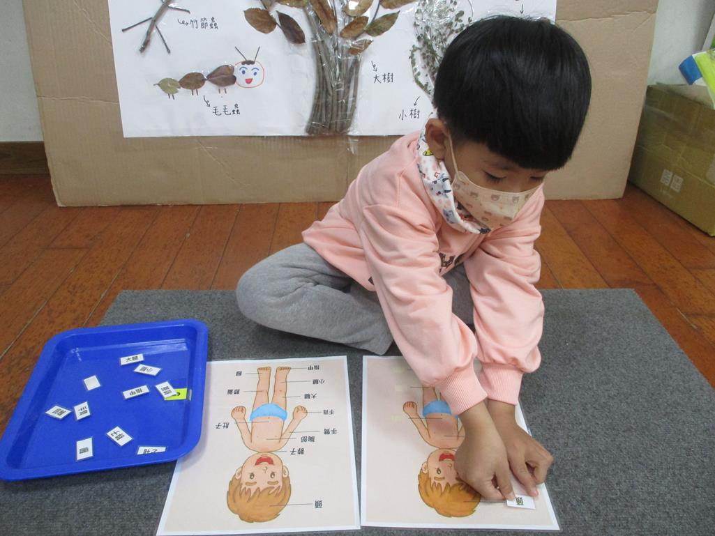 相簿名稱: 茉莉班-蒙特梭利教學(感官教育-身體部位卡配對)