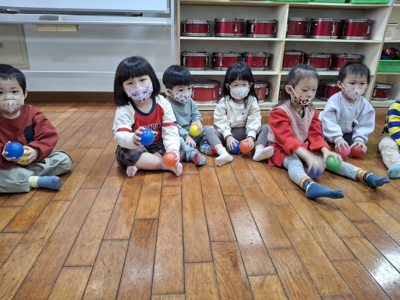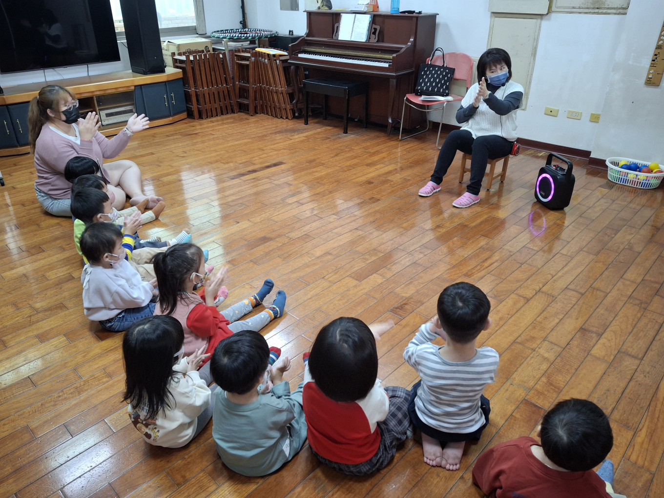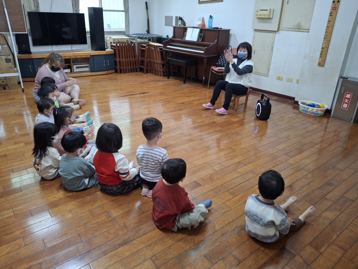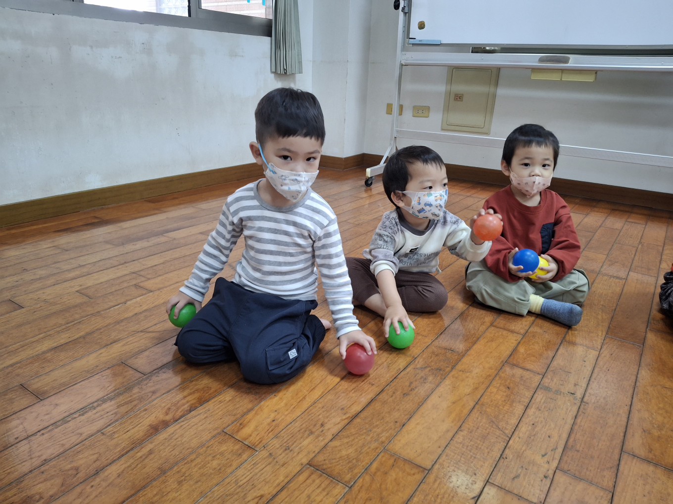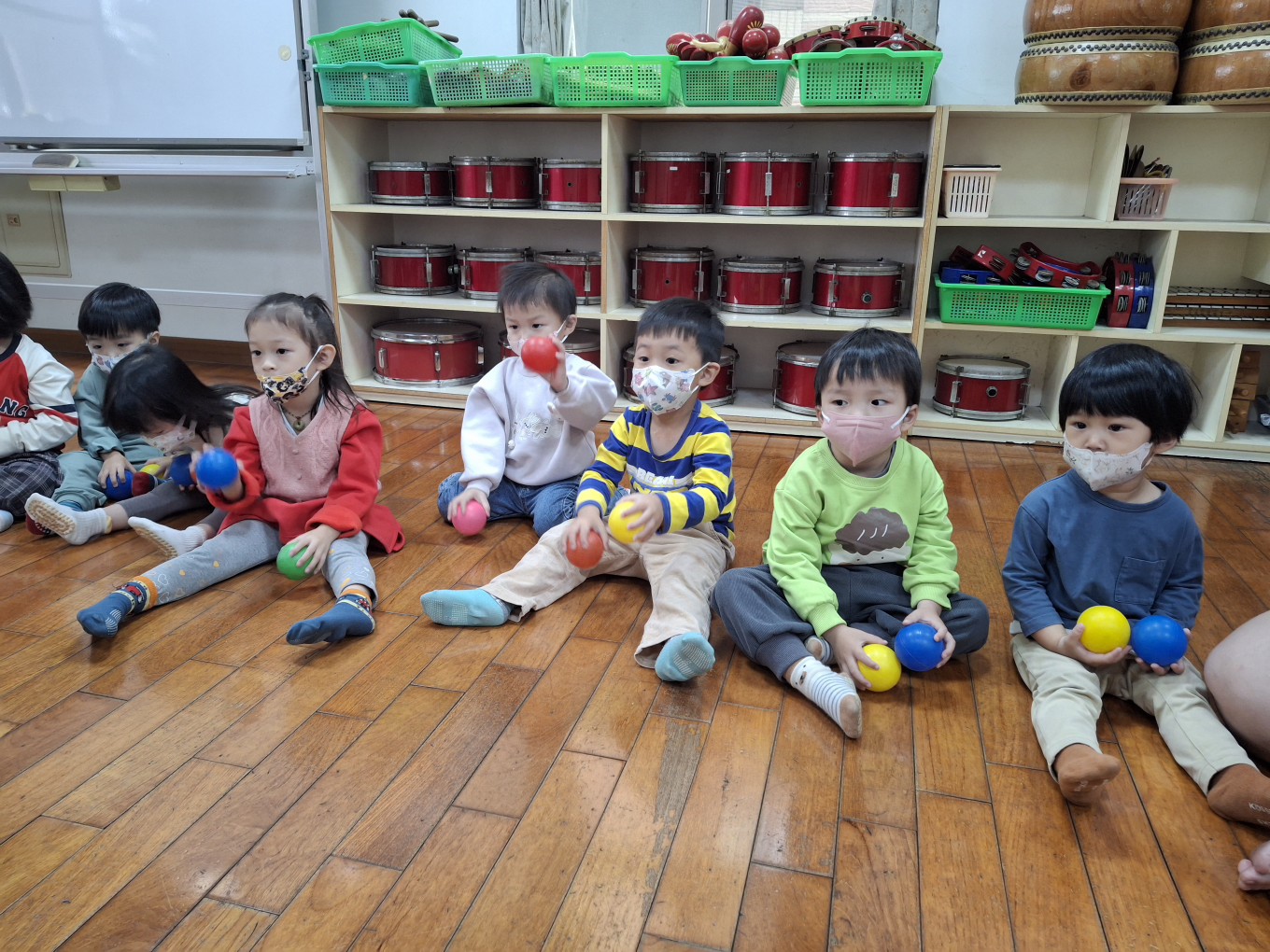 相簿名稱: 草莓班-美感【奧福音樂-音樂節奏音階快、慢的變化(彩色球模擬)】