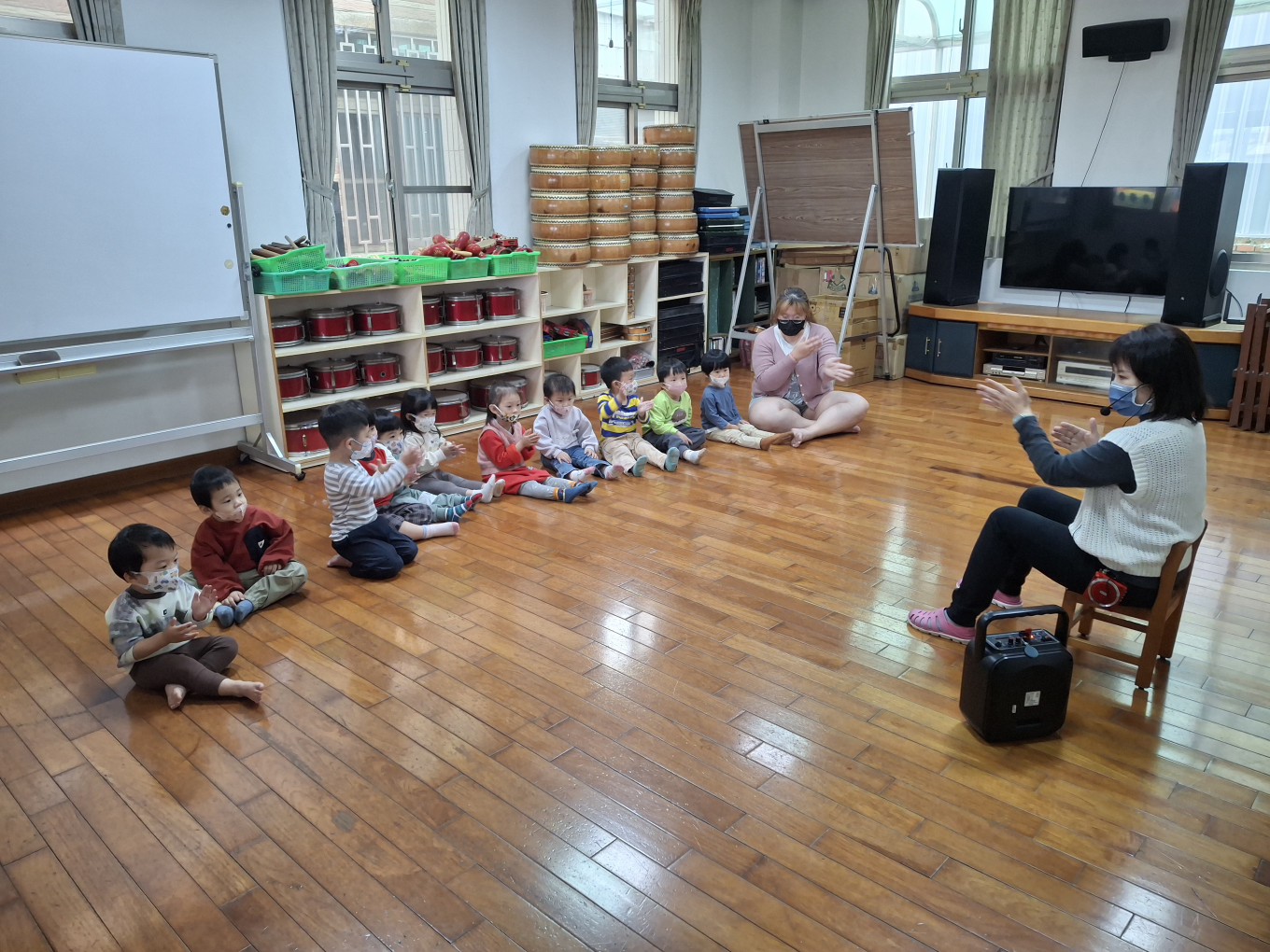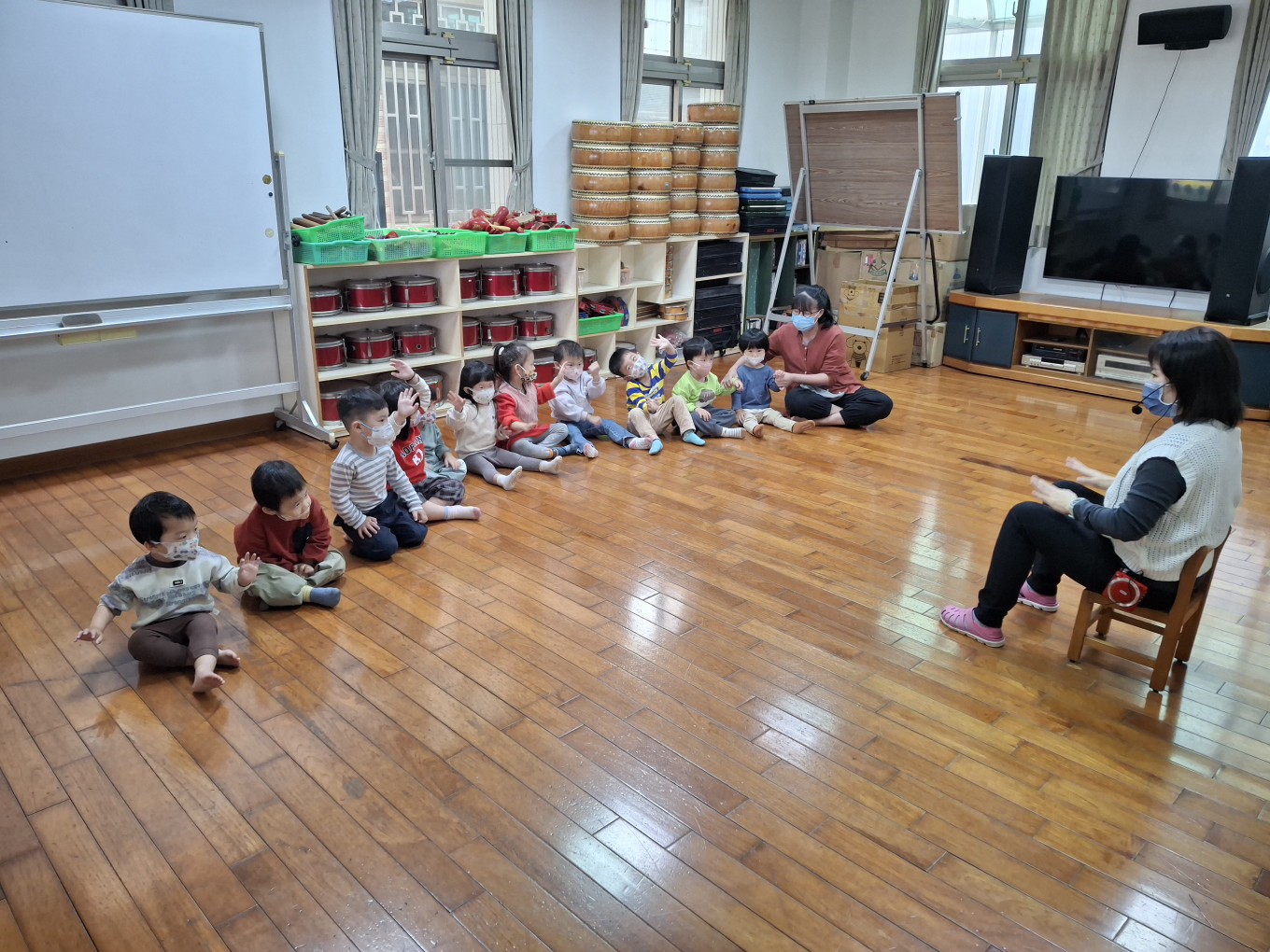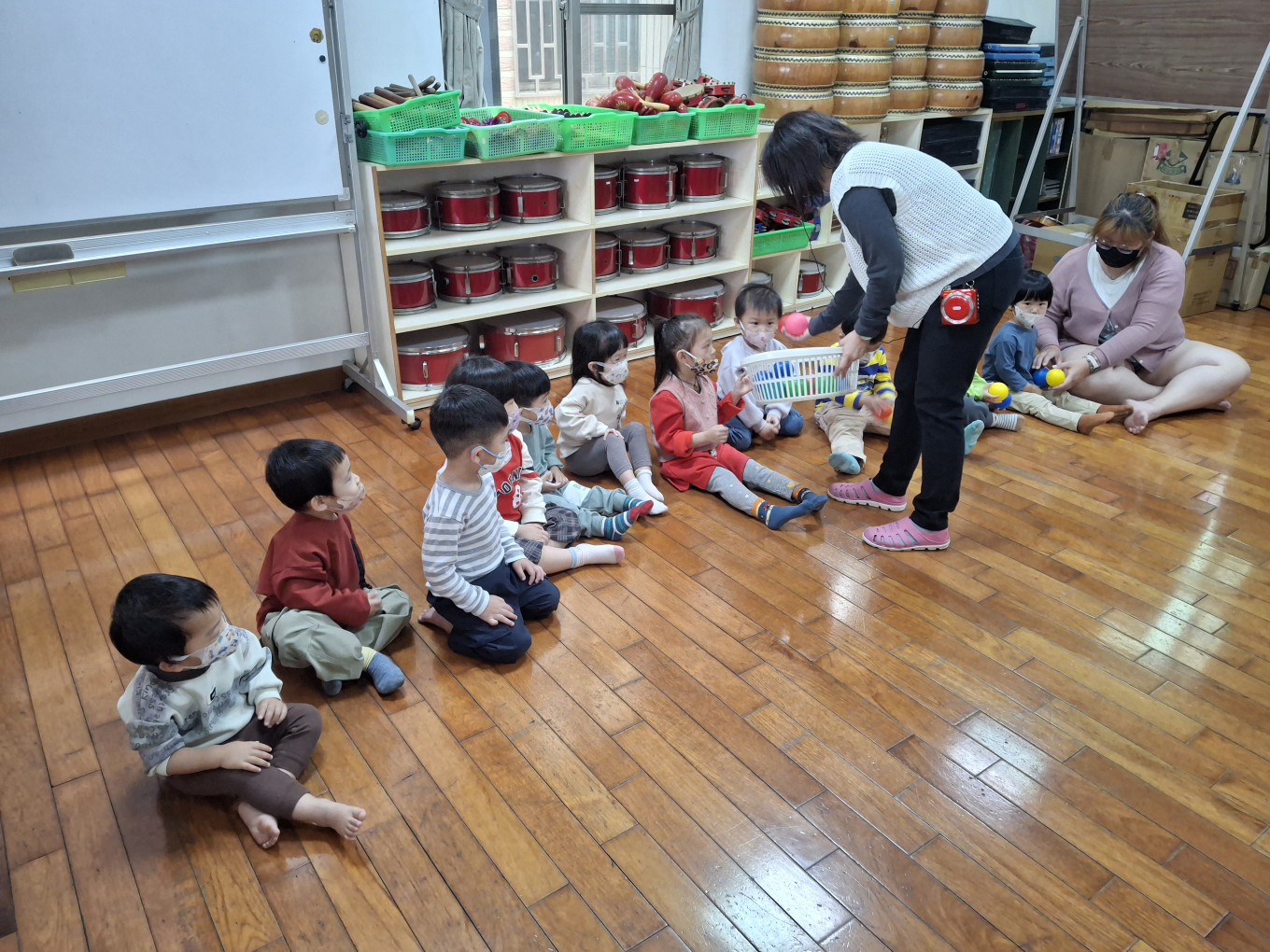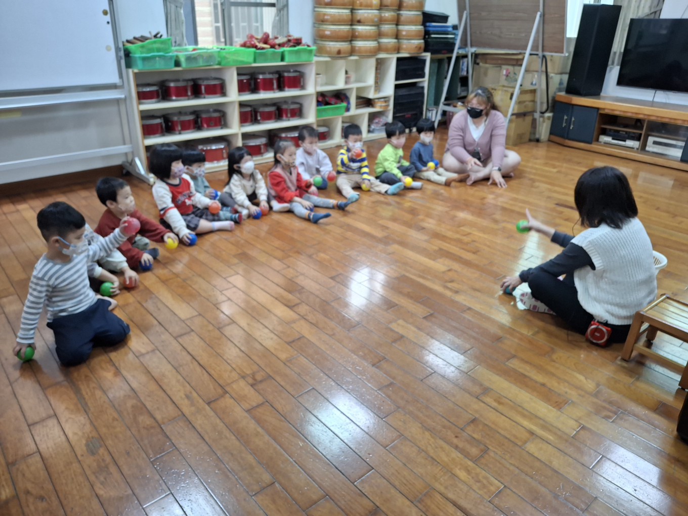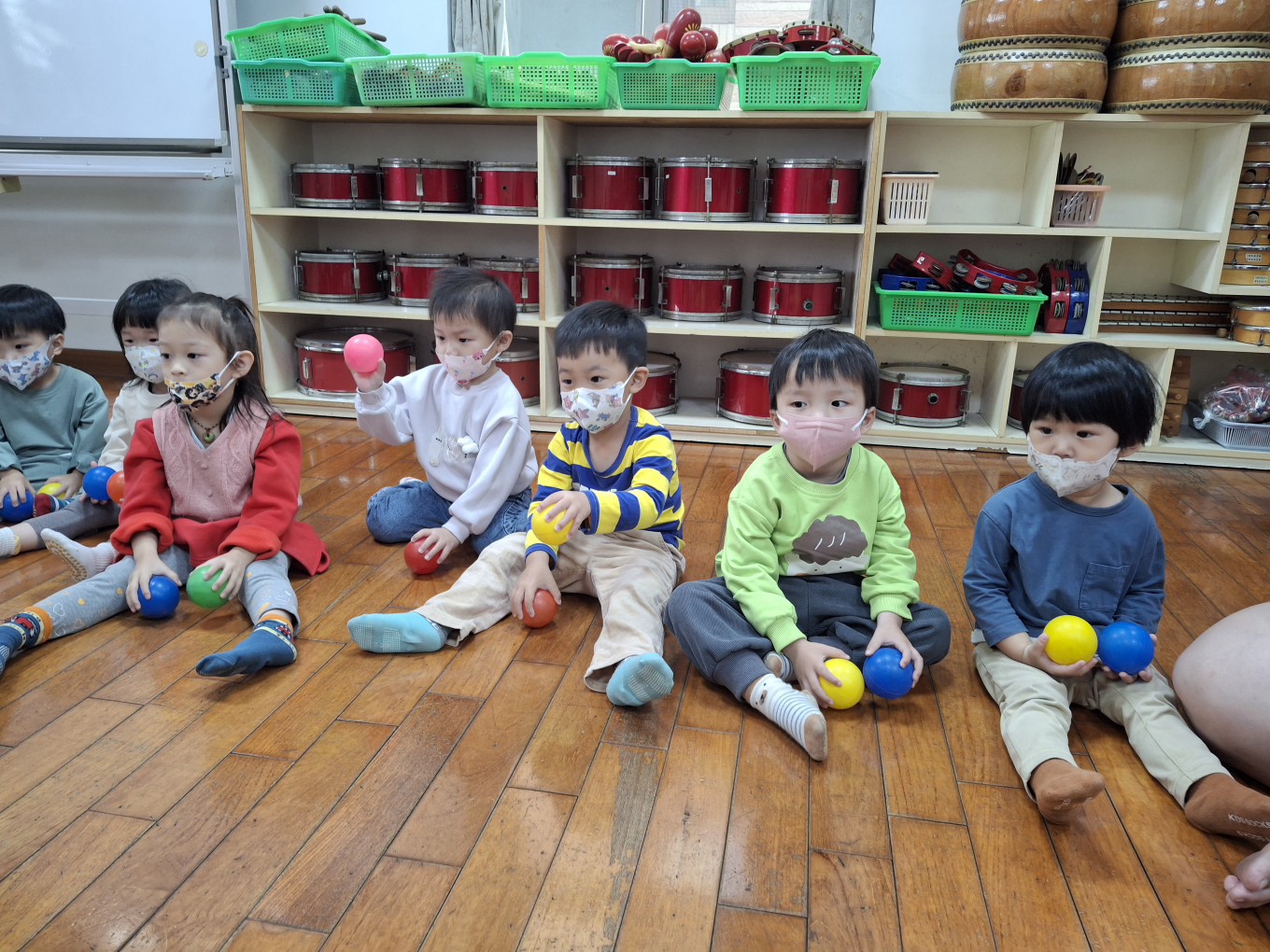 相簿名稱: 草莓班-美感【奧福音樂-音樂節奏音階快、慢的變化(彩色球模擬)】
