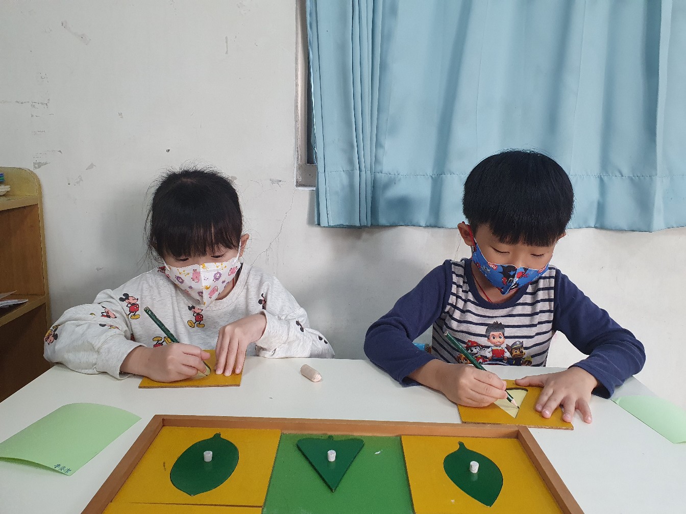 相簿名稱: 向日葵班-蒙特梭利教學(日常生活教育-刺工~樹葉拼圖櫥(3個))