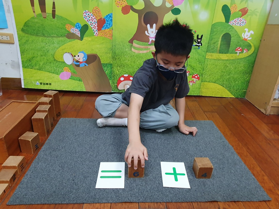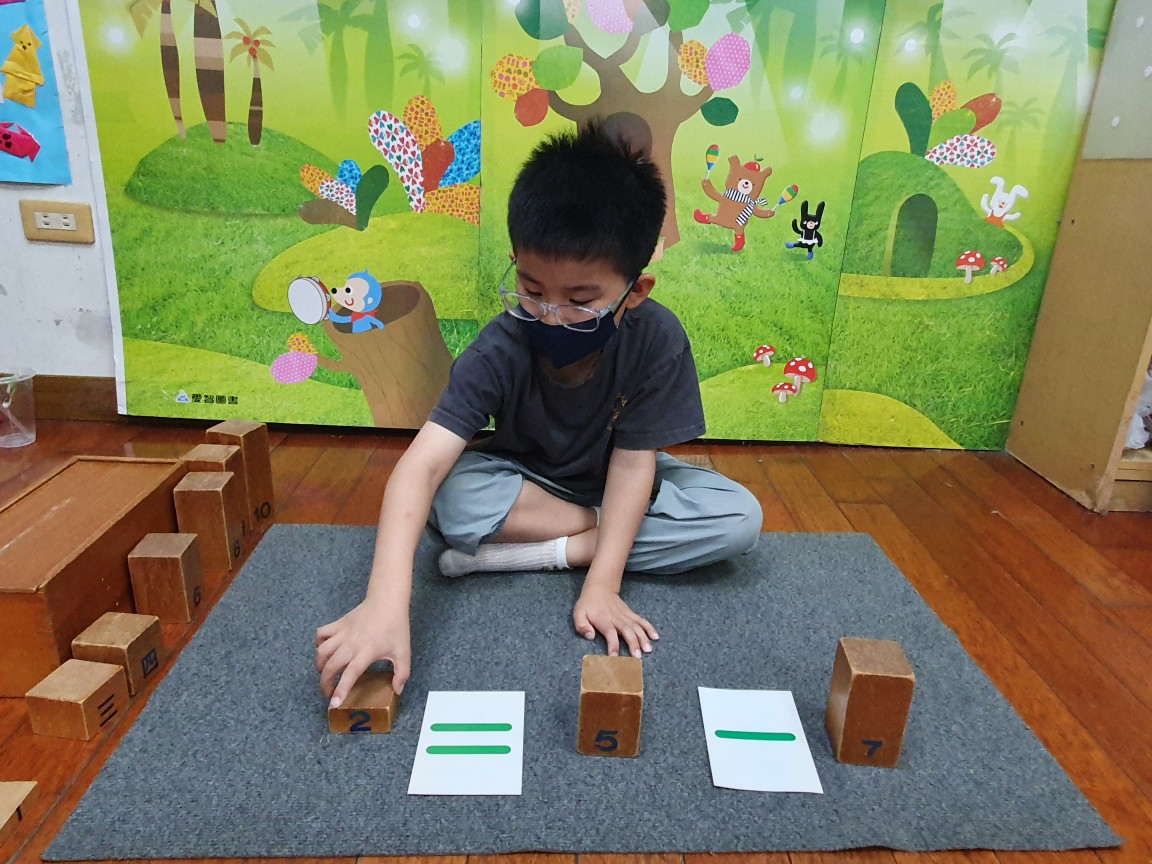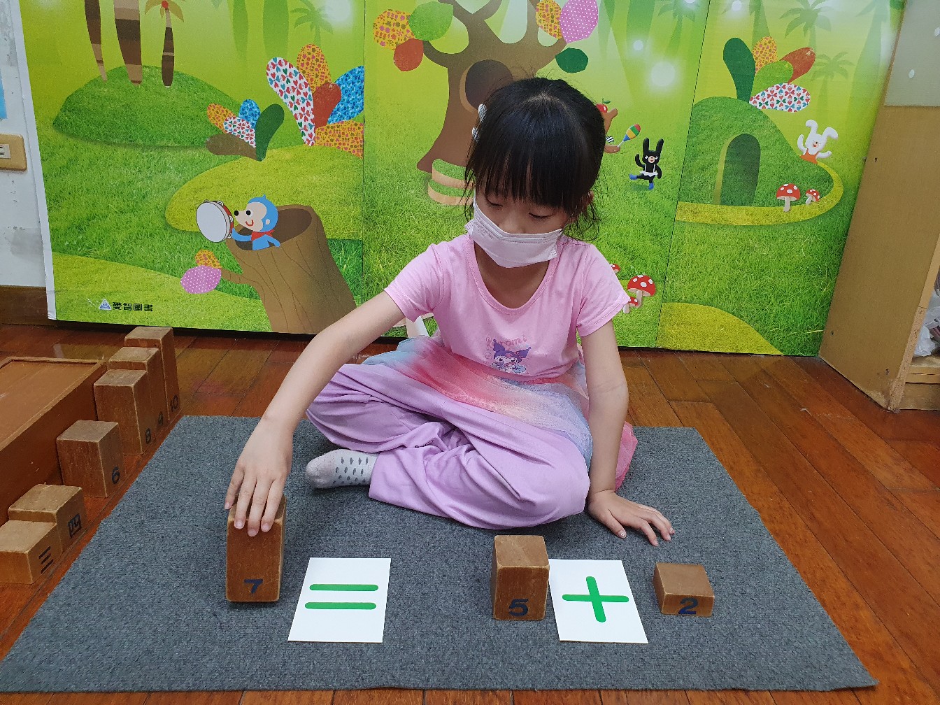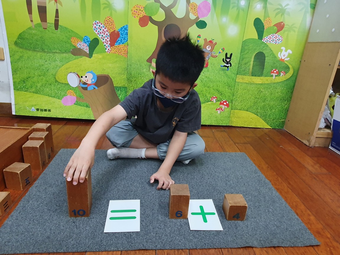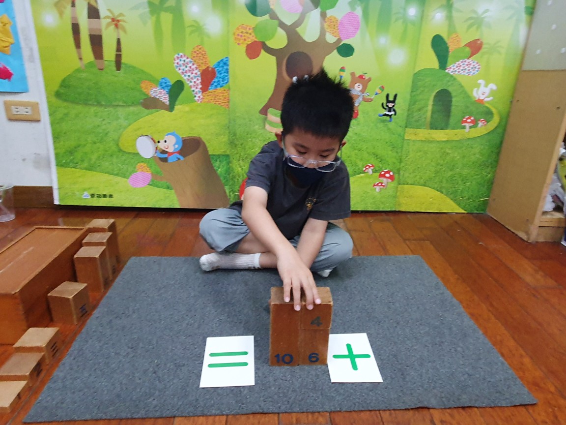 相簿名稱: 向日葵班-蒙特梭利教學(數學教育-數塔10以內的加、減法)
