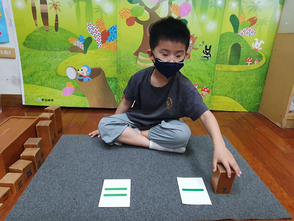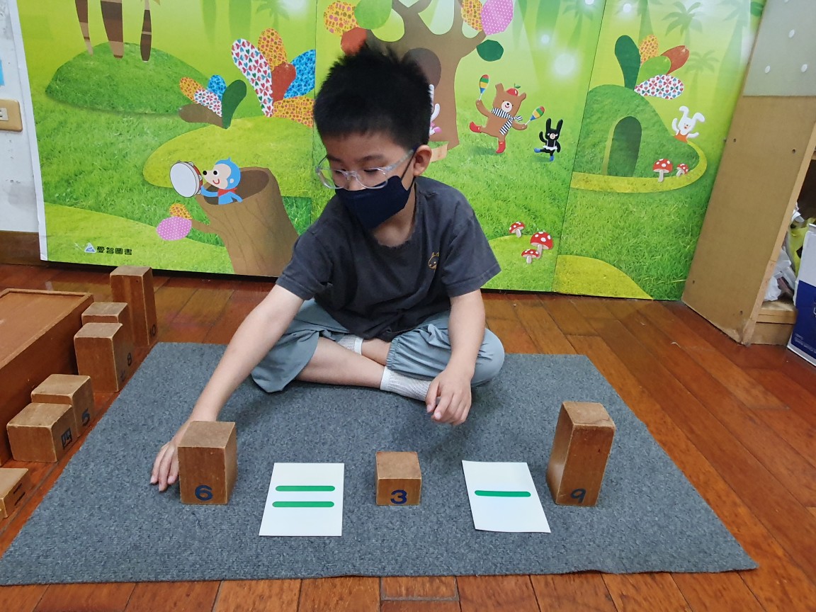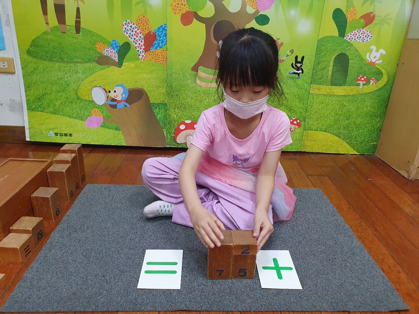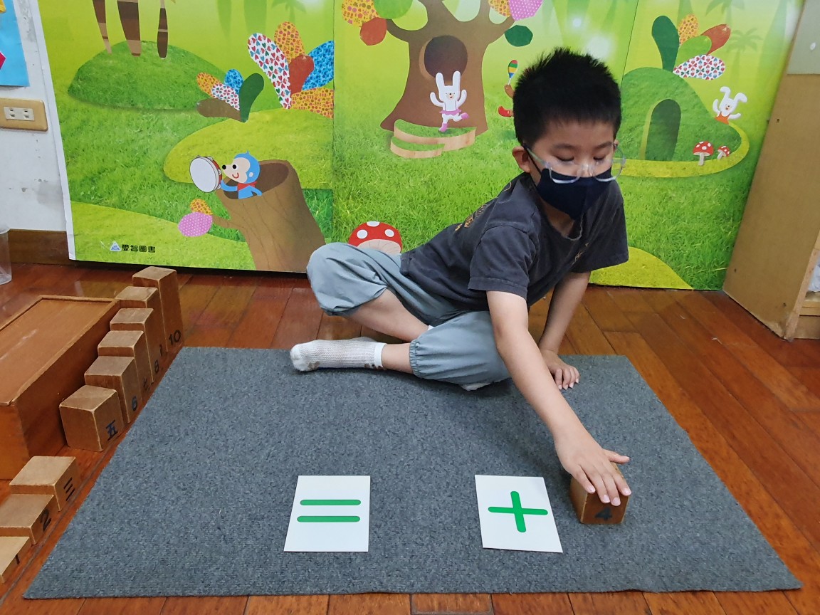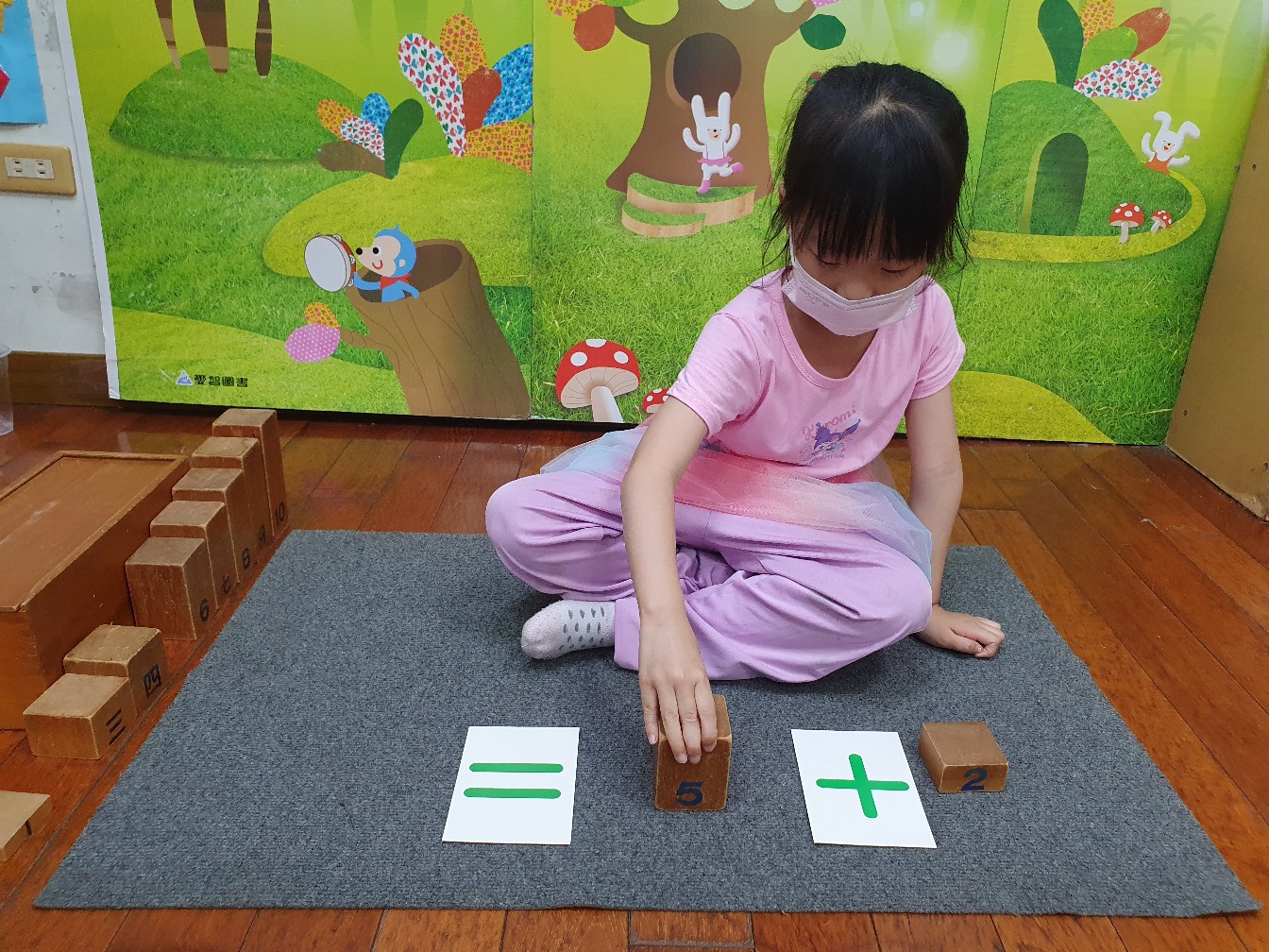 相簿名稱: 向日葵班-蒙特梭利教學(數學教育-數塔10以內的加、減法)