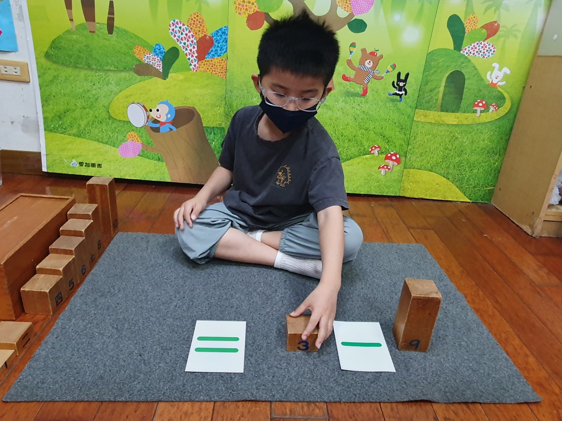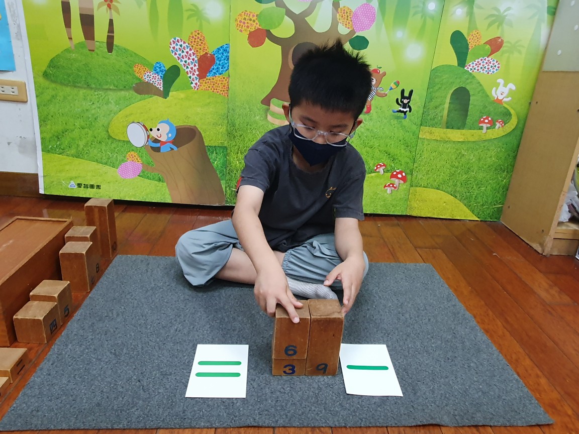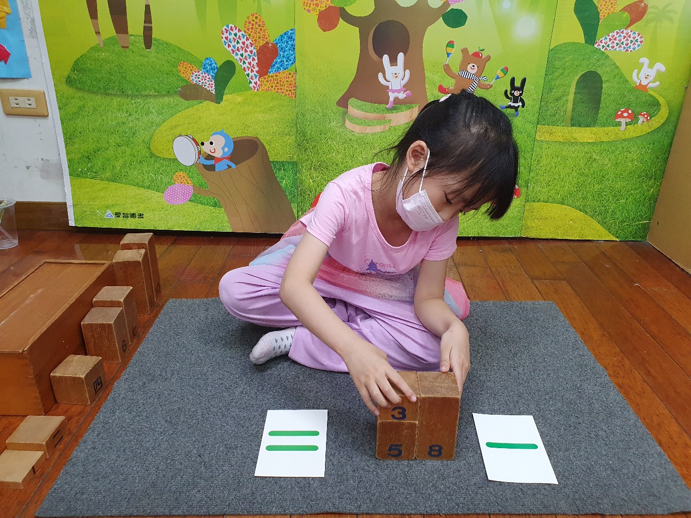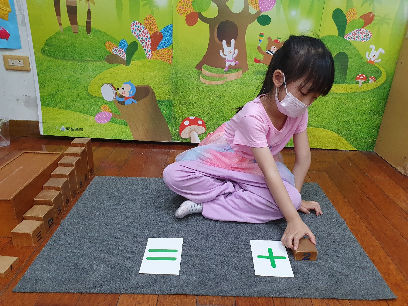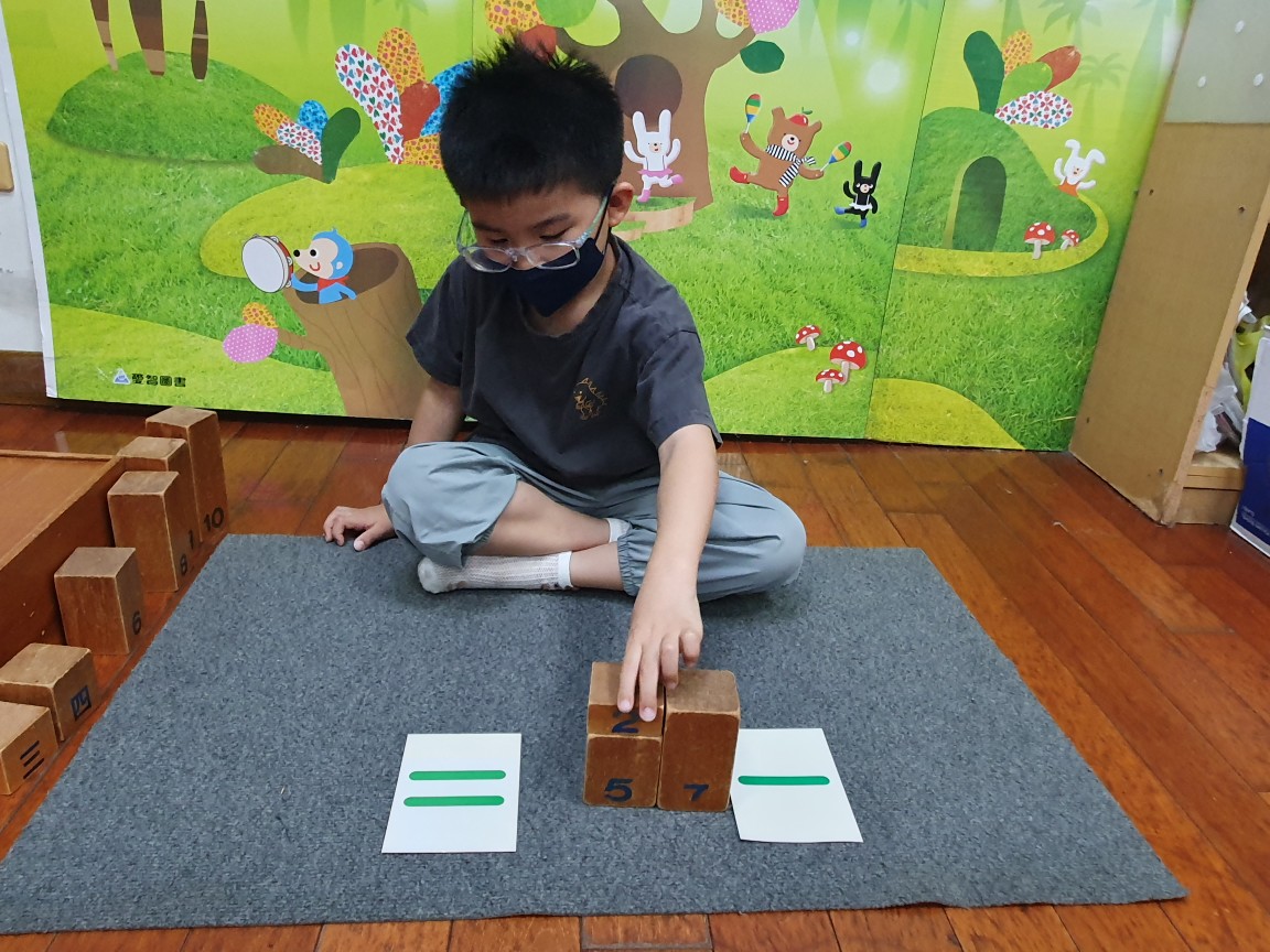 相簿名稱: 向日葵班-蒙特梭利教學(數學教育-數塔10以內的加、減法)
