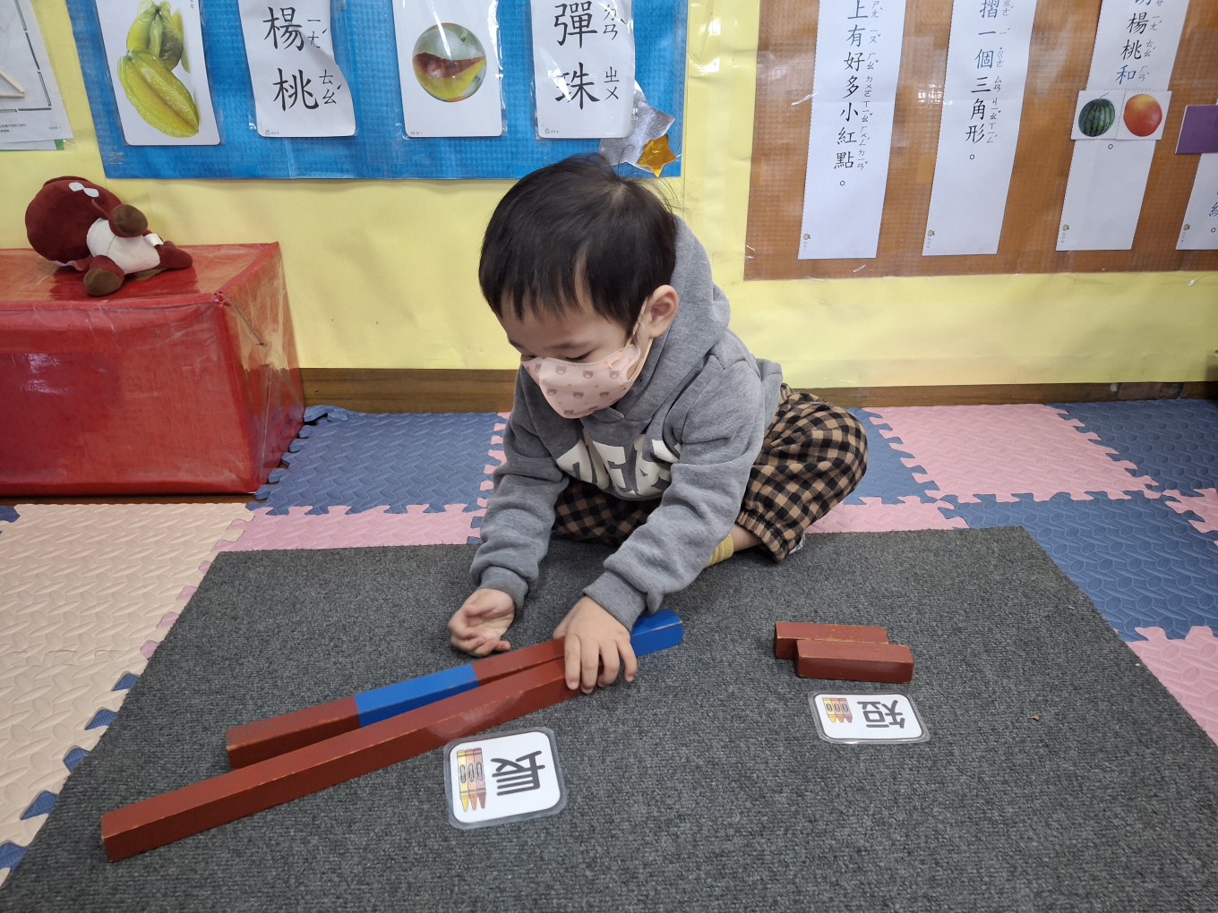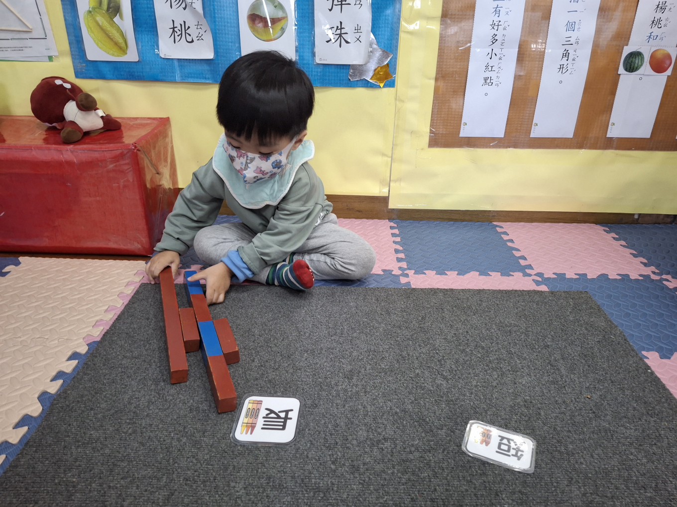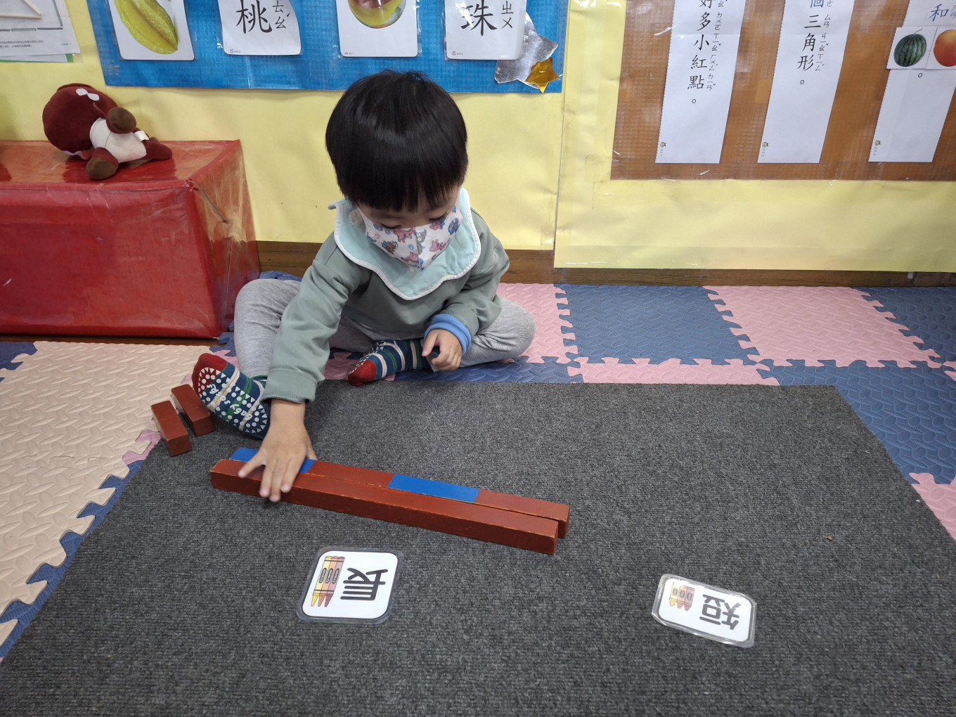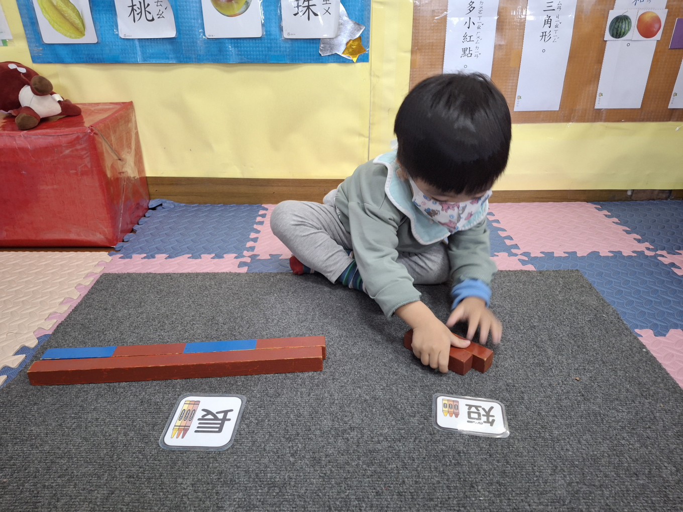 相簿名稱: 草莓班-蒙特梭利教學【數學教育-數棒+長棒(長短)配對】