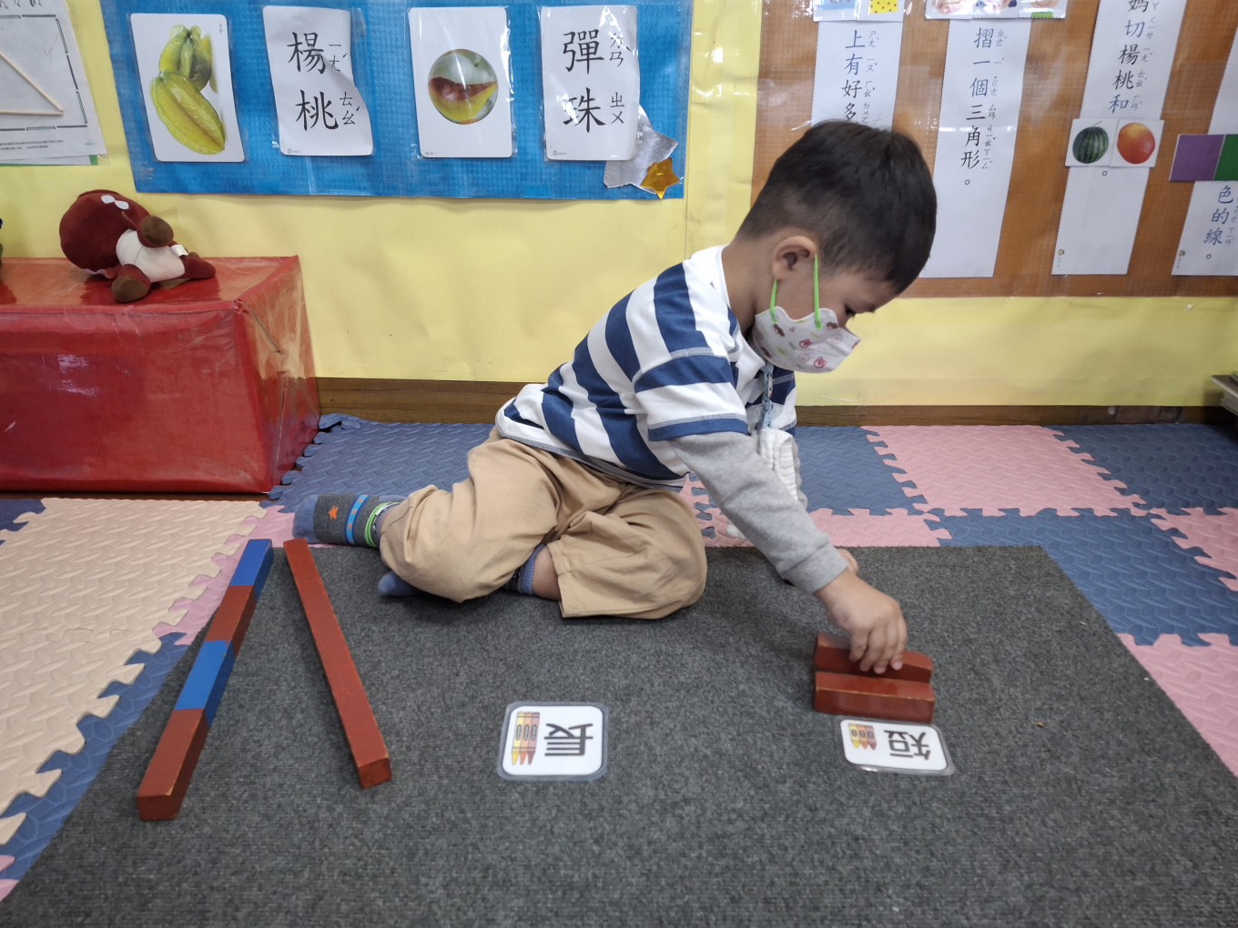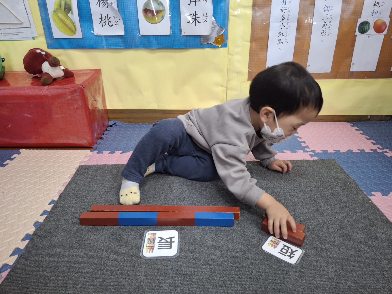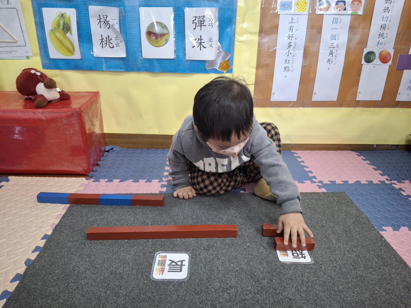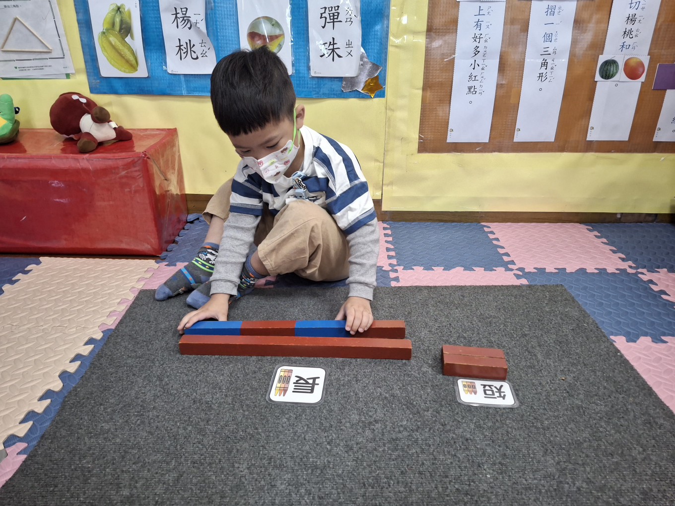 相簿名稱: 草莓班-蒙特梭利教學【數學教育-數棒+長棒(長短)配對】