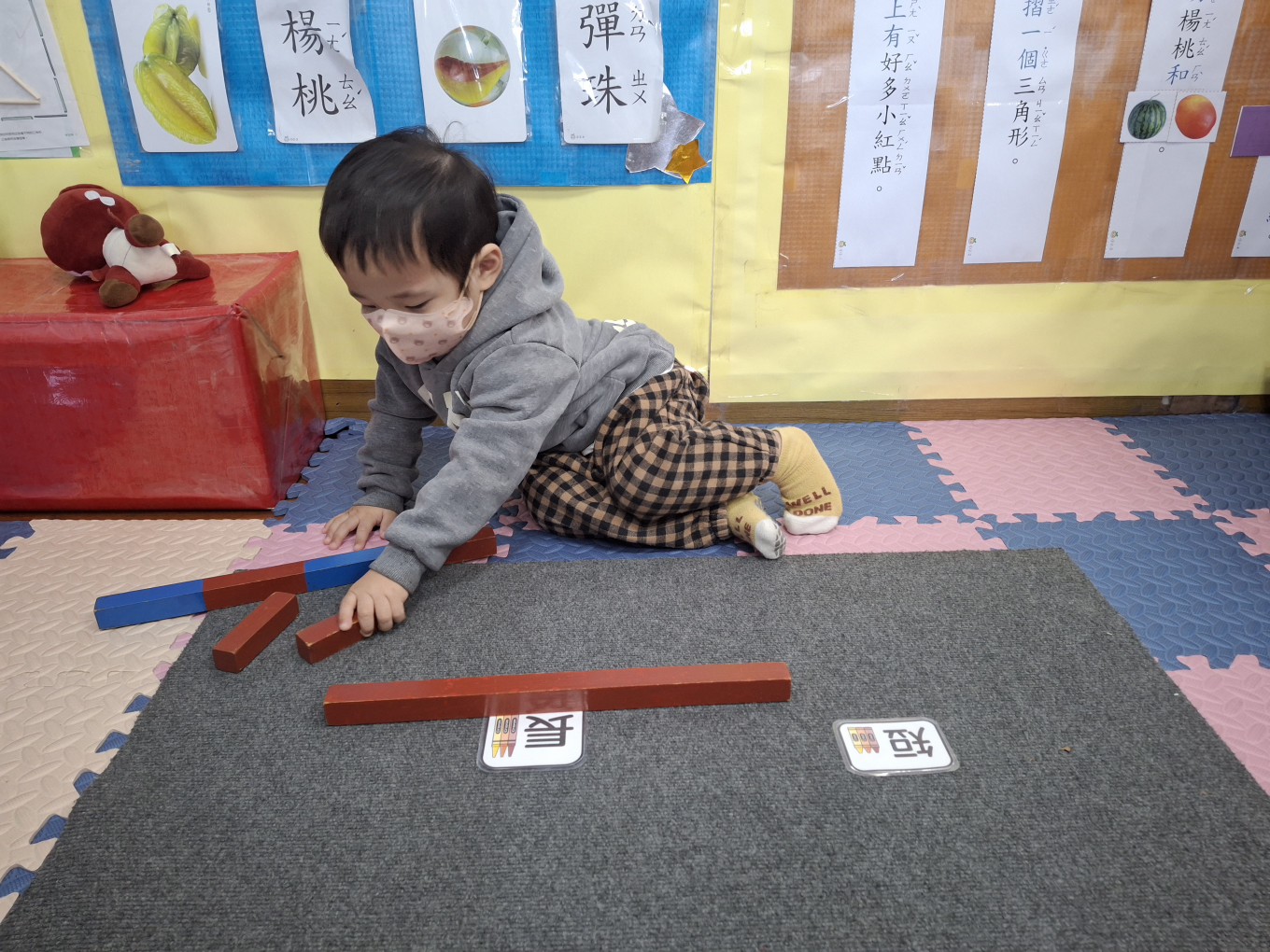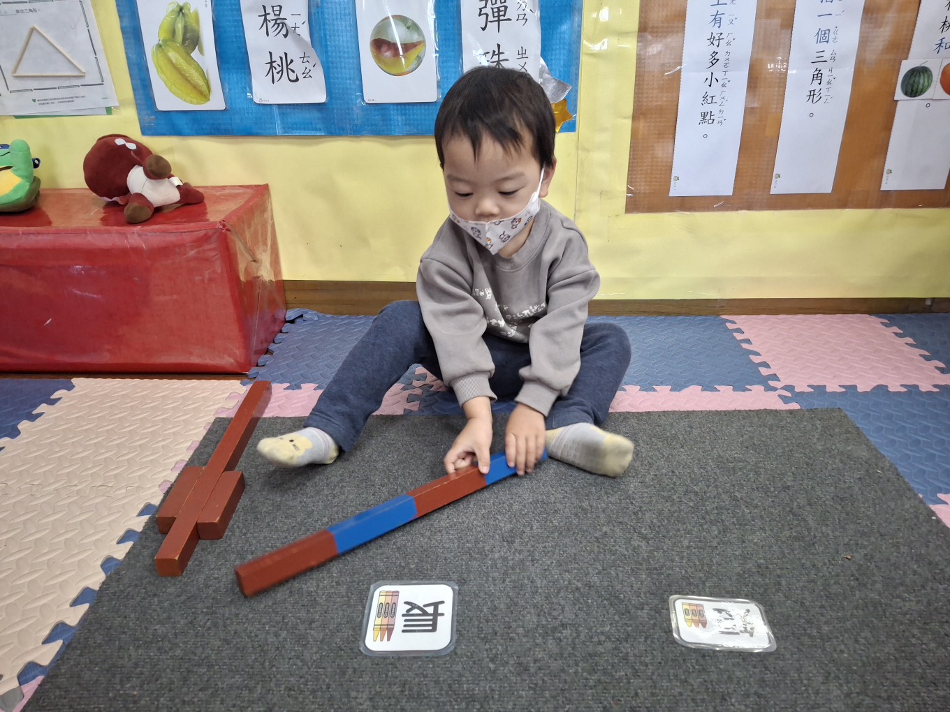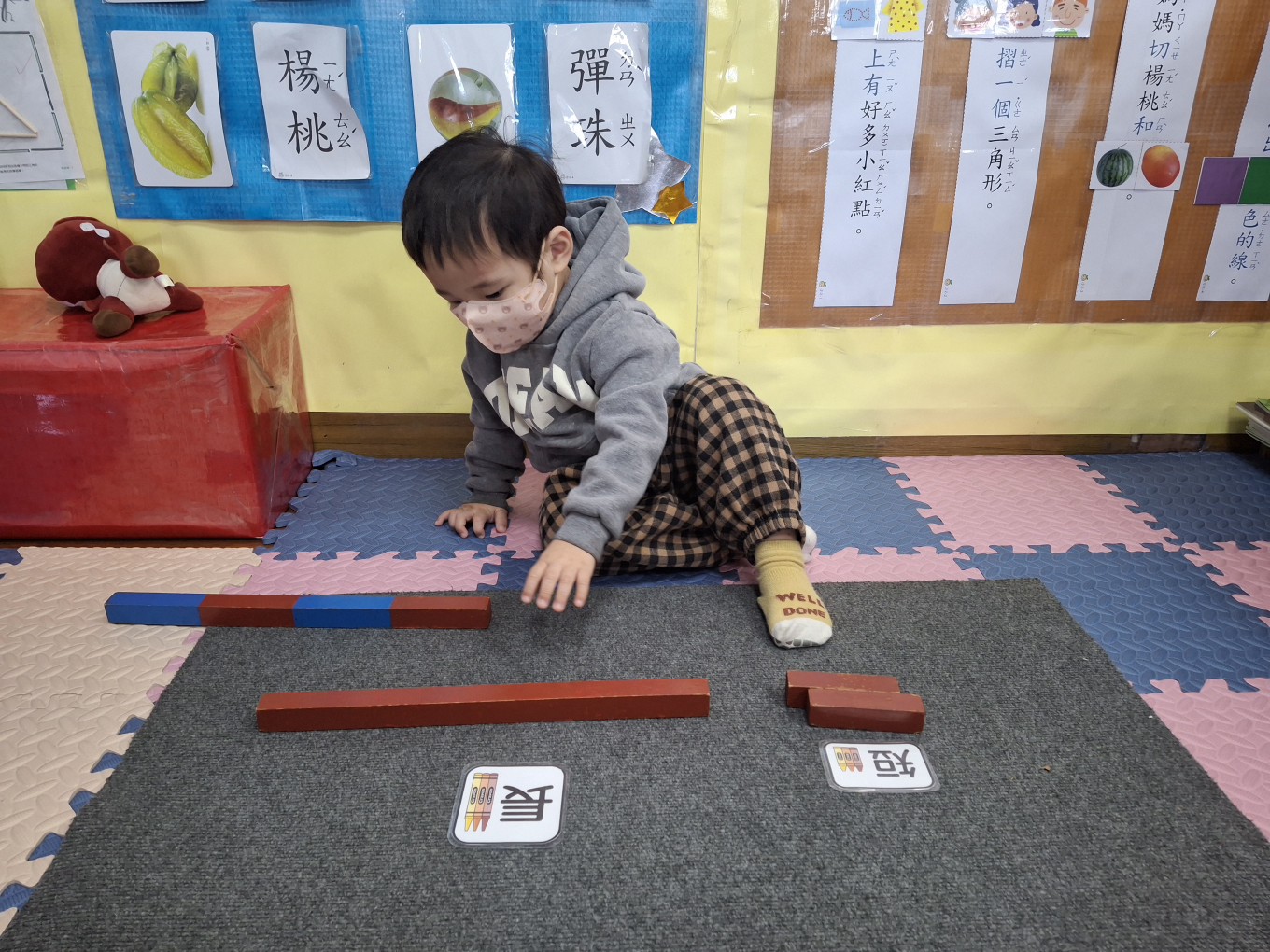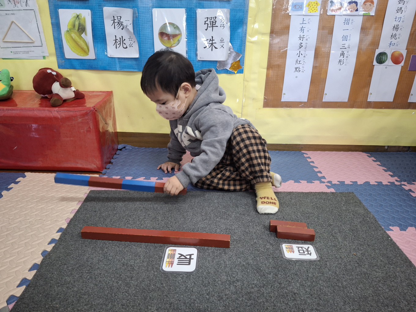 相簿名稱: 草莓班-蒙特梭利教學【數學教育-數棒+長棒(長短)配對】
