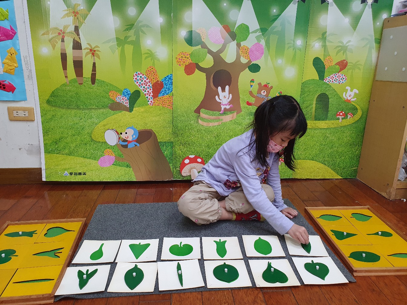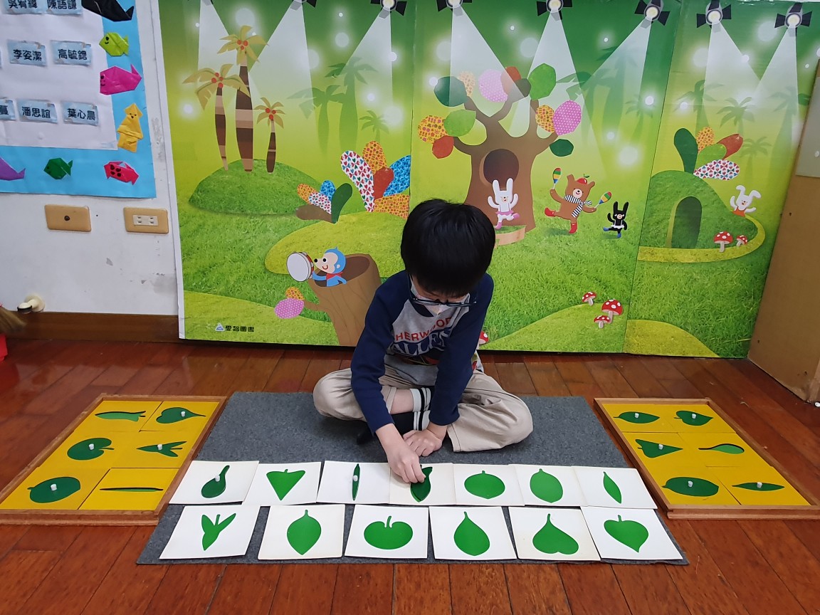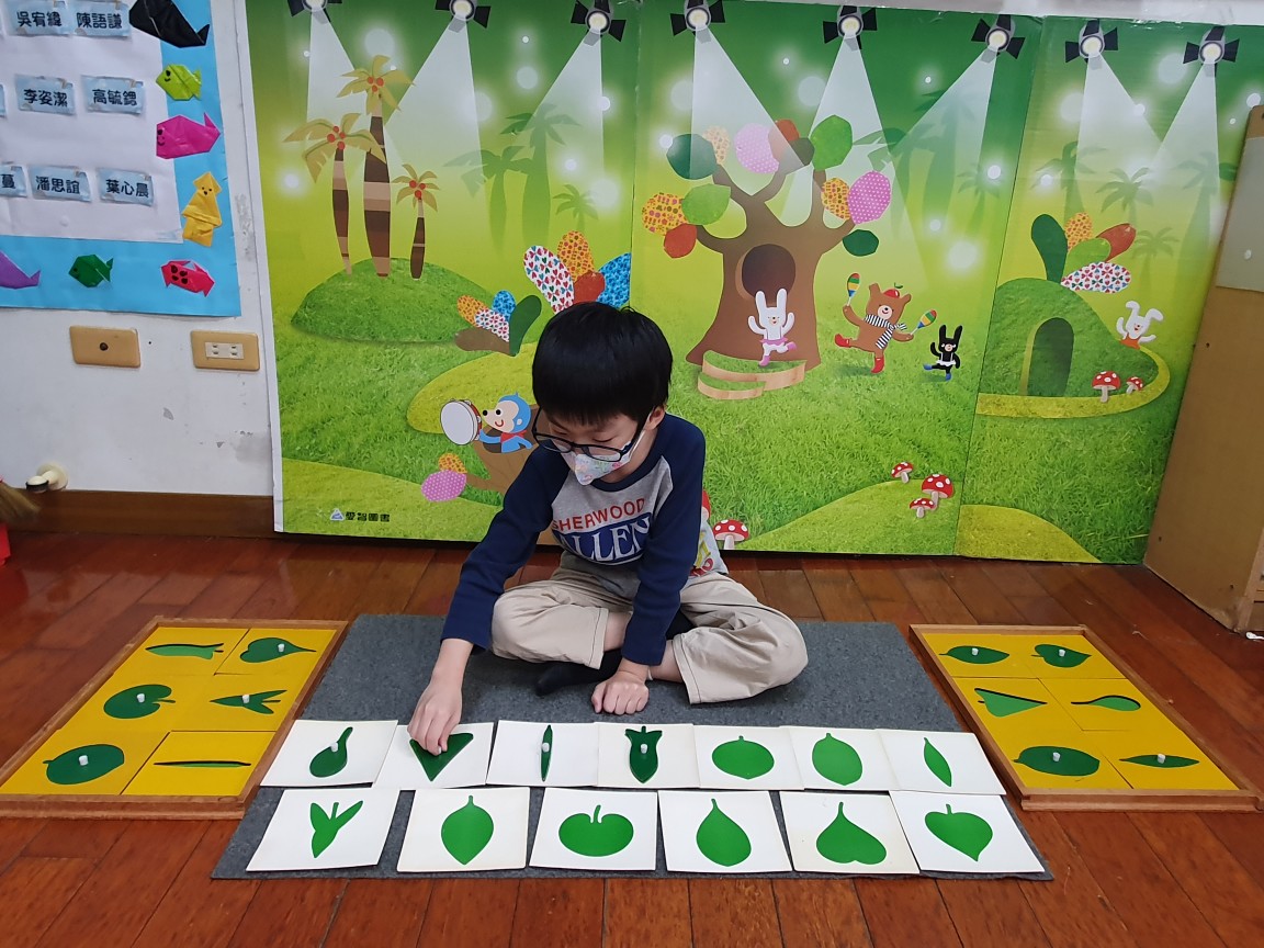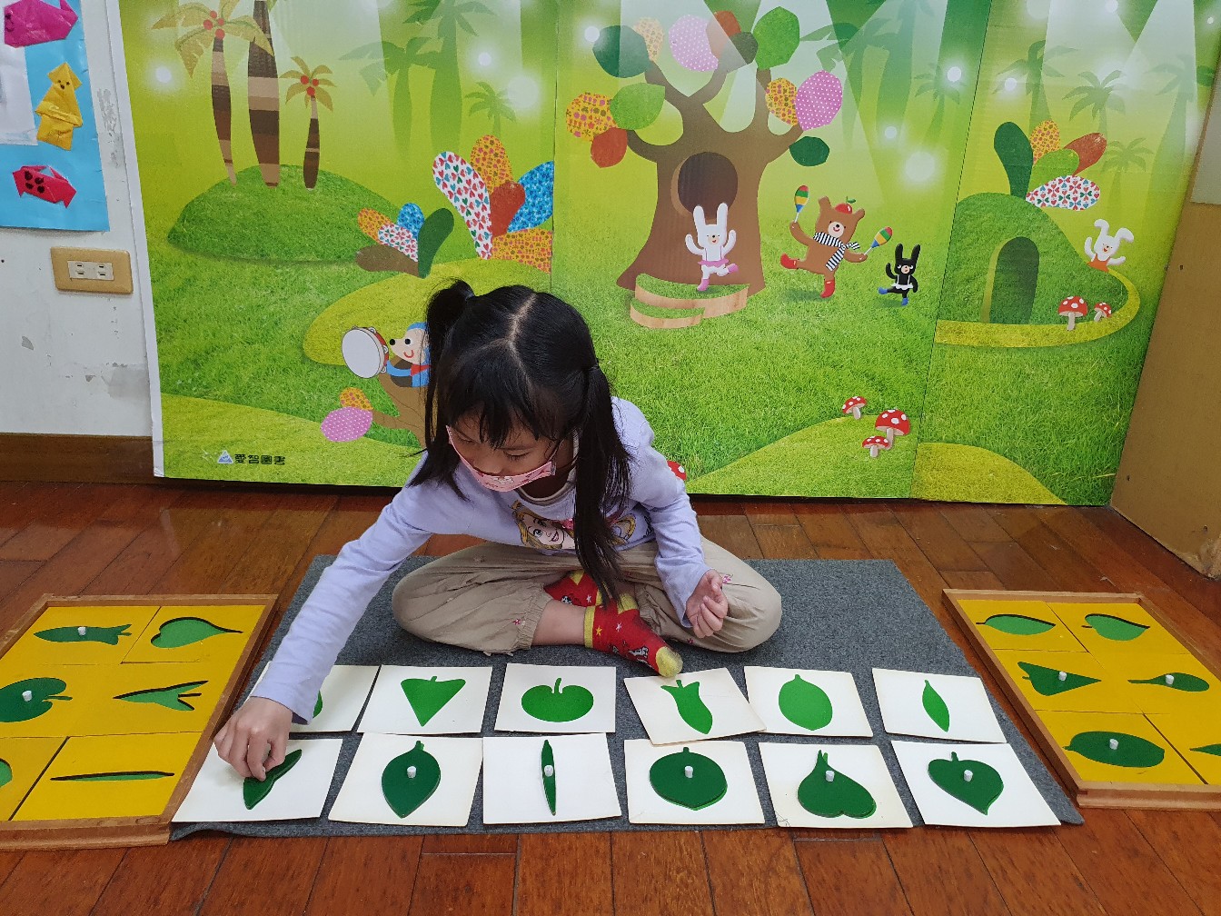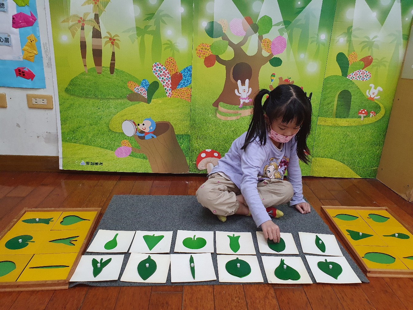相簿名稱: 向日葵班-蒙特梭利教學(感官教育-樹葉拼圖櫥+圖卡)