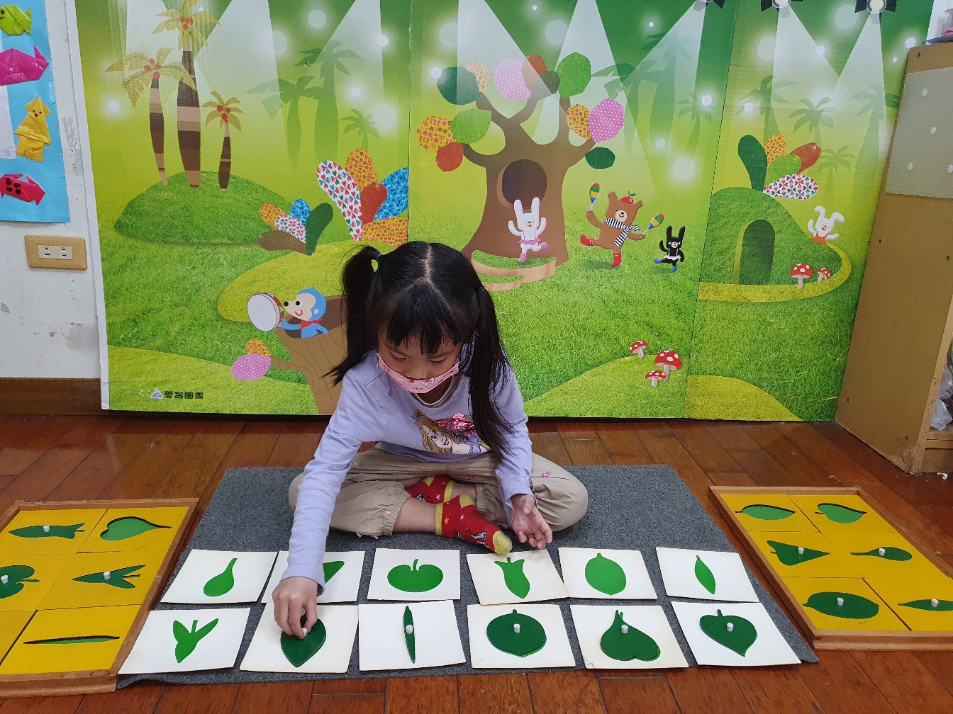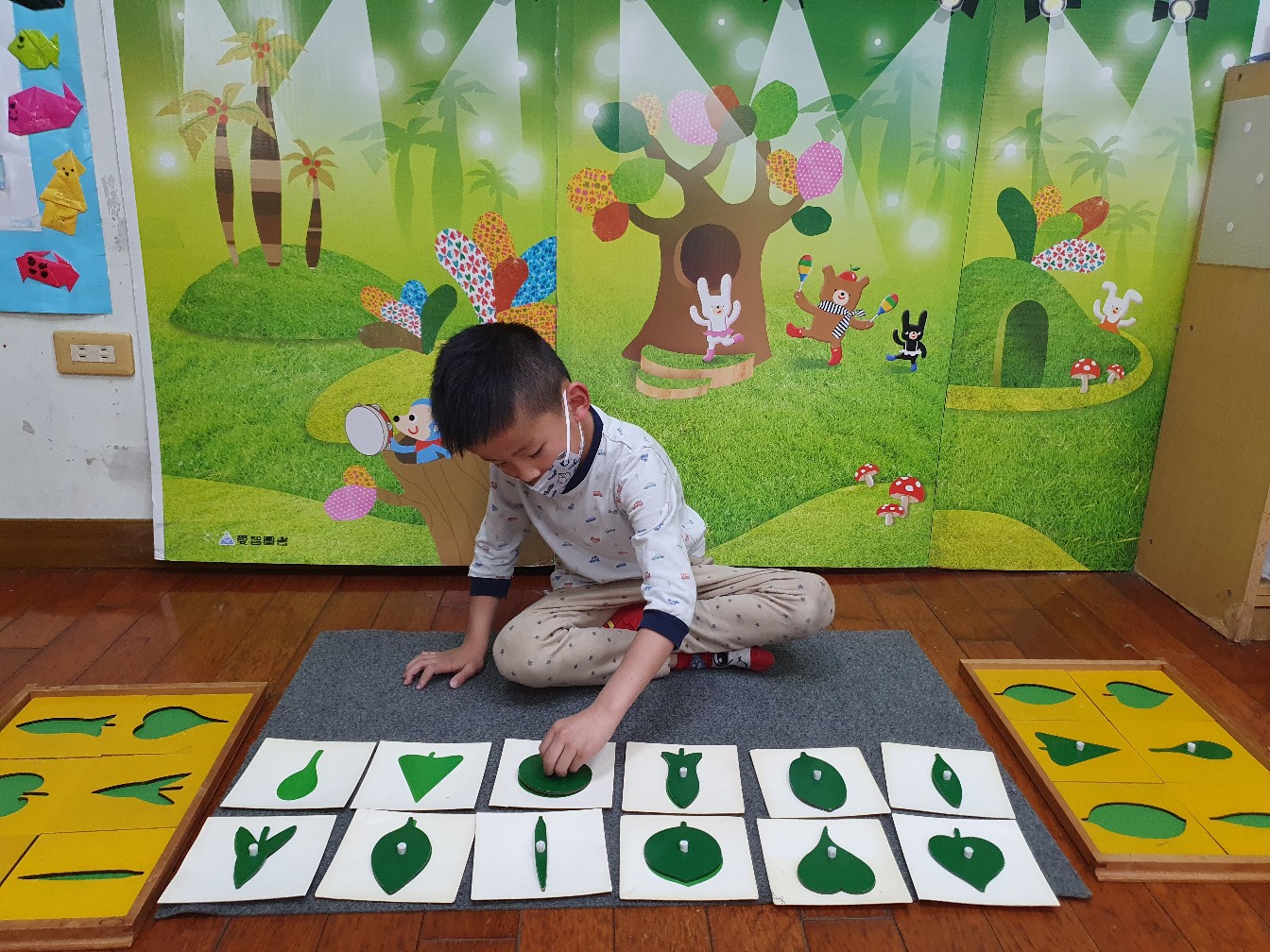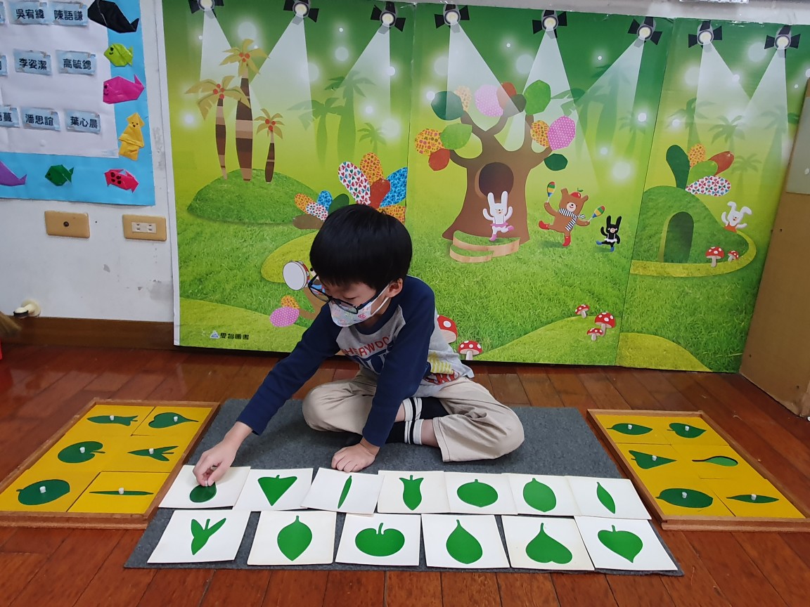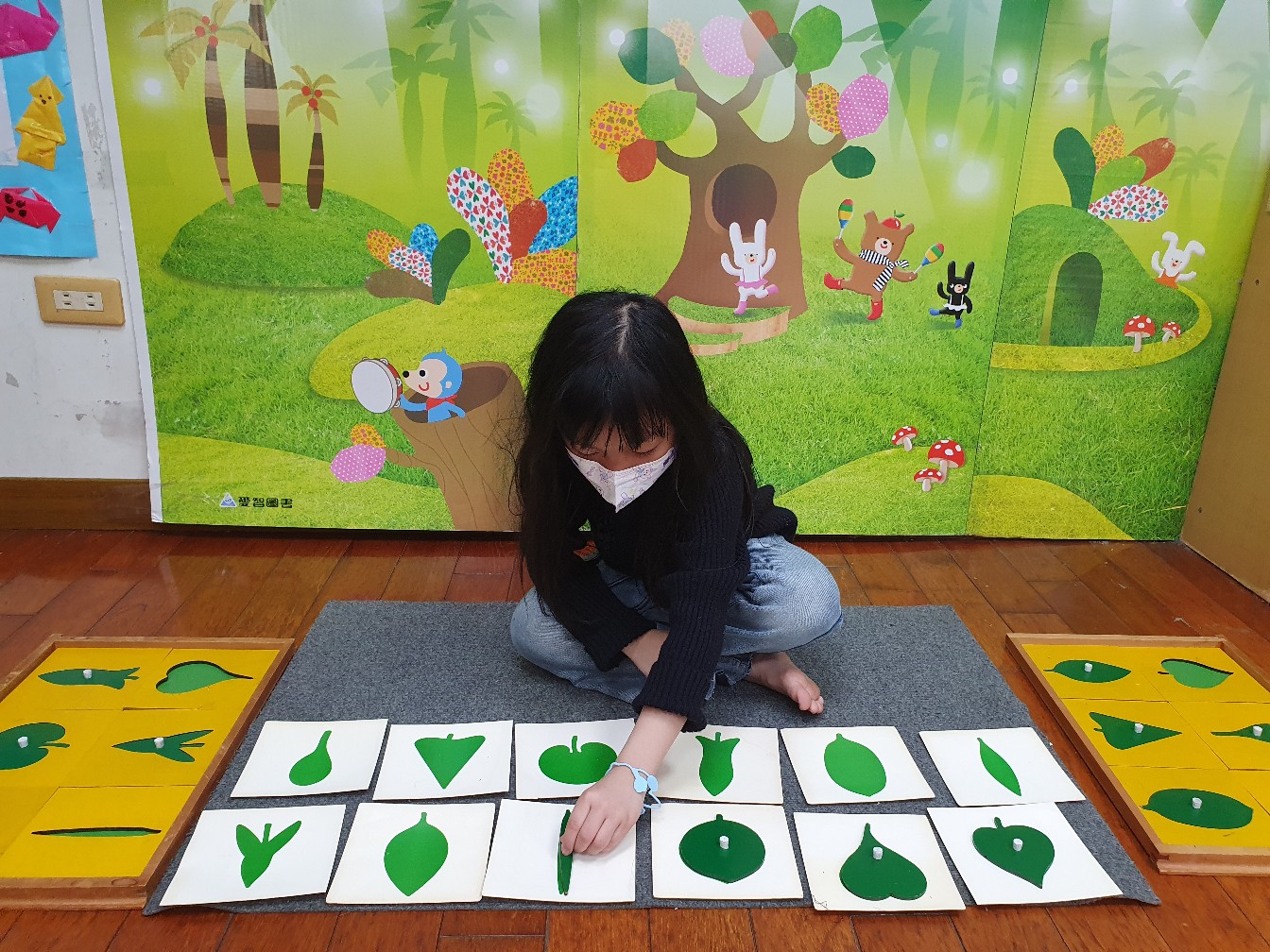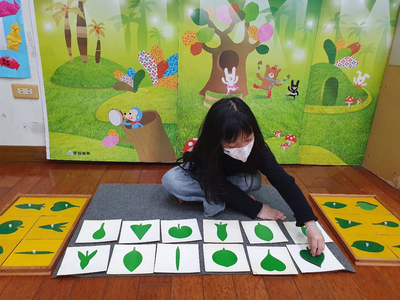 相簿名稱: 向日葵班-蒙特梭利教學(感官教育-樹葉拼圖櫥+圖卡)