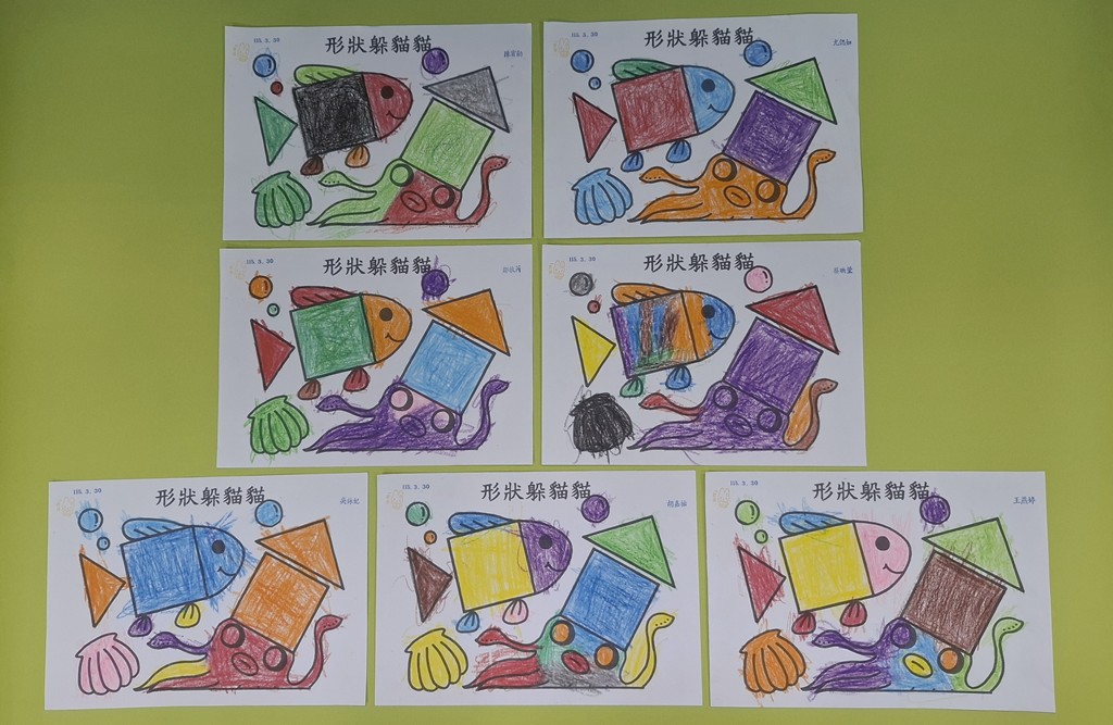 相簿名稱: 葡萄班-主題活動(作品分享-形狀躲貓貓)