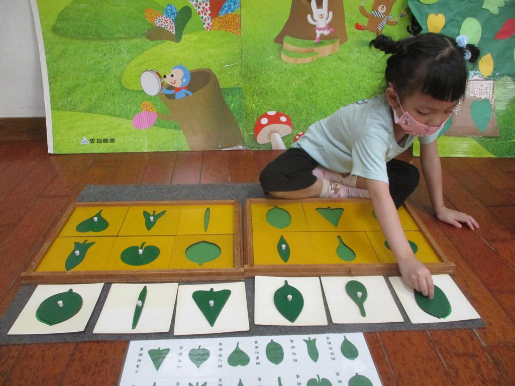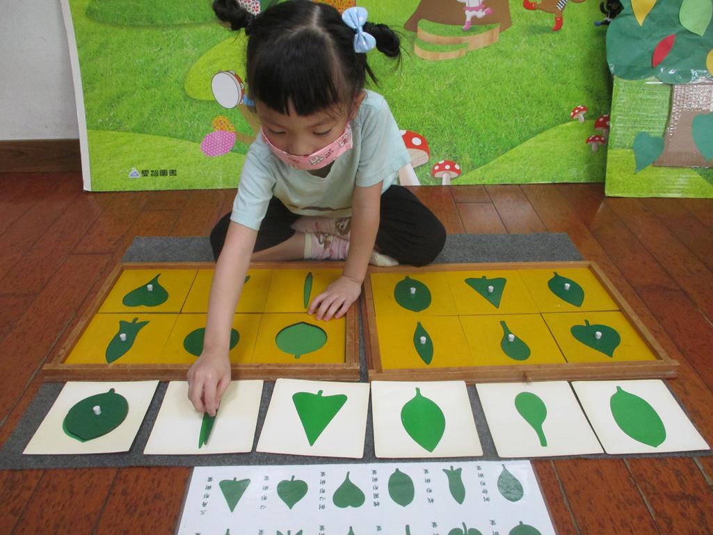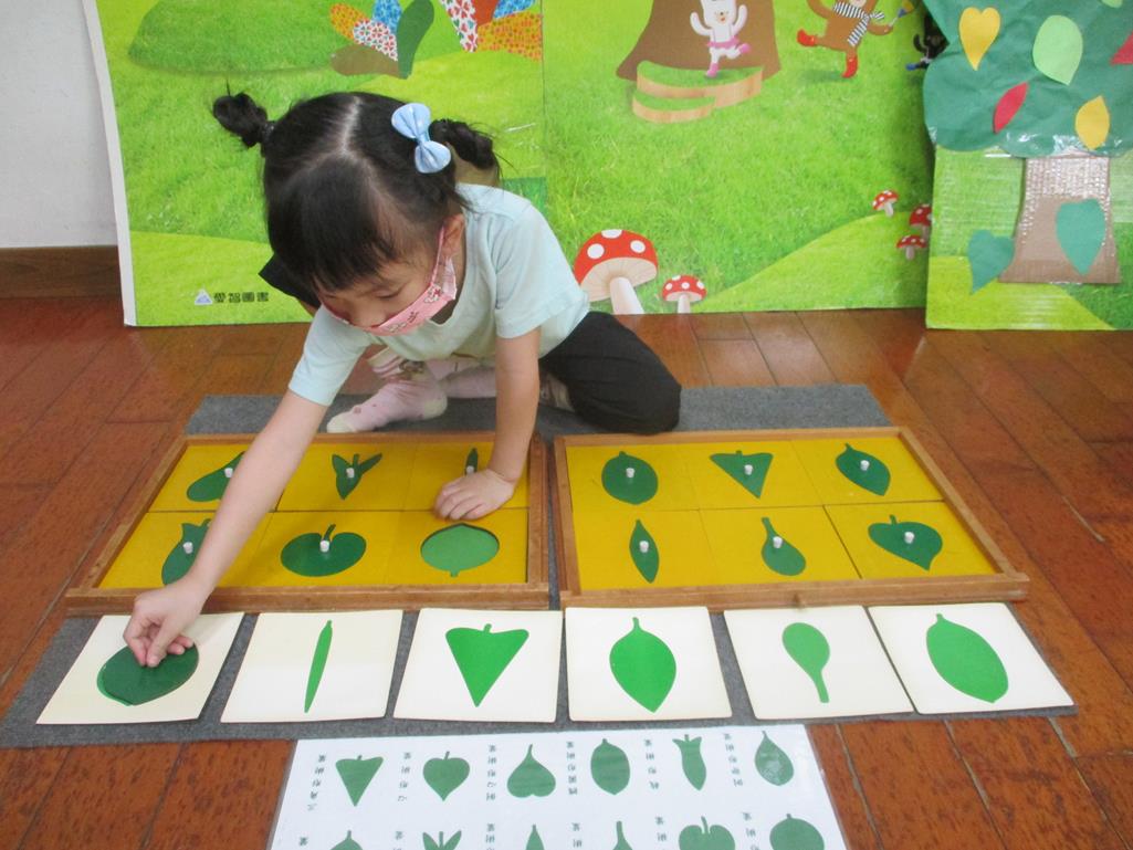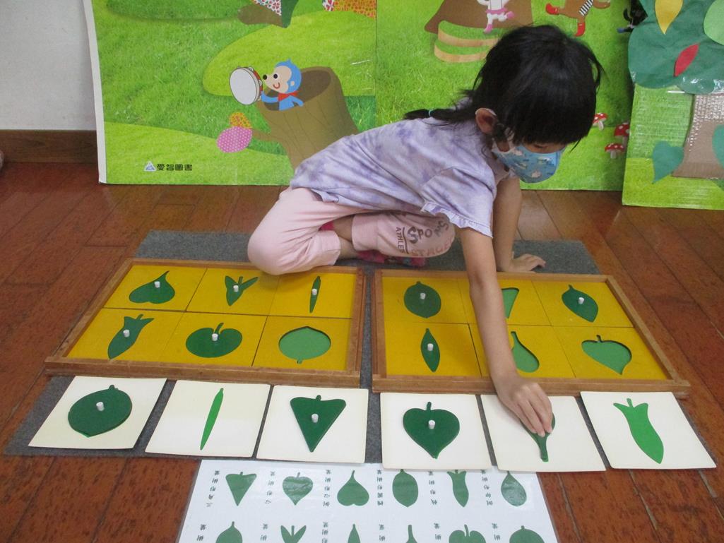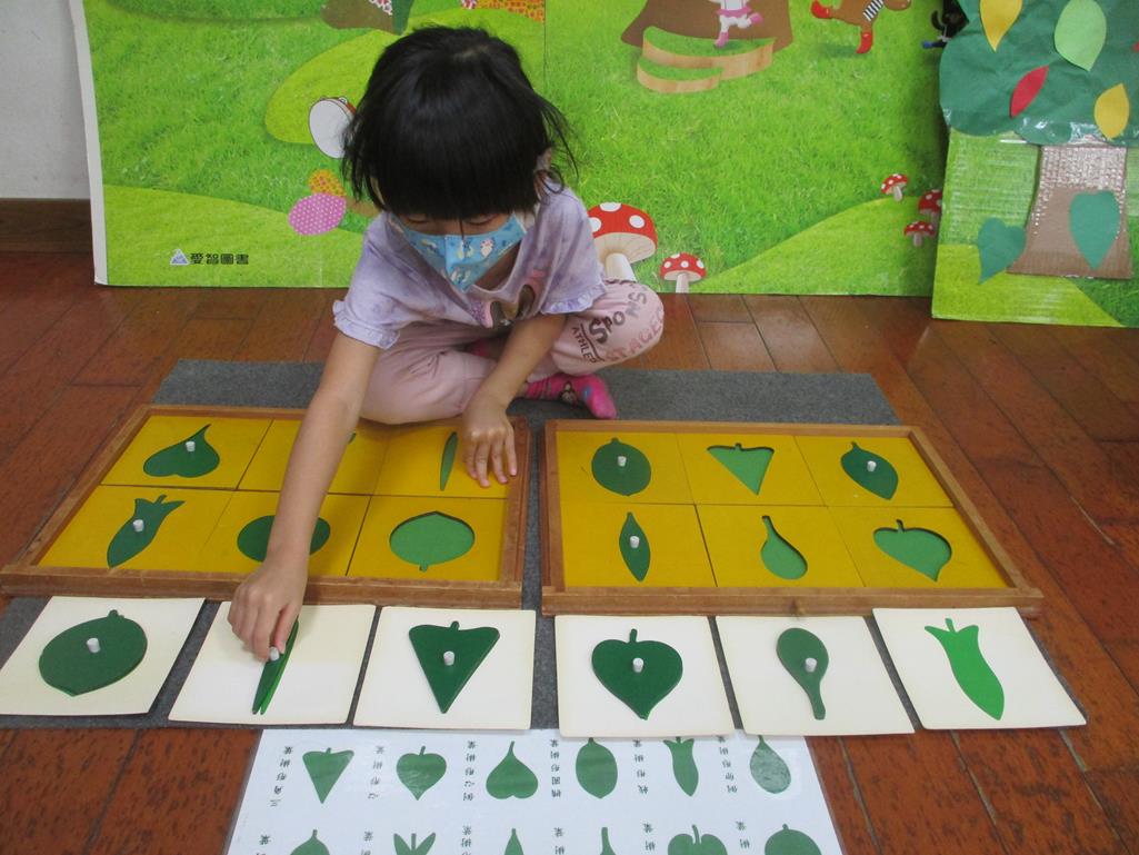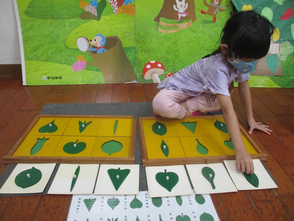 相簿名稱: 茉莉班-蒙特梭利教學(感官教育-樹葉拼圖櫥 (名稱介紹+圖卡) )