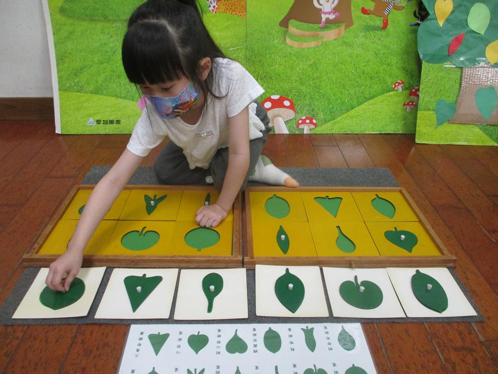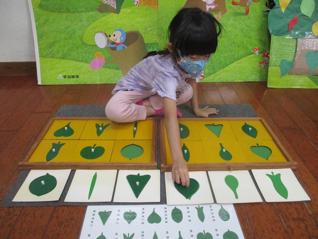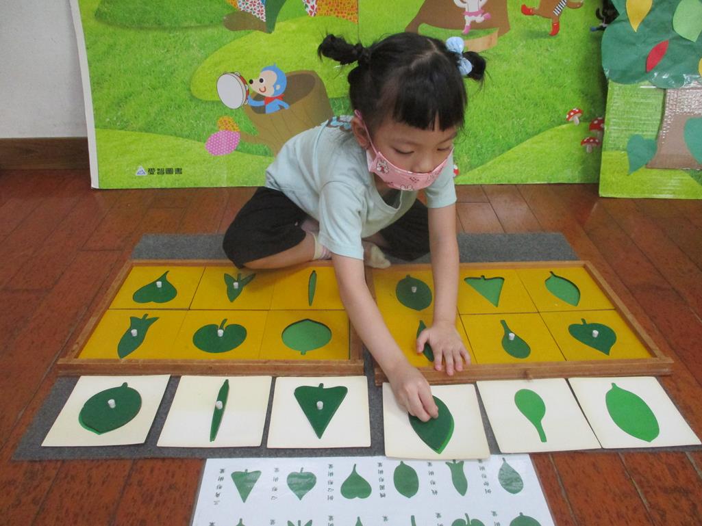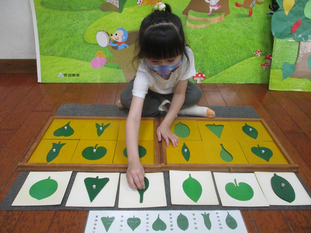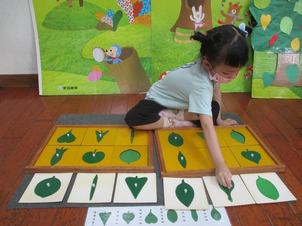 相簿名稱: 茉莉班-蒙特梭利教學(感官教育-樹葉拼圖櫥 (名稱介紹+圖卡) )