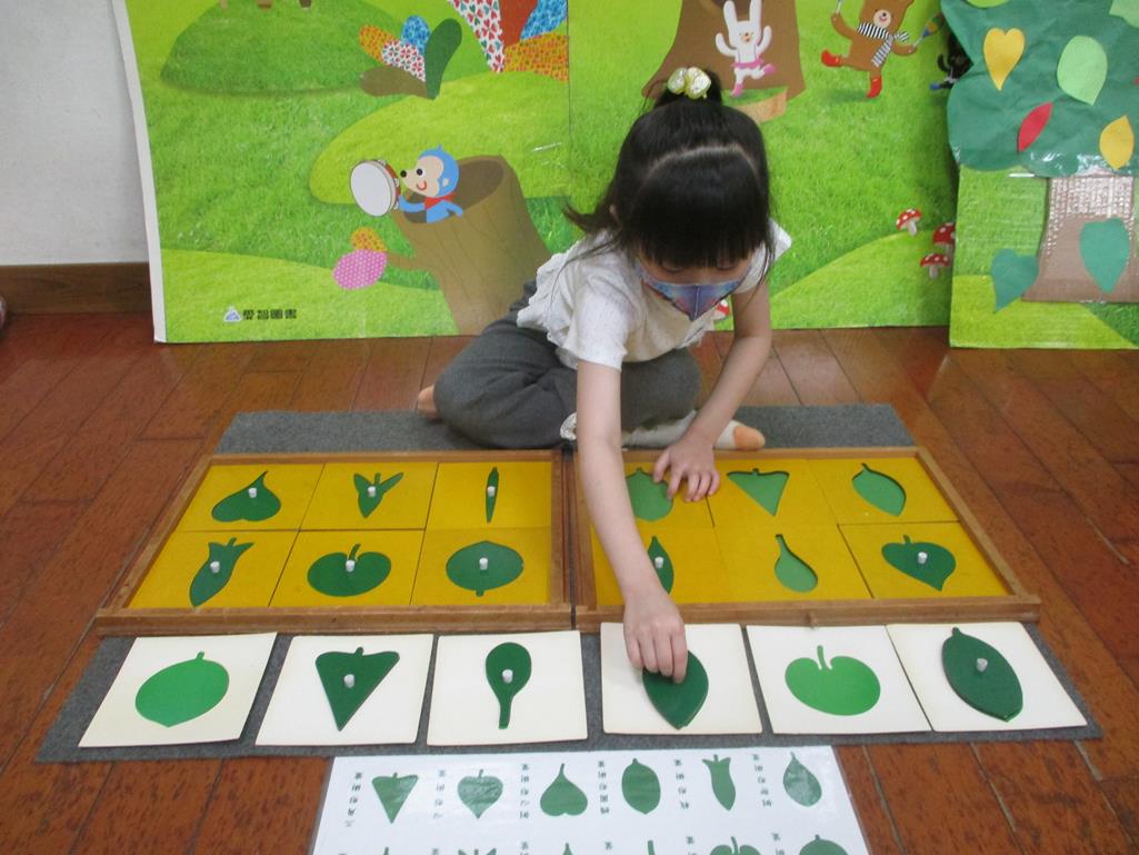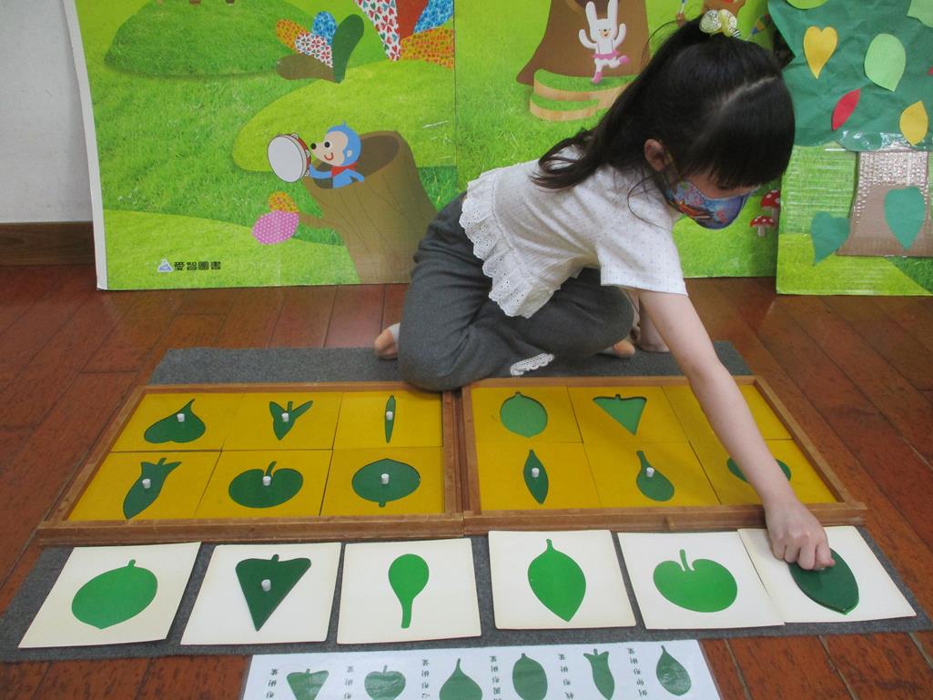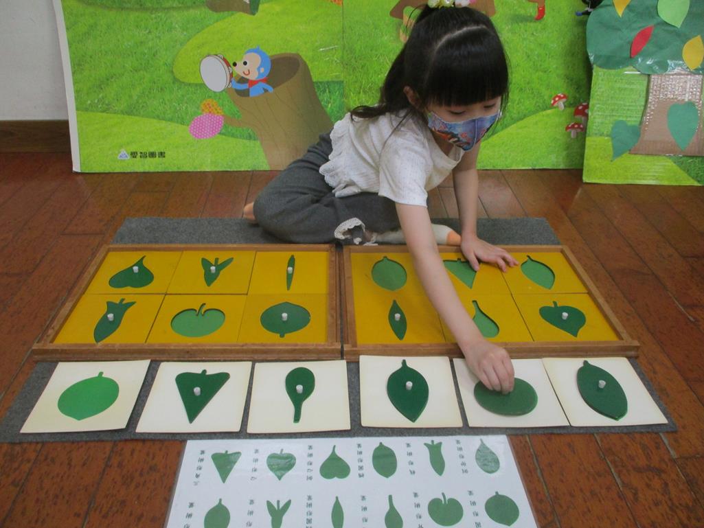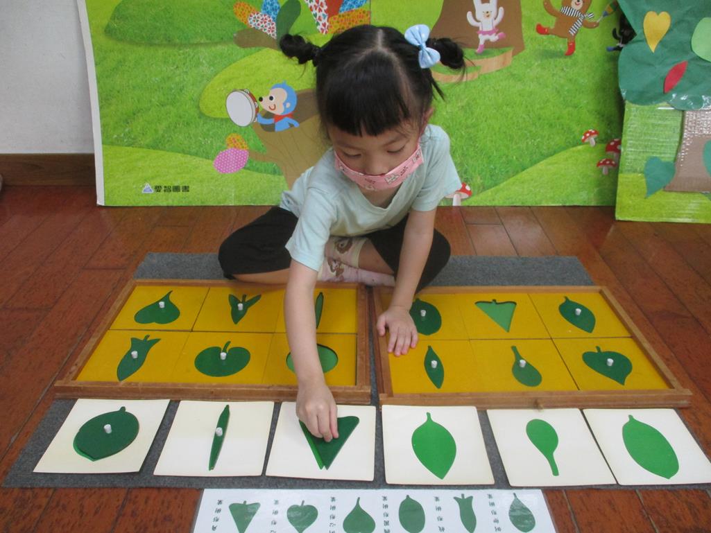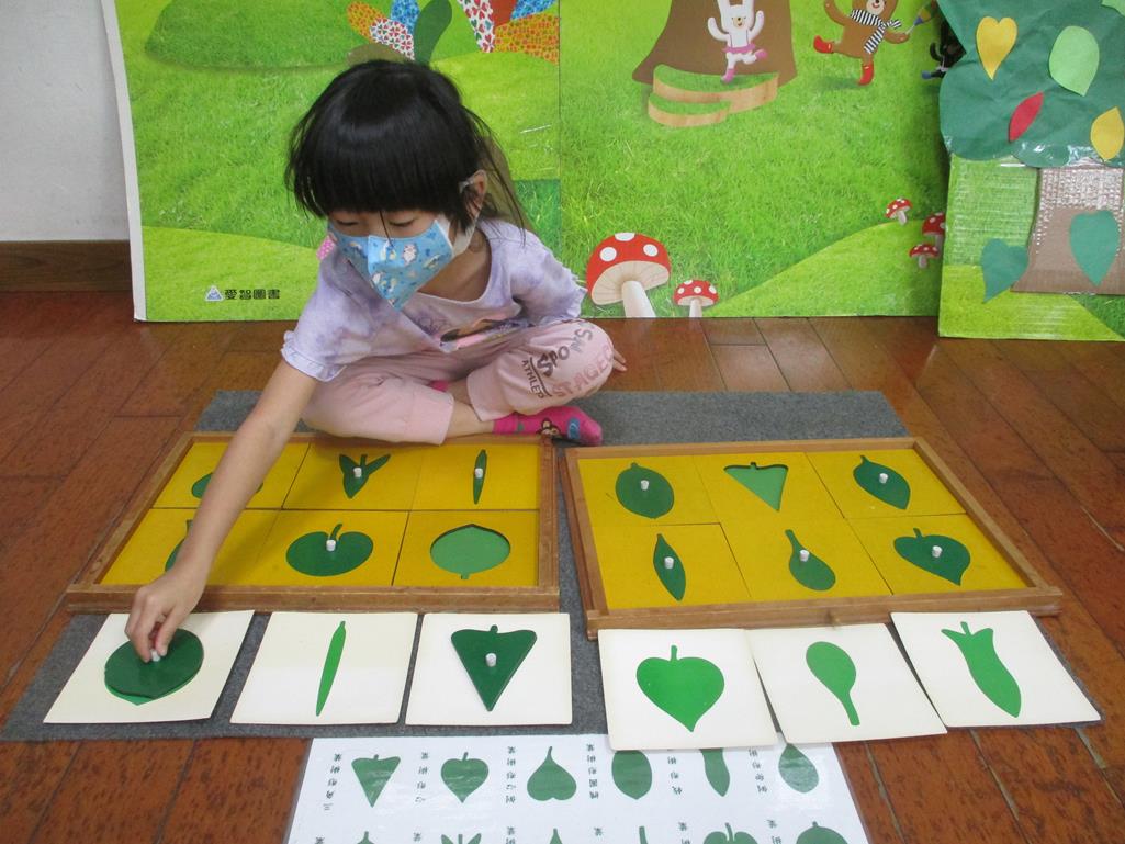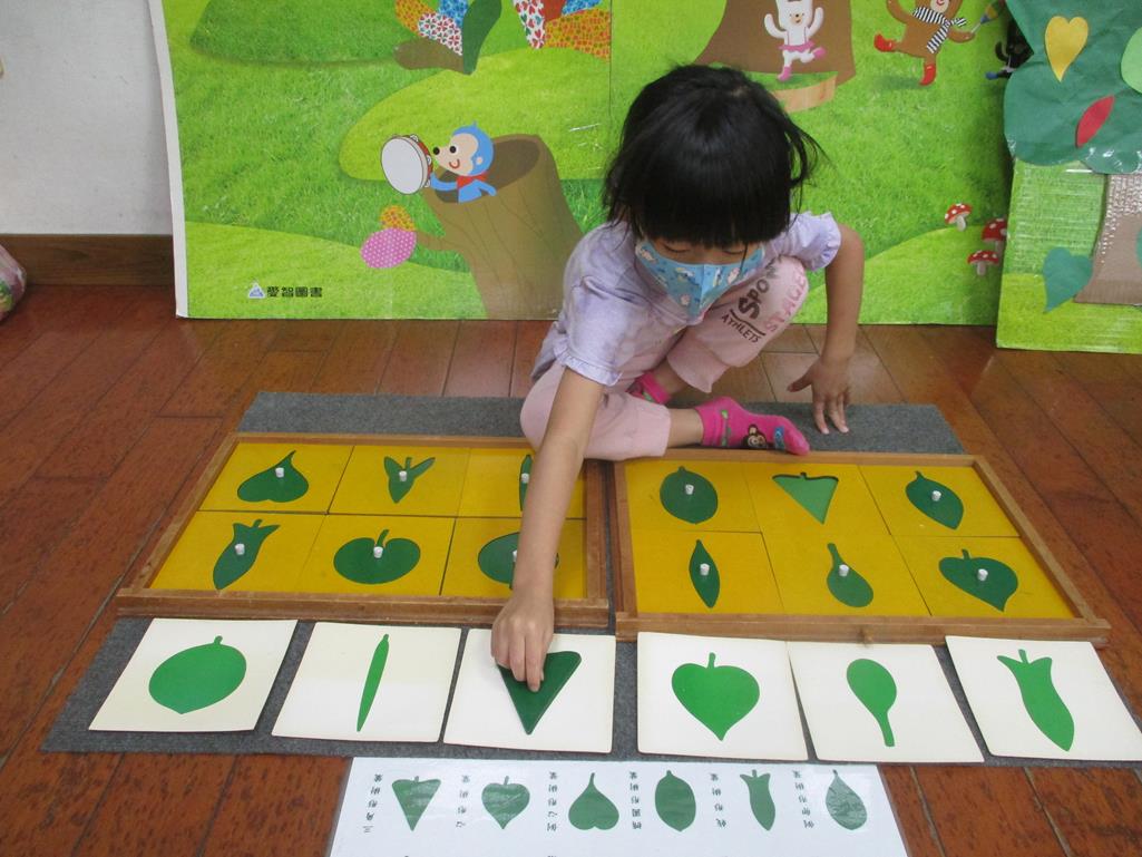 相簿名稱: 茉莉班-蒙特梭利教學(感官教育-樹葉拼圖櫥 (名稱介紹+圖卡) )