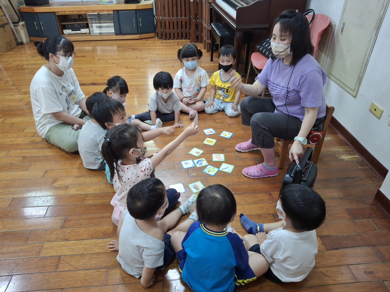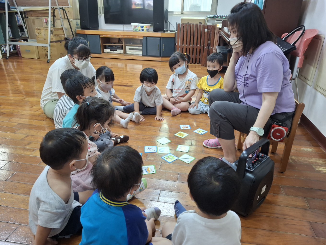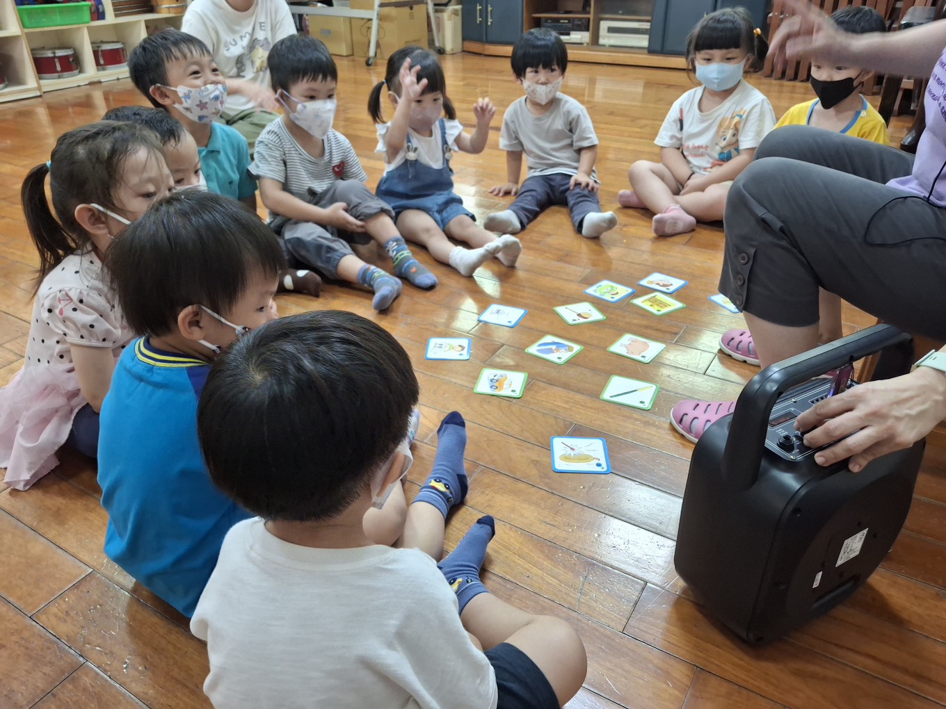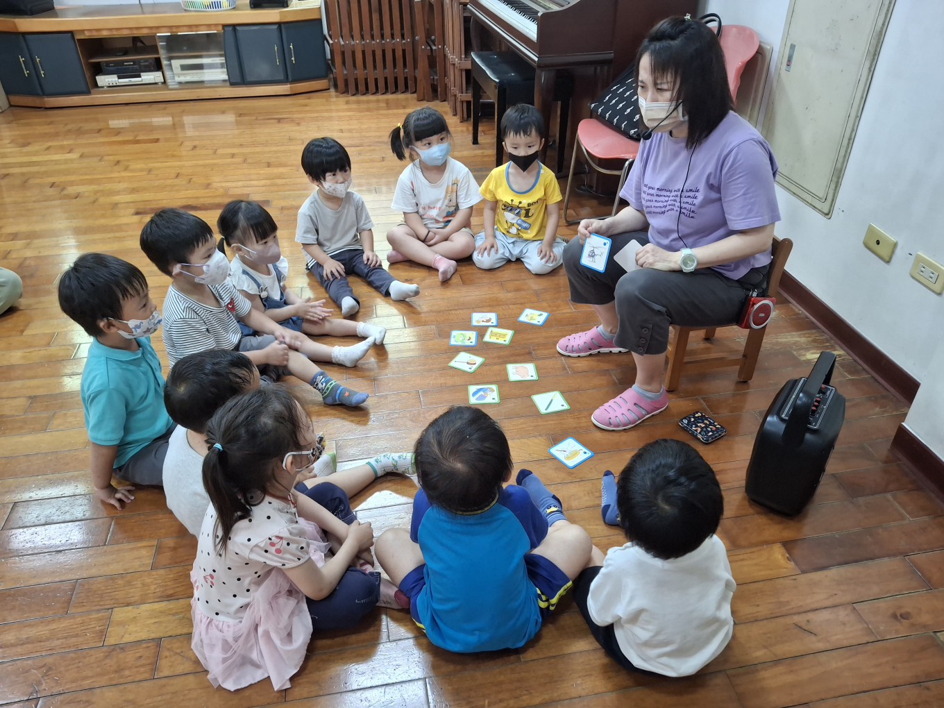 相簿名稱: 草莓班-美感【奧福音樂-複習節奏&辨認物品發出的聲音(搭配圖卡)】