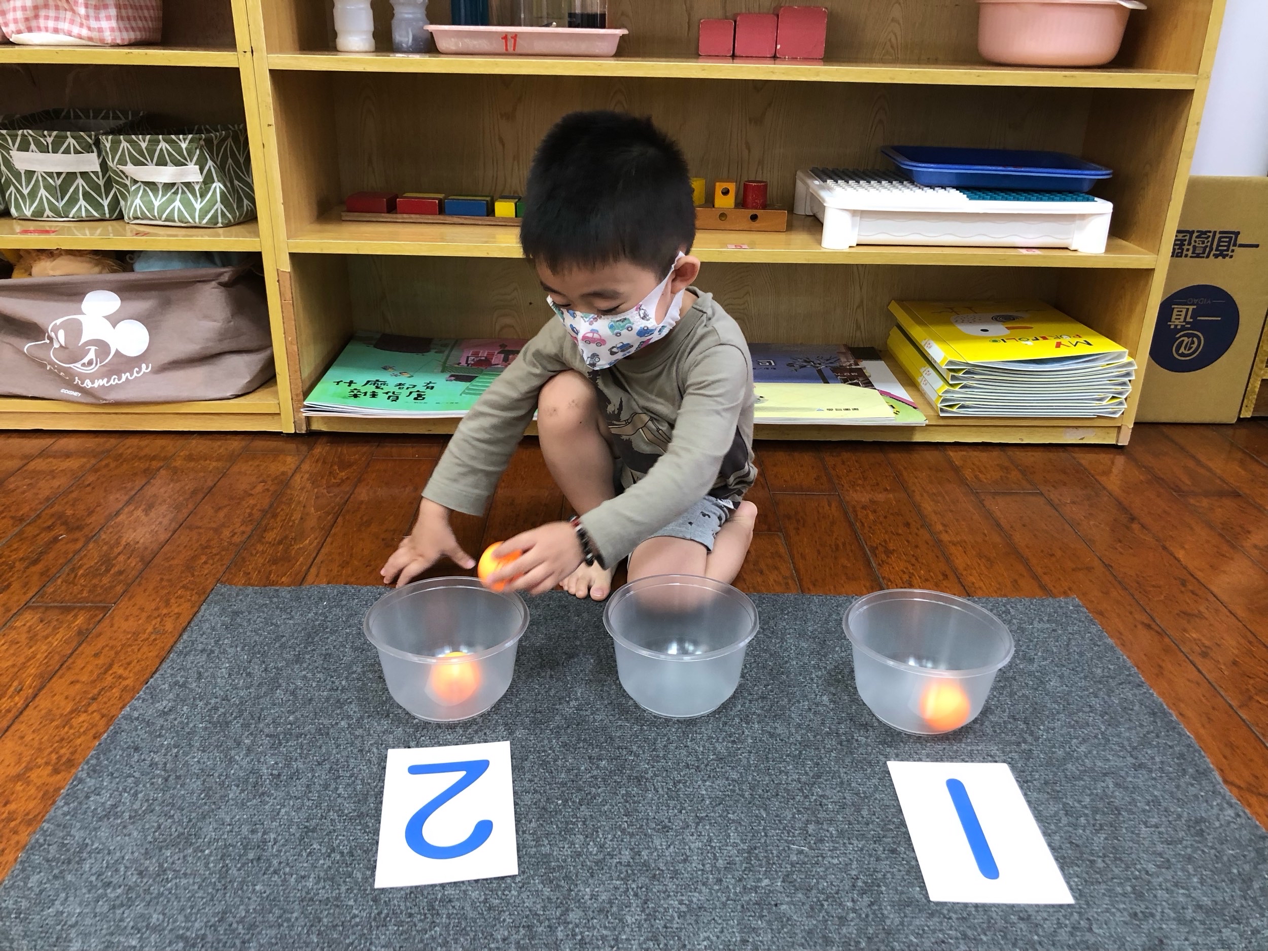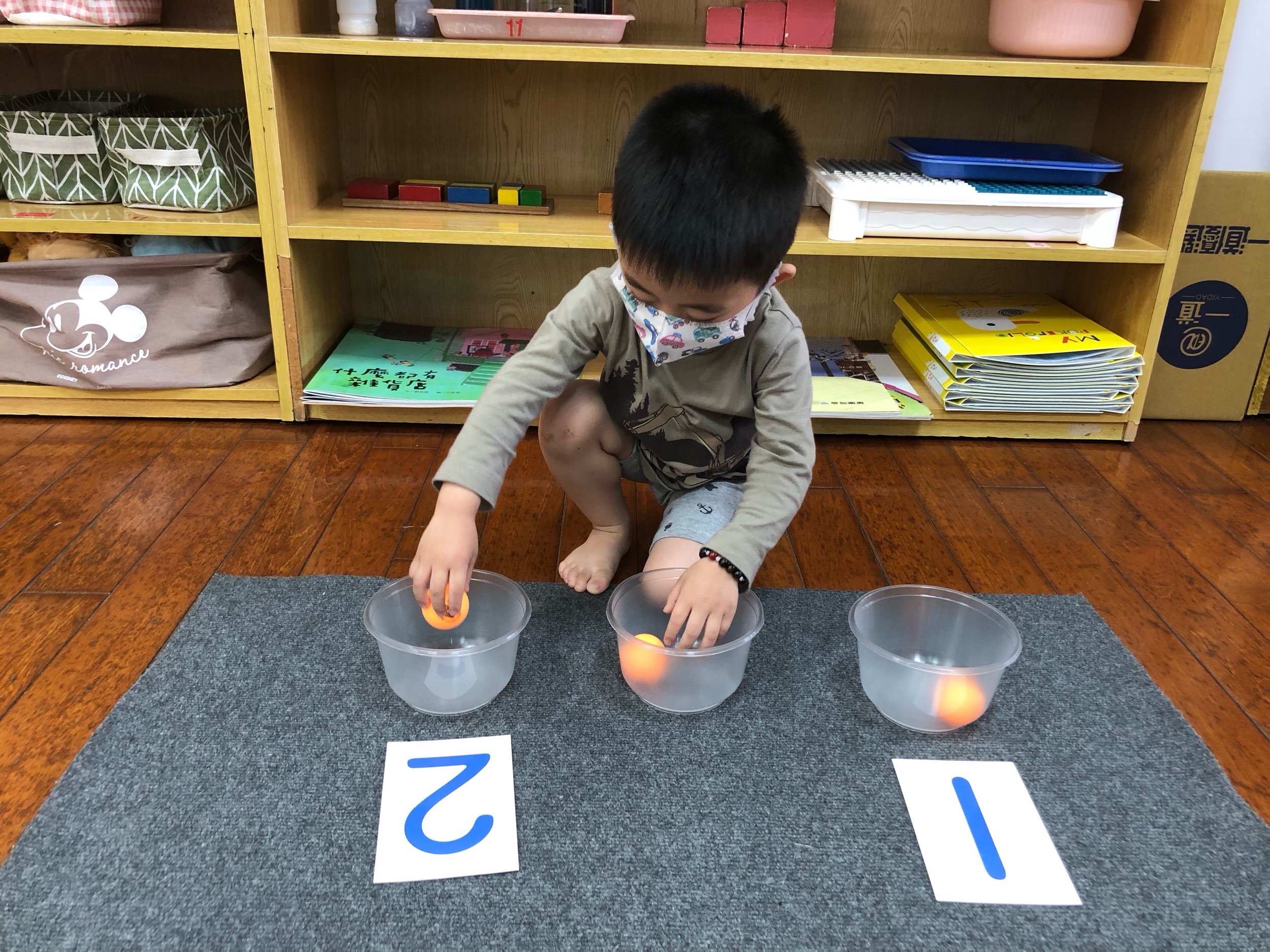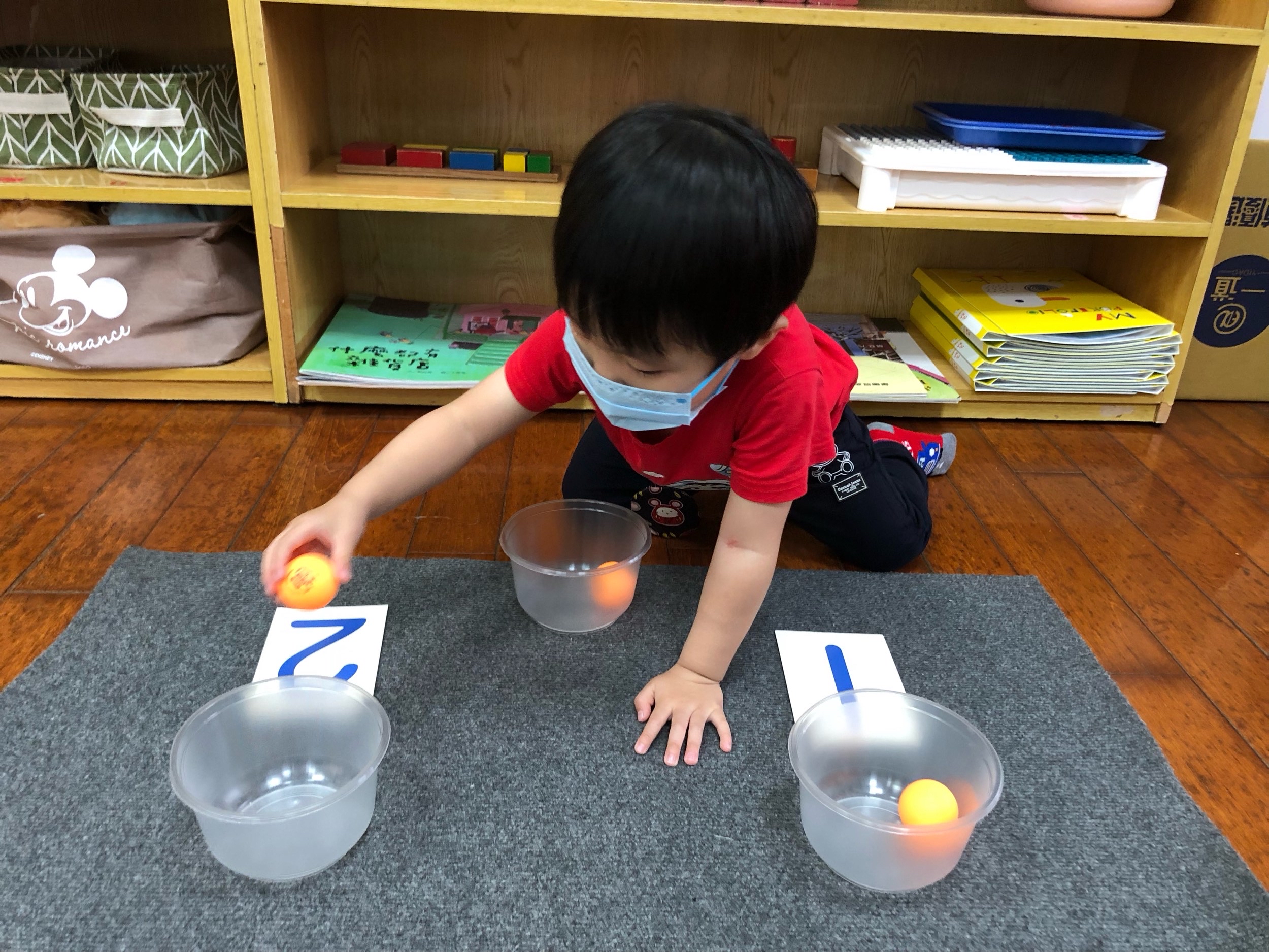 相簿名稱: 草莓班-蒙特梭利教學(數學教育-認識1、2量的球)