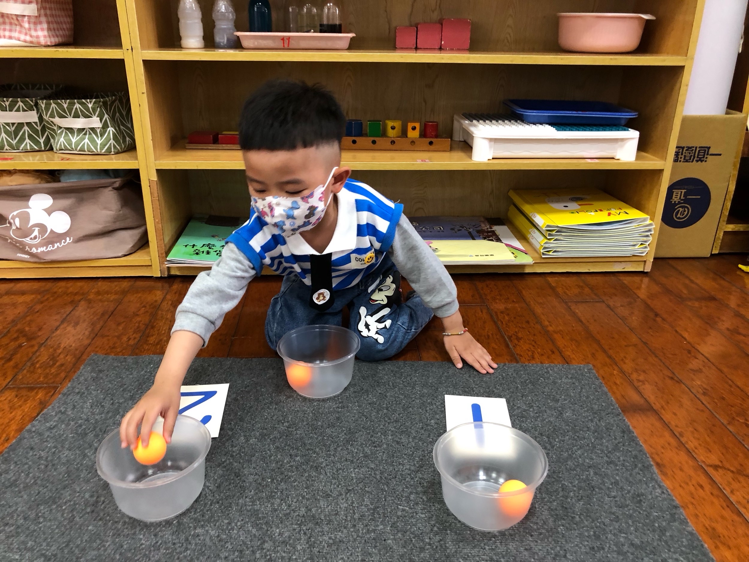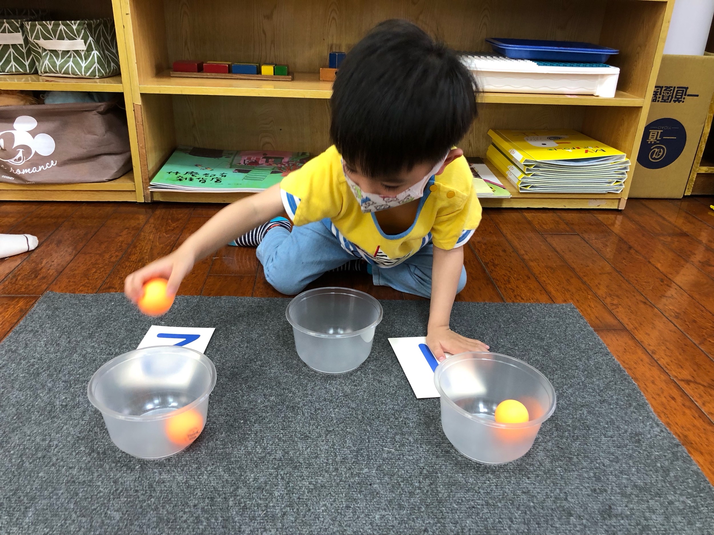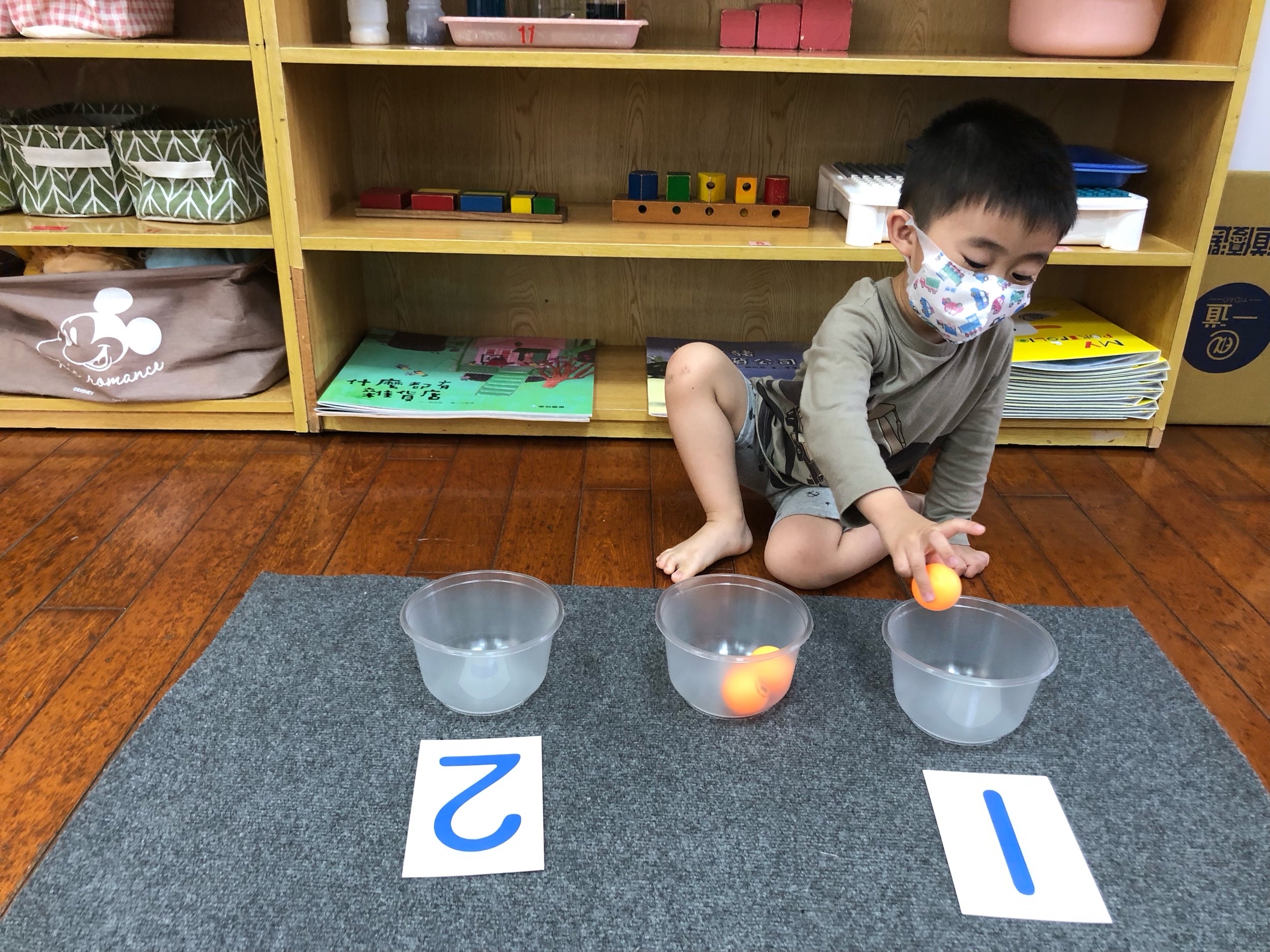 相簿名稱: 草莓班-蒙特梭利教學(數學教育-認識1、2量的球)