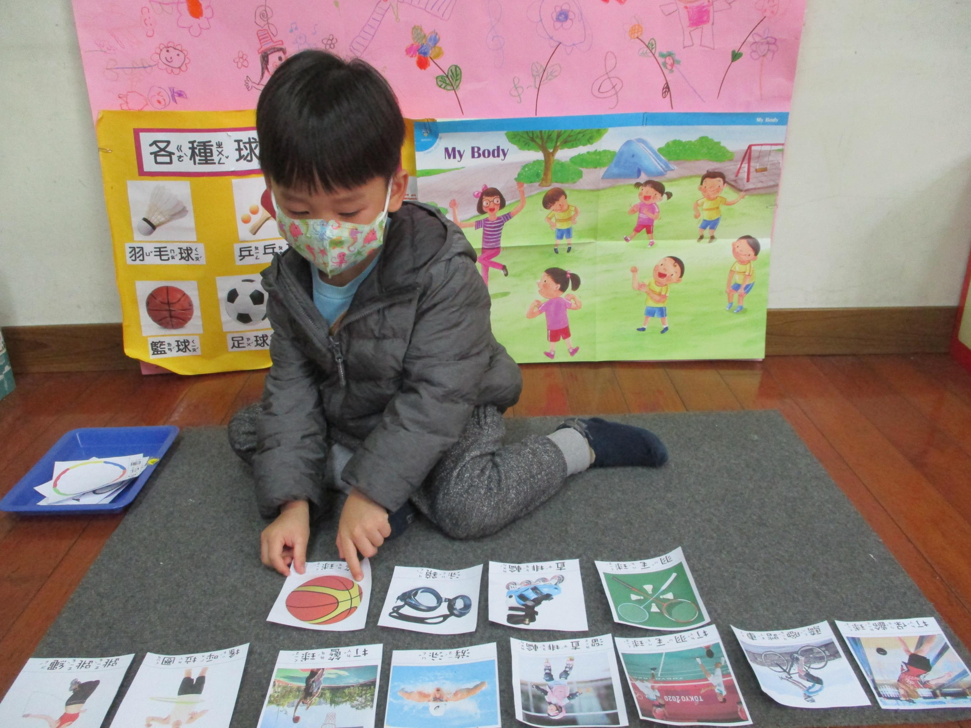 相簿名稱: 茉莉班-主題活動(各項運動&運動器材配對)