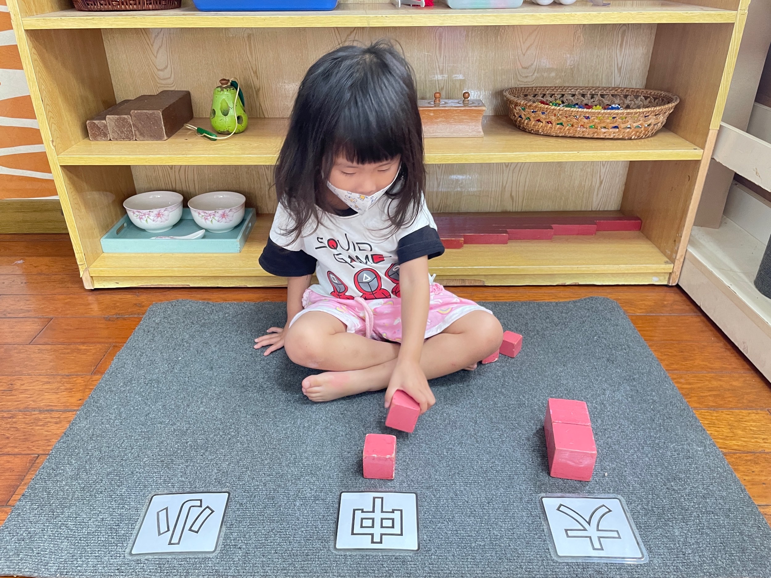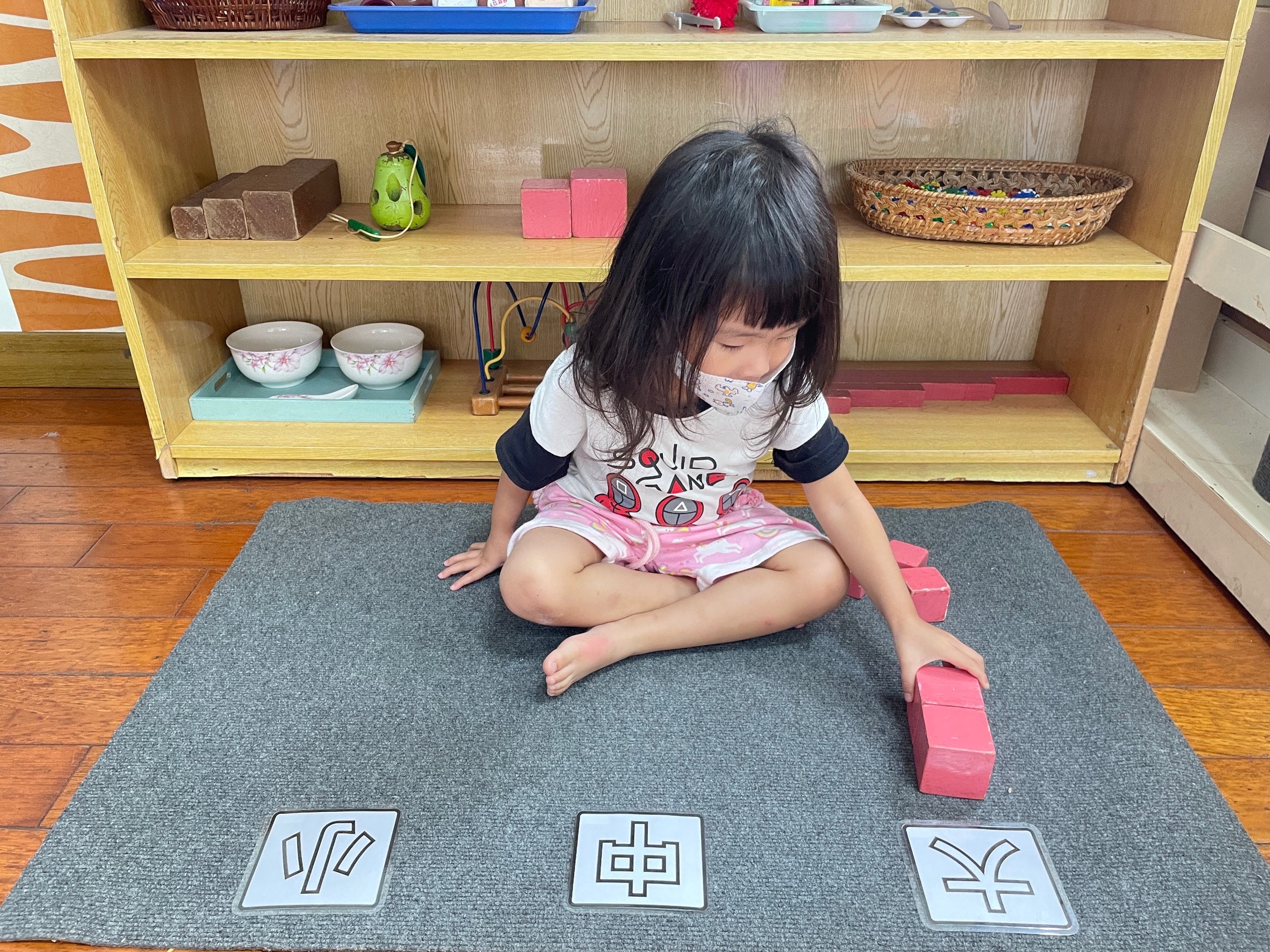 相簿名稱: 櫻桃班-蒙特梭利教學(感官:粉紅塔(大中小)配對)