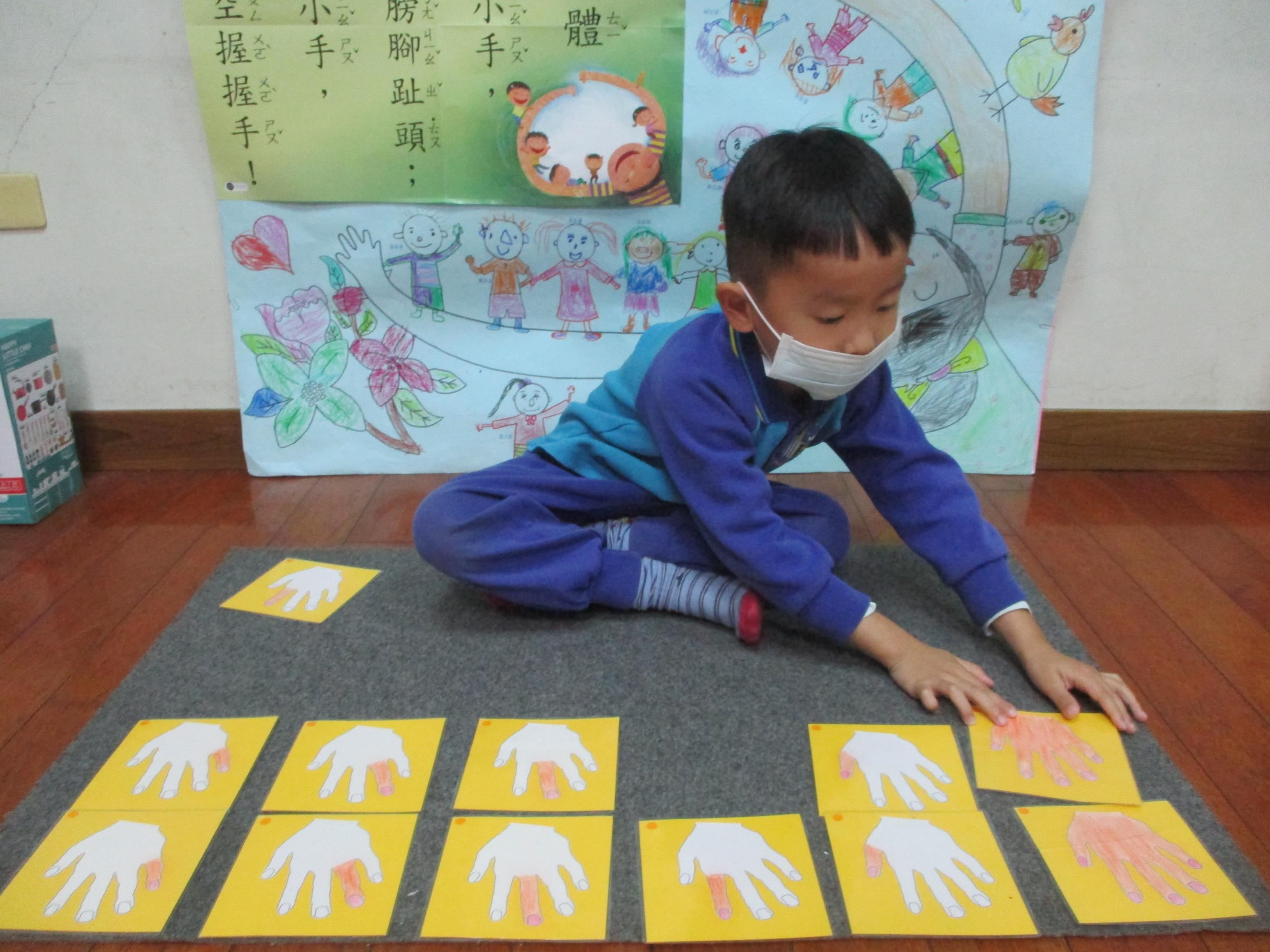 相簿名稱: 茉莉班-蒙特梭利教學(感官教育-手的部位圖卡配對)