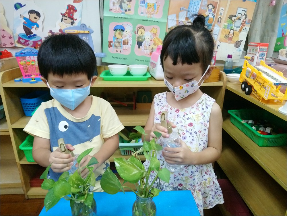 相簿名稱: 葡萄班:第一主題活動-生活小用具 (噴霧器-幫葉子洗洗澡)